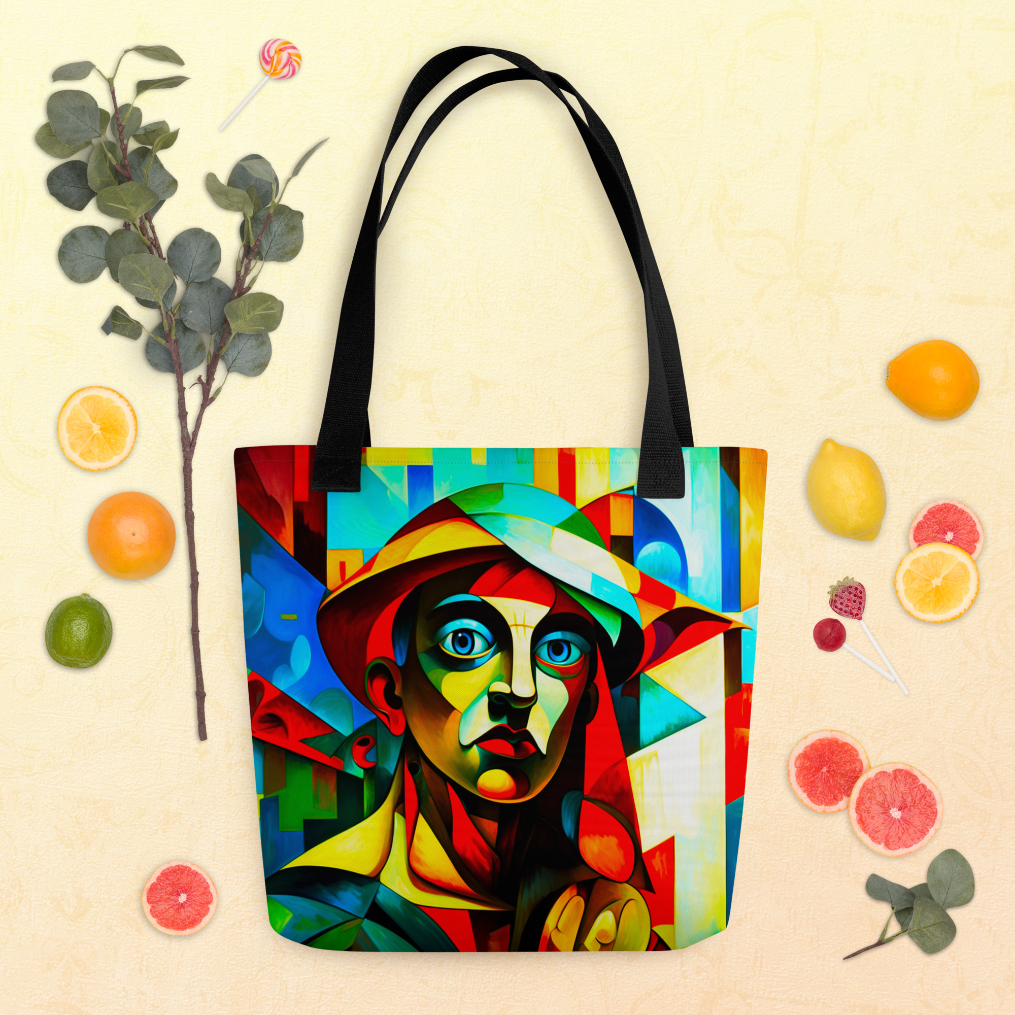 A Man of Cubism Tote Bag is stylish and roomy tote bag, inspired by Cubism, is perfect for carrying all your essentials. It’s built to last with reinforced stitching and strong handles, and the smooth, lightweight fabric makes it comfortable to carry all day long.