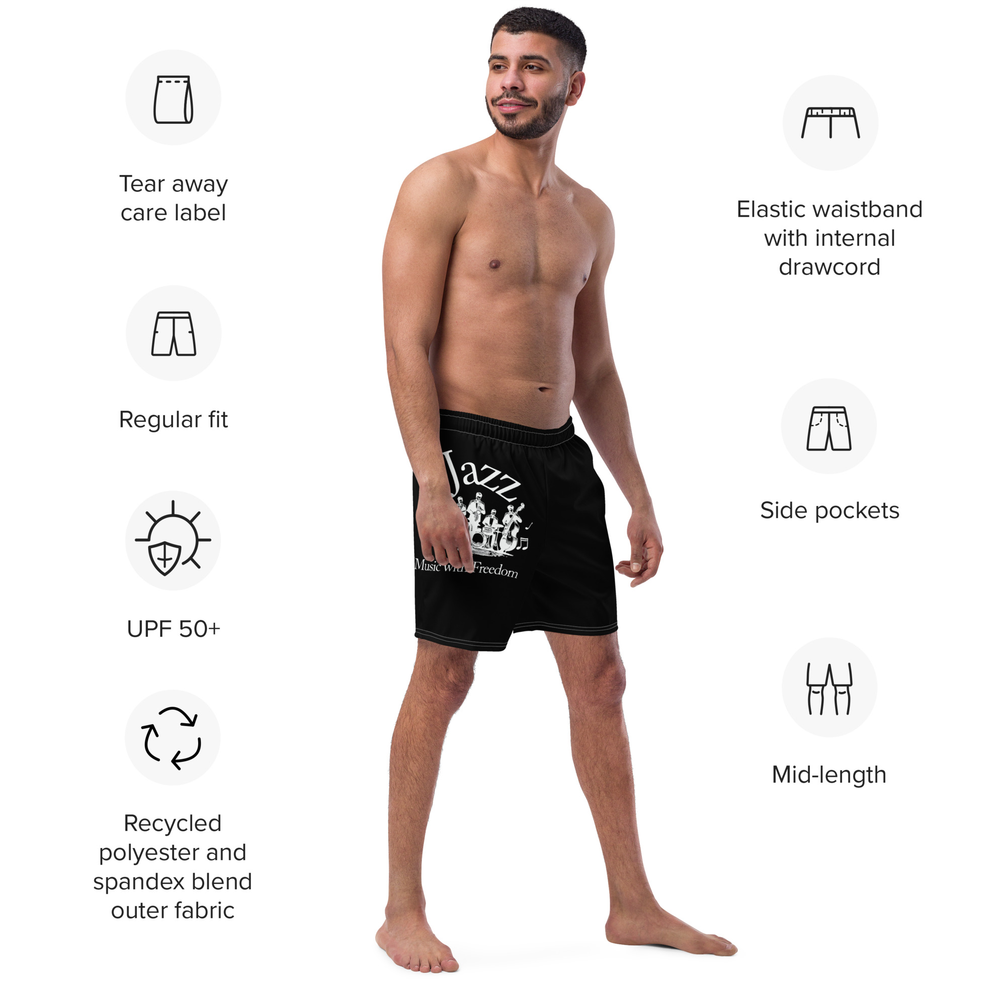 FAQs Black Jazz Swim Trunks