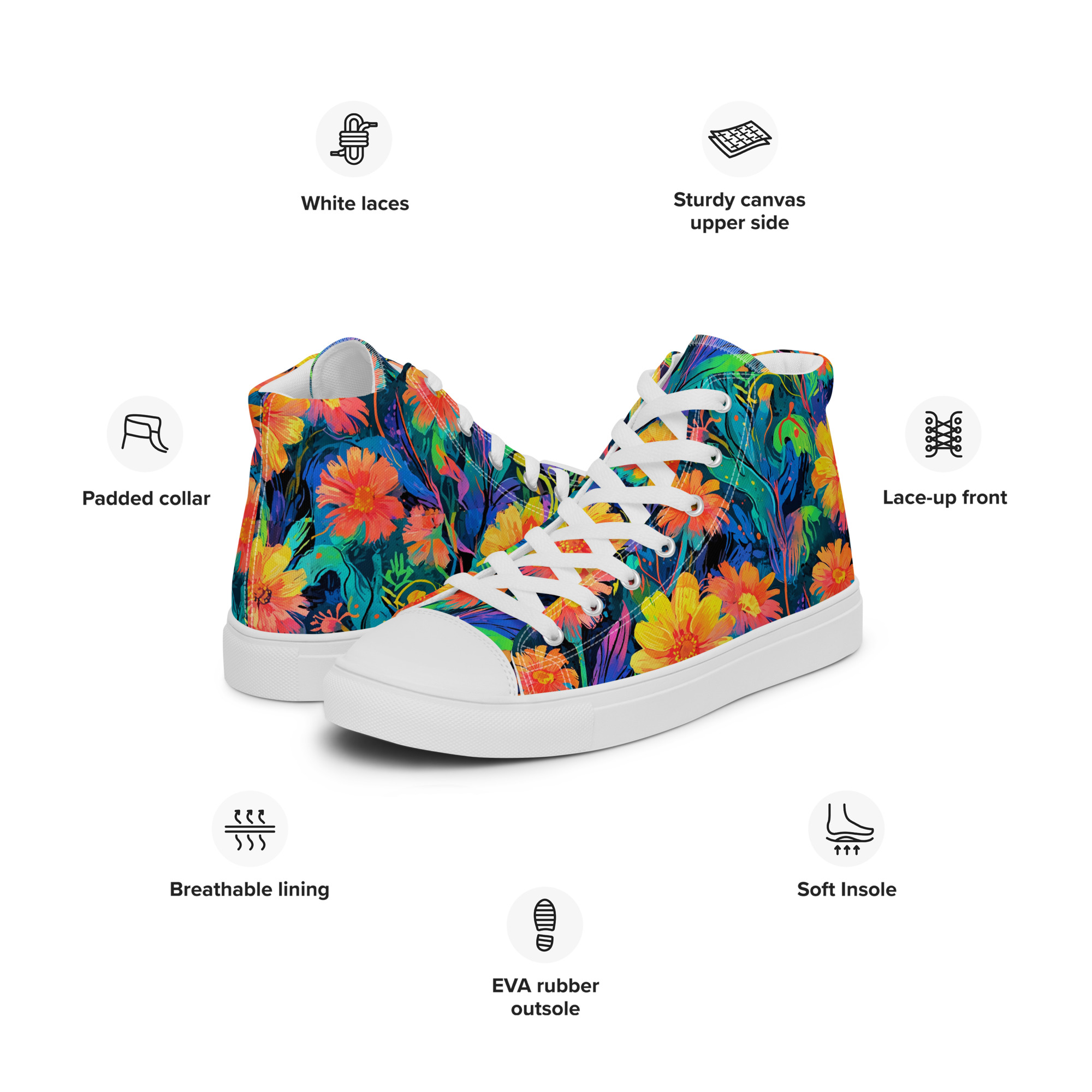 Treat your feet kindly! These shoes fit true to size and feature a breathable lining, plus a soft insole for all-day cushioning and support. The stylish Bloom Bright High Top Canvas Shoes are a perfect addition to any wardrobe.
