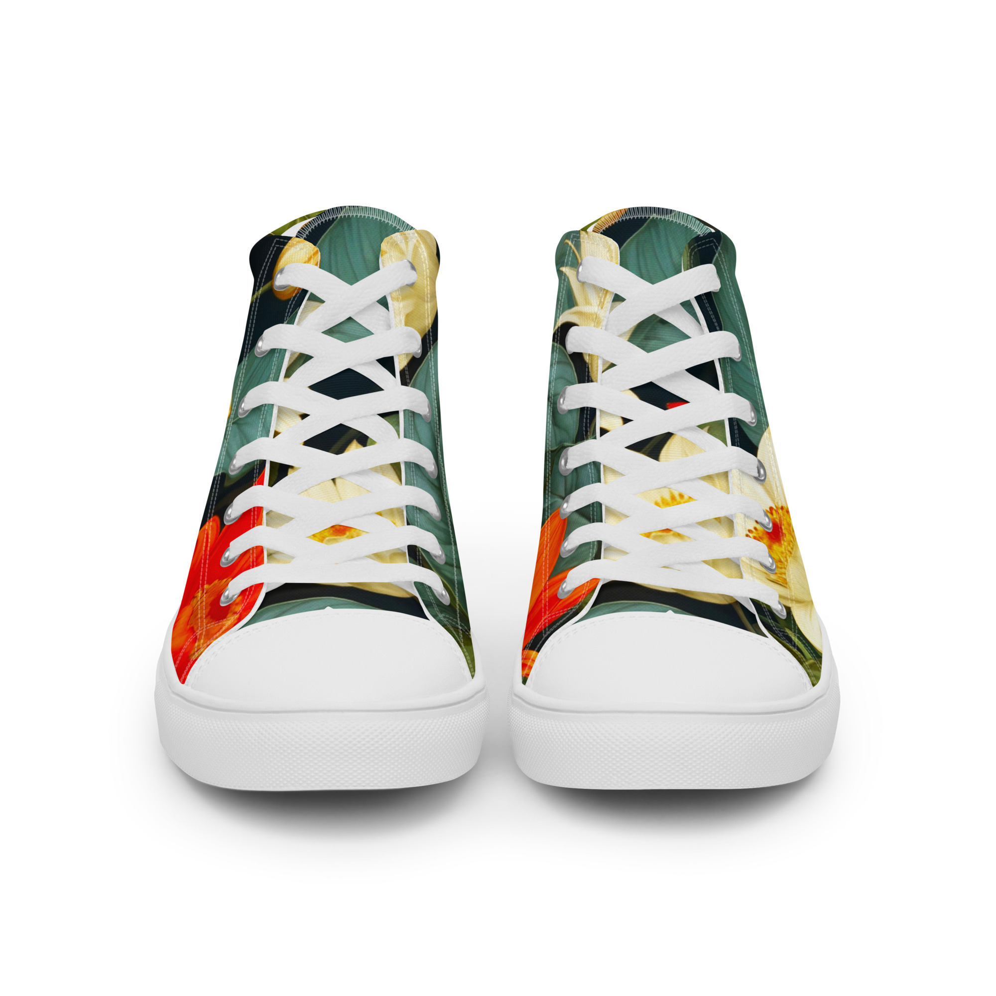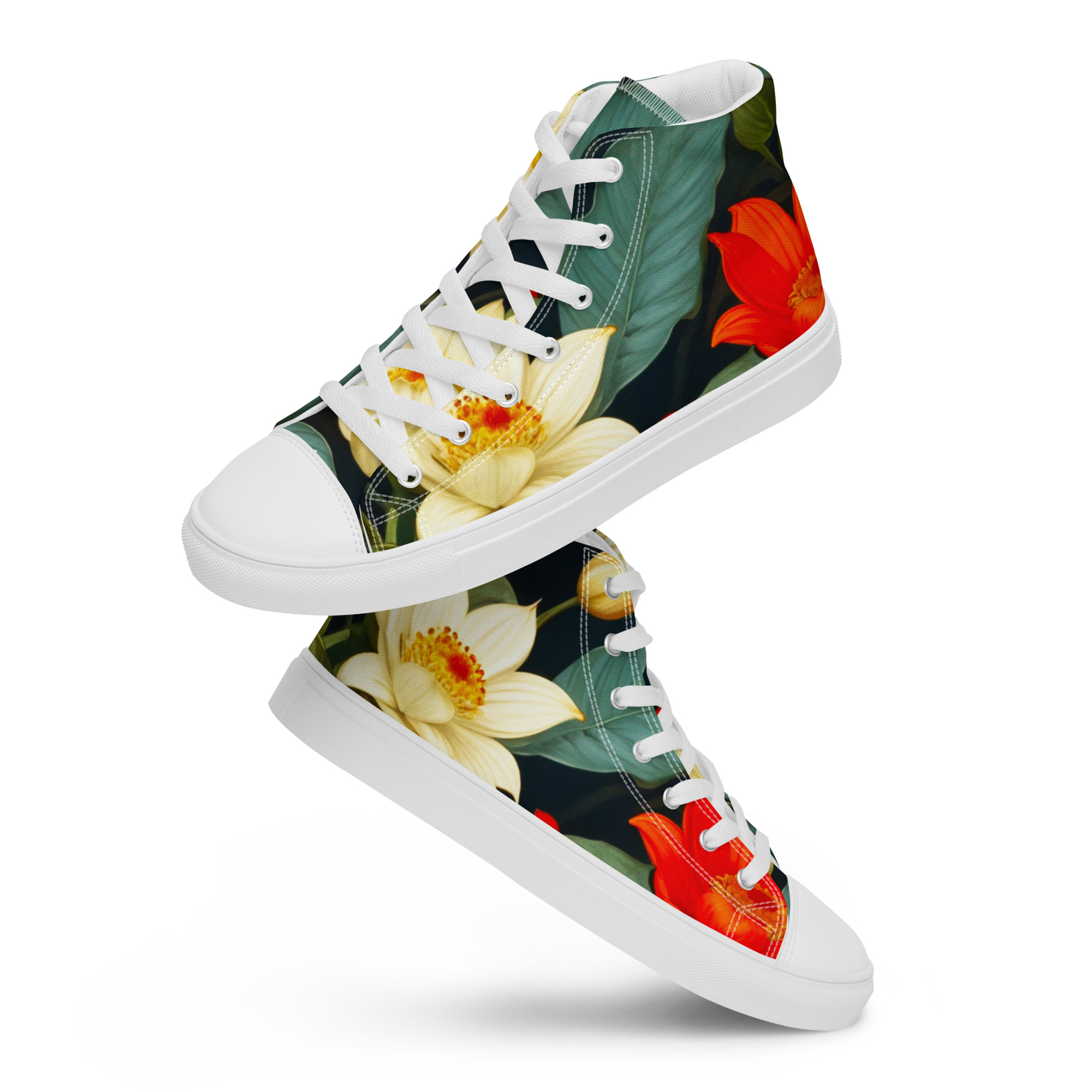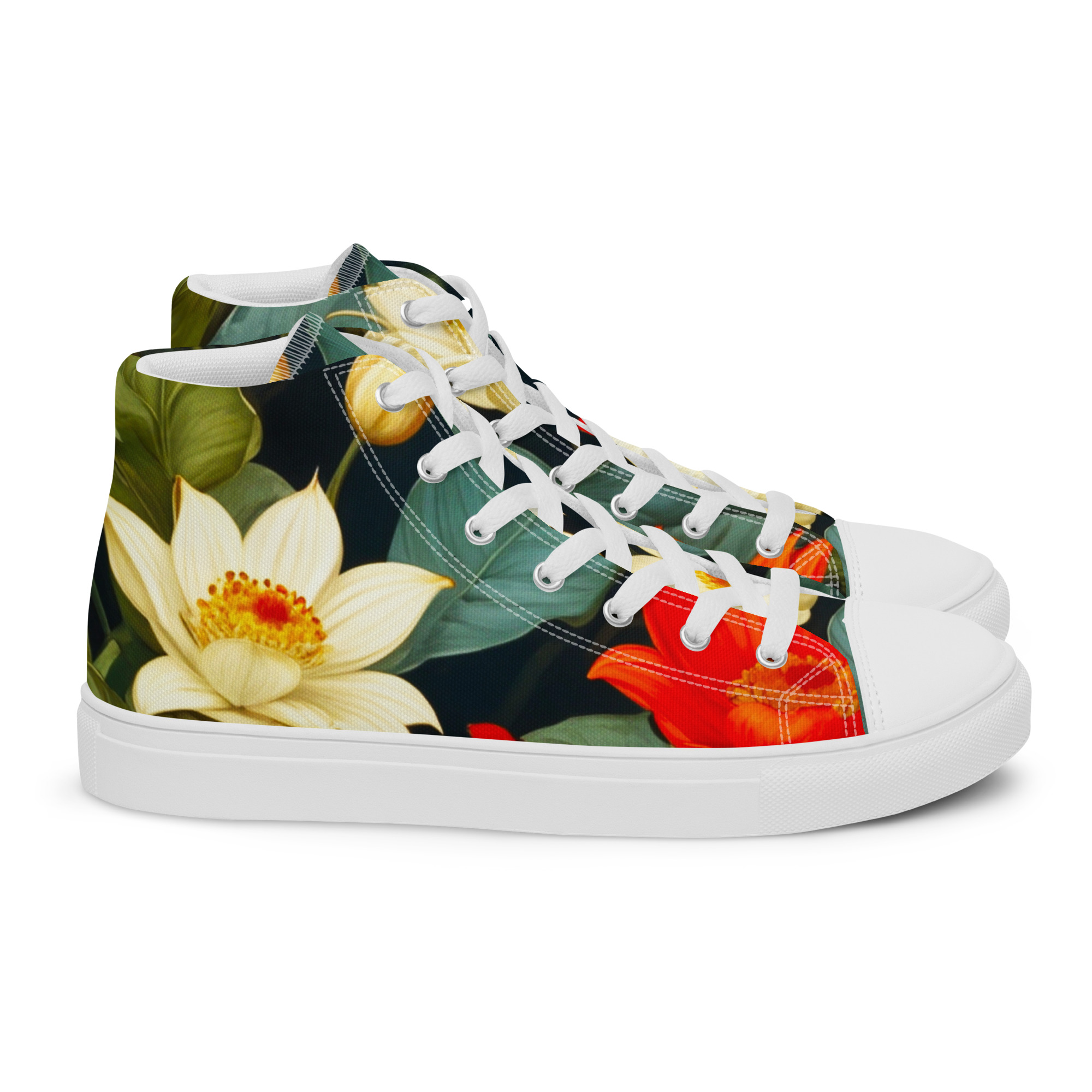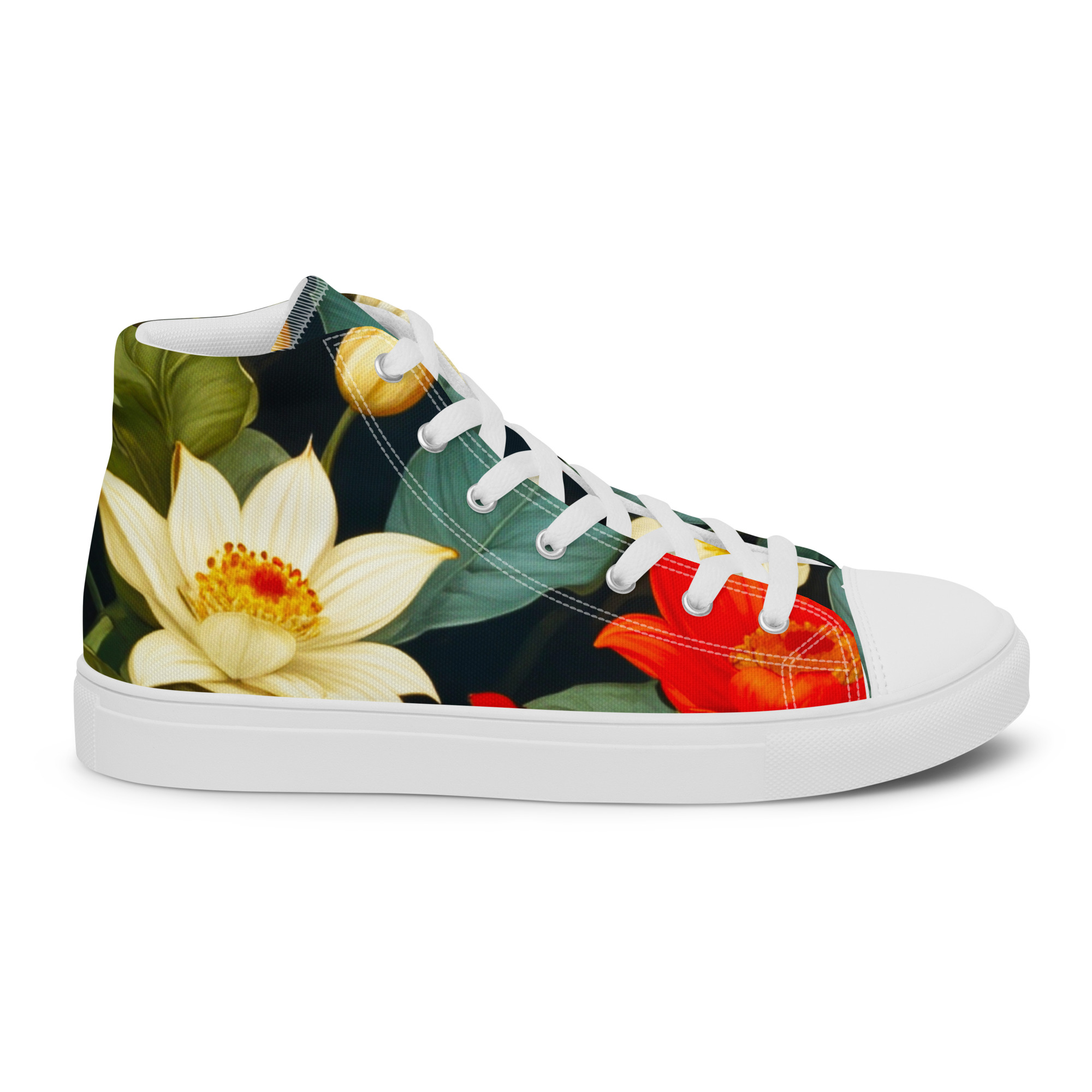 Remember to pamper your feet! These shoes are designed for all-day comfort and support, featuring a breathable lining, a soft insole, and a padded collar for a secure and comfortable fit. The classic, stylish high-top Blooming Beauties Canvas Shoes are a perfect wardrobe addition.