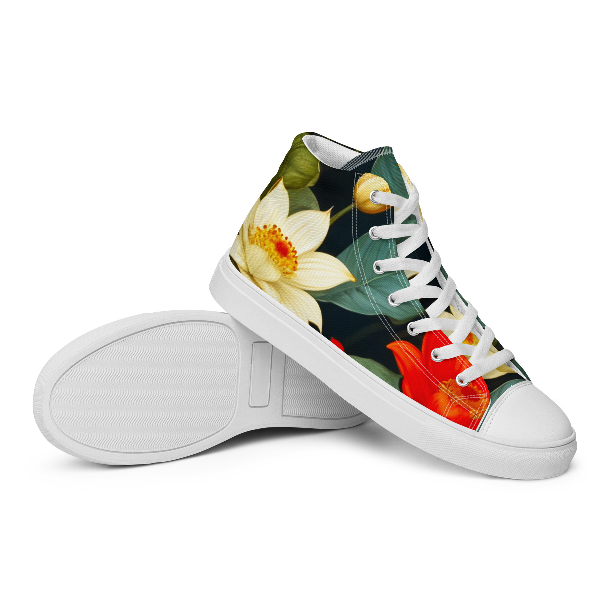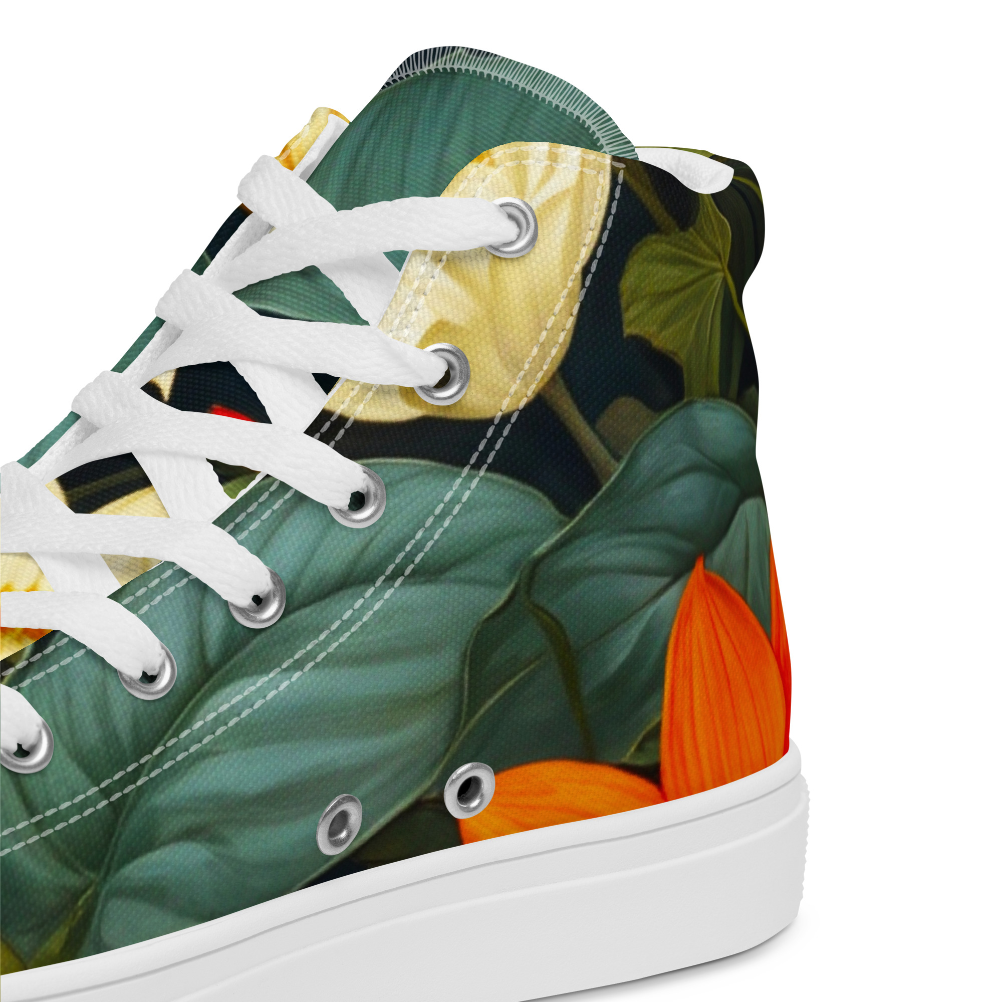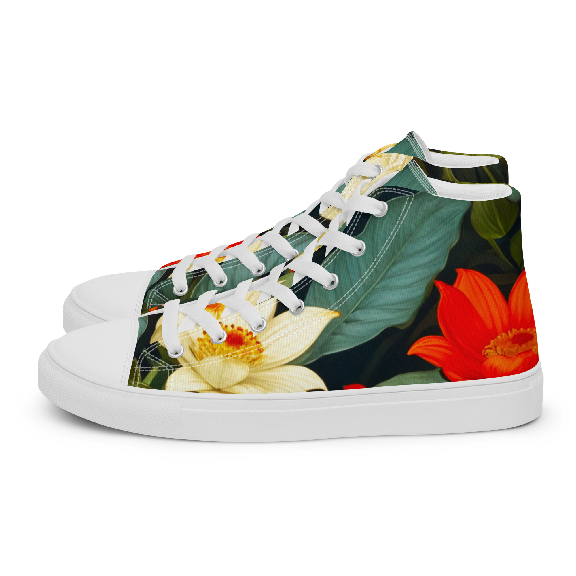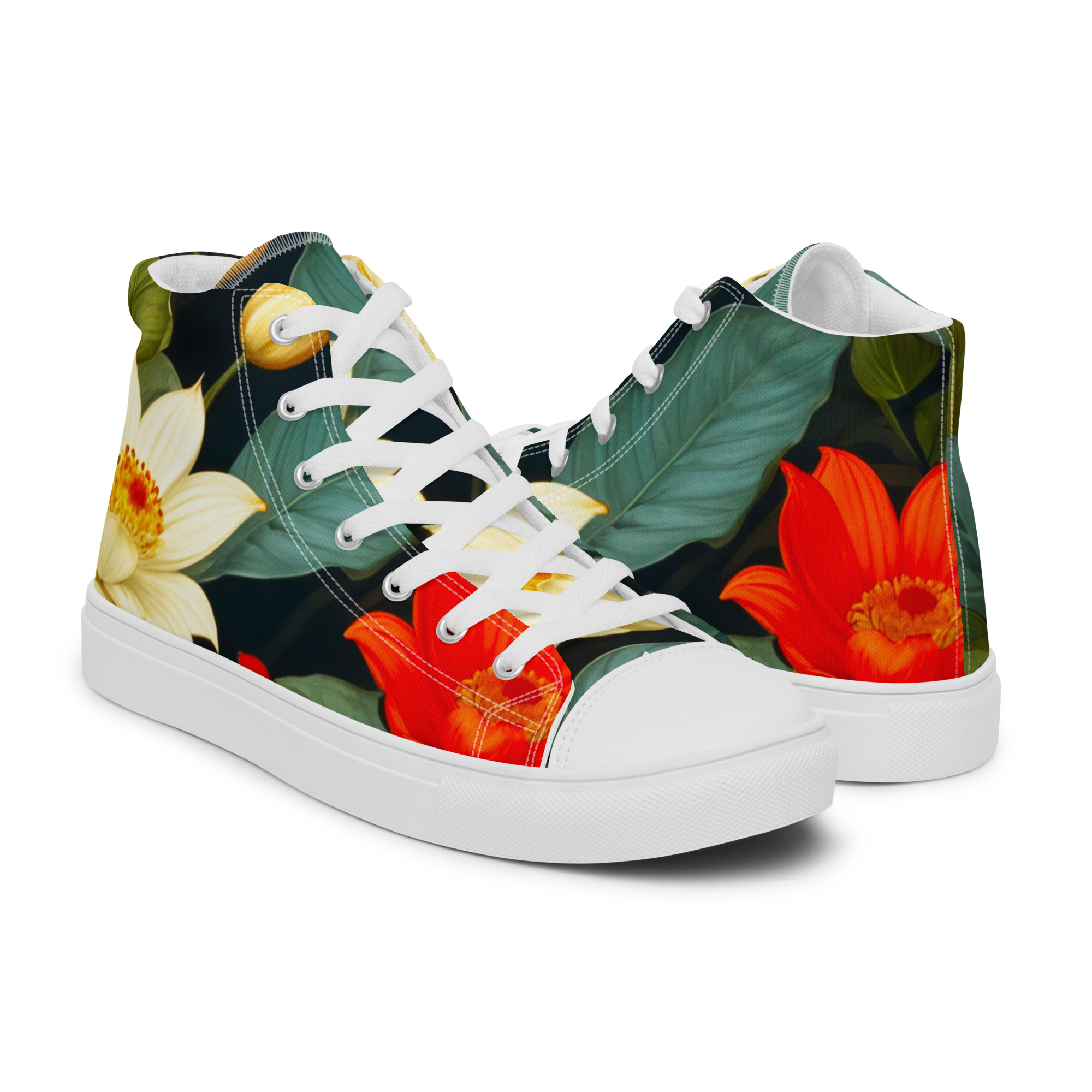 Remember to pamper your feet! These shoes are designed for all-day comfort and support, featuring a breathable lining, a soft insole, and a padded collar for a secure and comfortable fit. The classic, stylish high-top Blooming Beauties Canvas Shoes are a perfect wardrobe addition.