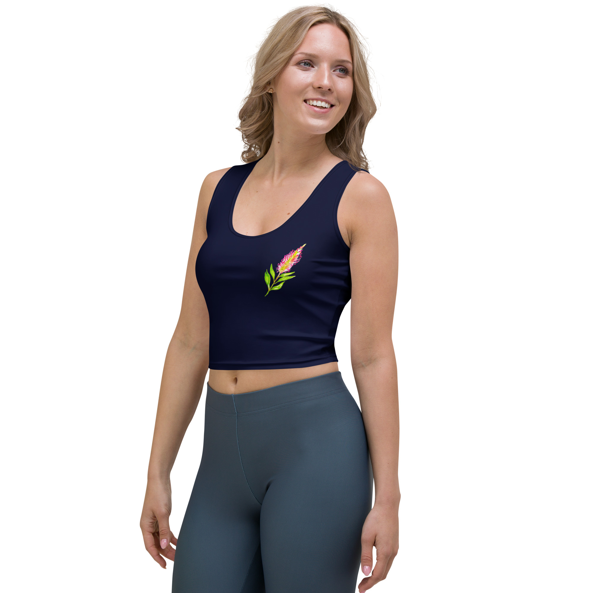 Bottle Brush Crop Top – Inspired by Australian Wildflowers to make you look fabulous in an all-over printed, body-hugging crop top. Made from a soft, high-quality blend of polyester and spandex, this crop top offers a smooth, flexible fit that moves with you. Its four-way stretch fabric ensures lasting durability, comfort, and shape retention—perfect for both active days and relaxed moments.