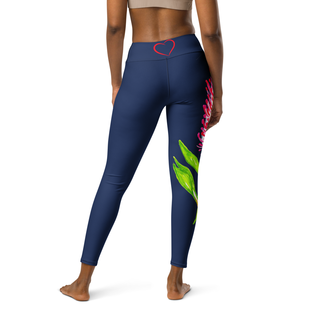 Bottle Brush Yoga Leggings Blue – an Australian Wildflower Design. The Bottle Brush Yoga Leggings Blue are super soft, stretchy, and comfortable yoga leggings. Made from a premium blend of polyester and spandex, these leggings offer a smooth, soft texture and a flattering, body-hugging fit. The four-way stretch fabric provides flexibility, durability, and comfort, ensuring you can move freely during yoga, workouts, or daily activities. Order these to make sure your next yoga session is the best one ever!