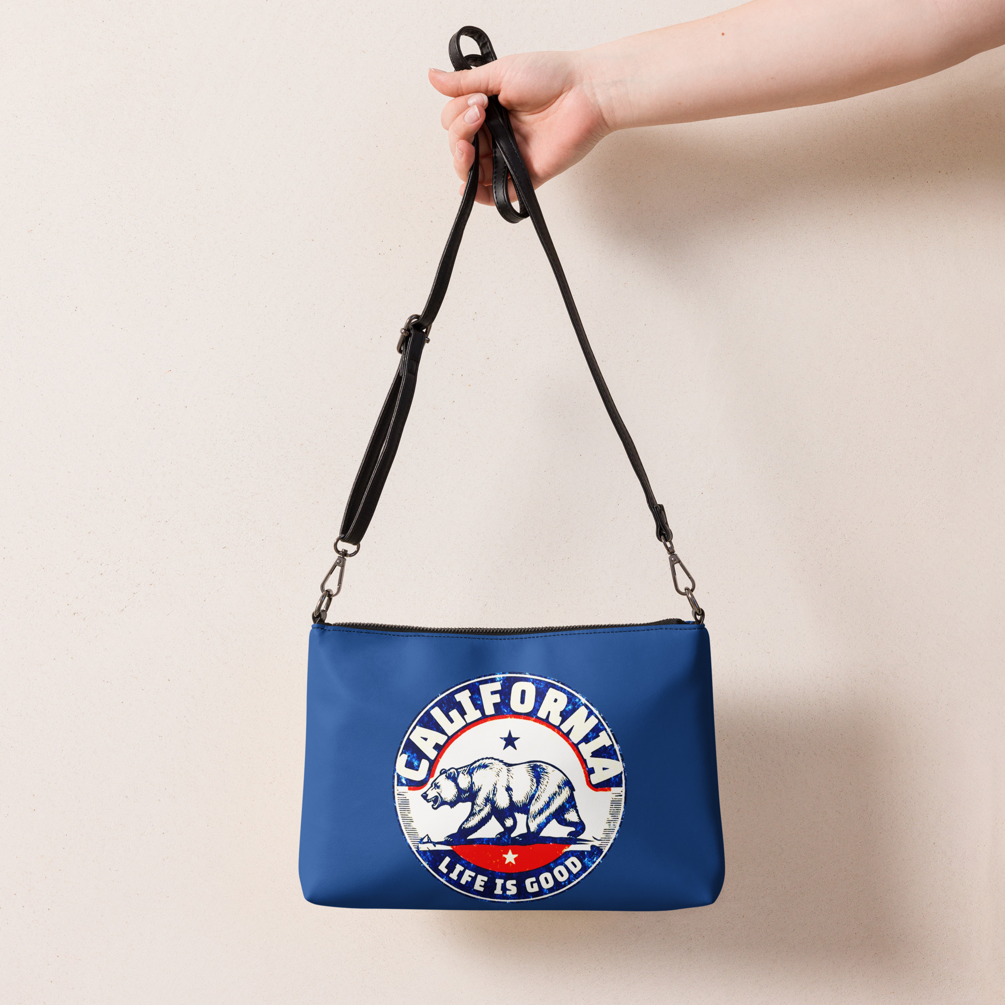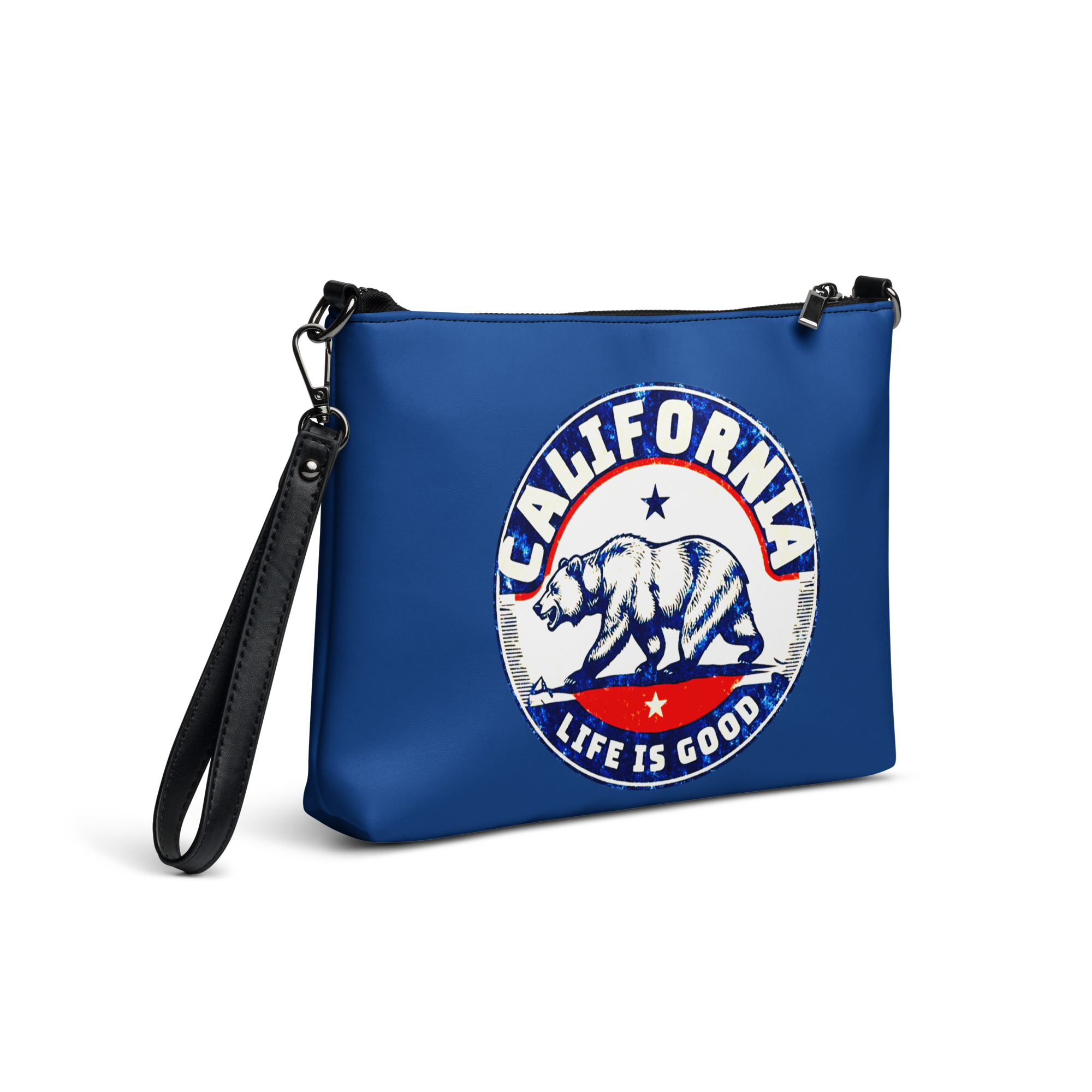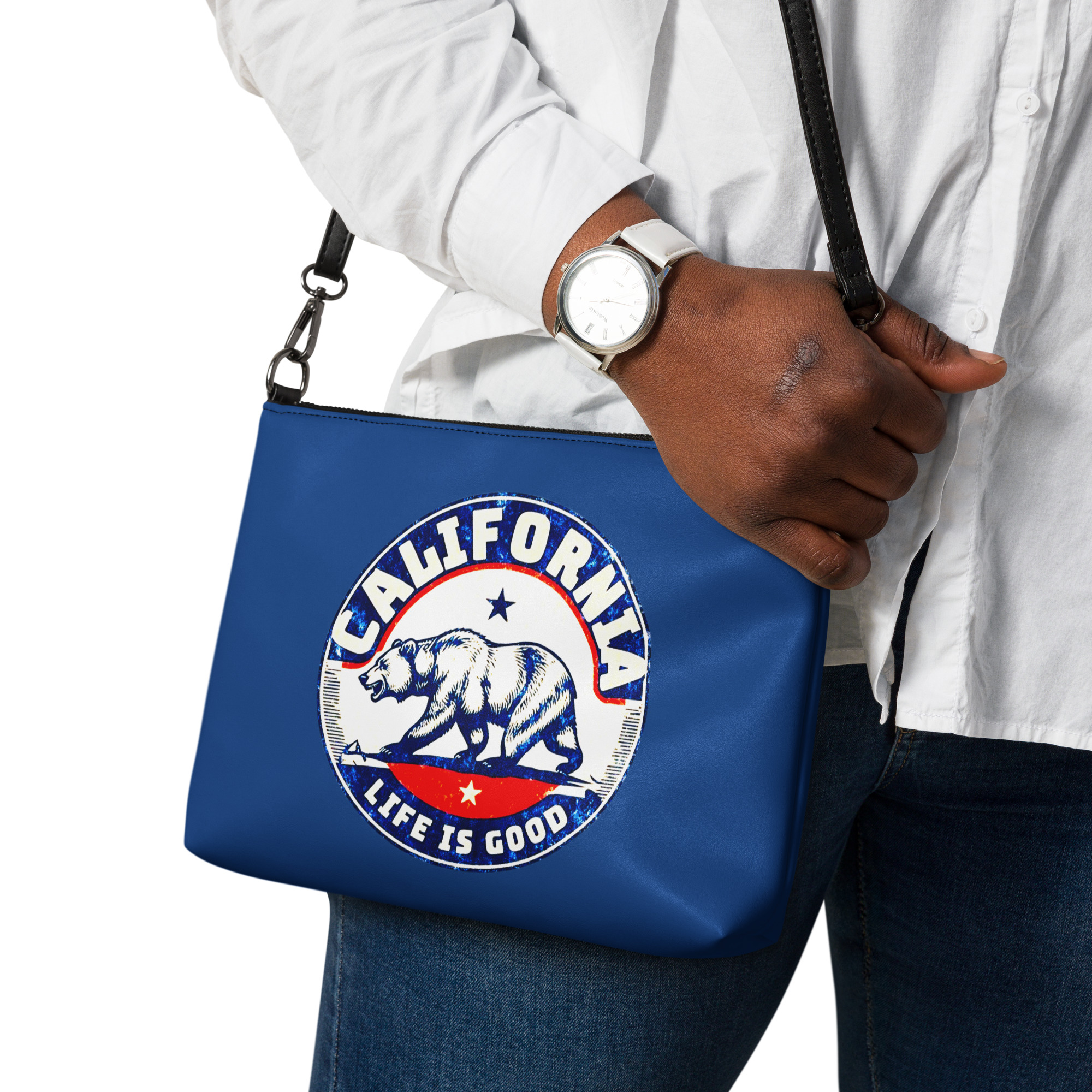 The California Dark Blue Crossbody Ba keeps your style on point. It’s versatile and lets you keep your hands free. The bag is made of premium faux leather. It features dark gray hardware. The zip-top closure and inside pockets keep your essentials secure and organized. It is lightweight and comfortable. The California Dark Blue Crossbody Bag is designed for hands-free ease. It doesn’t add bulk. You can change the look with removable wrist and shoulder straps. Style the bag for day-to-night looks.