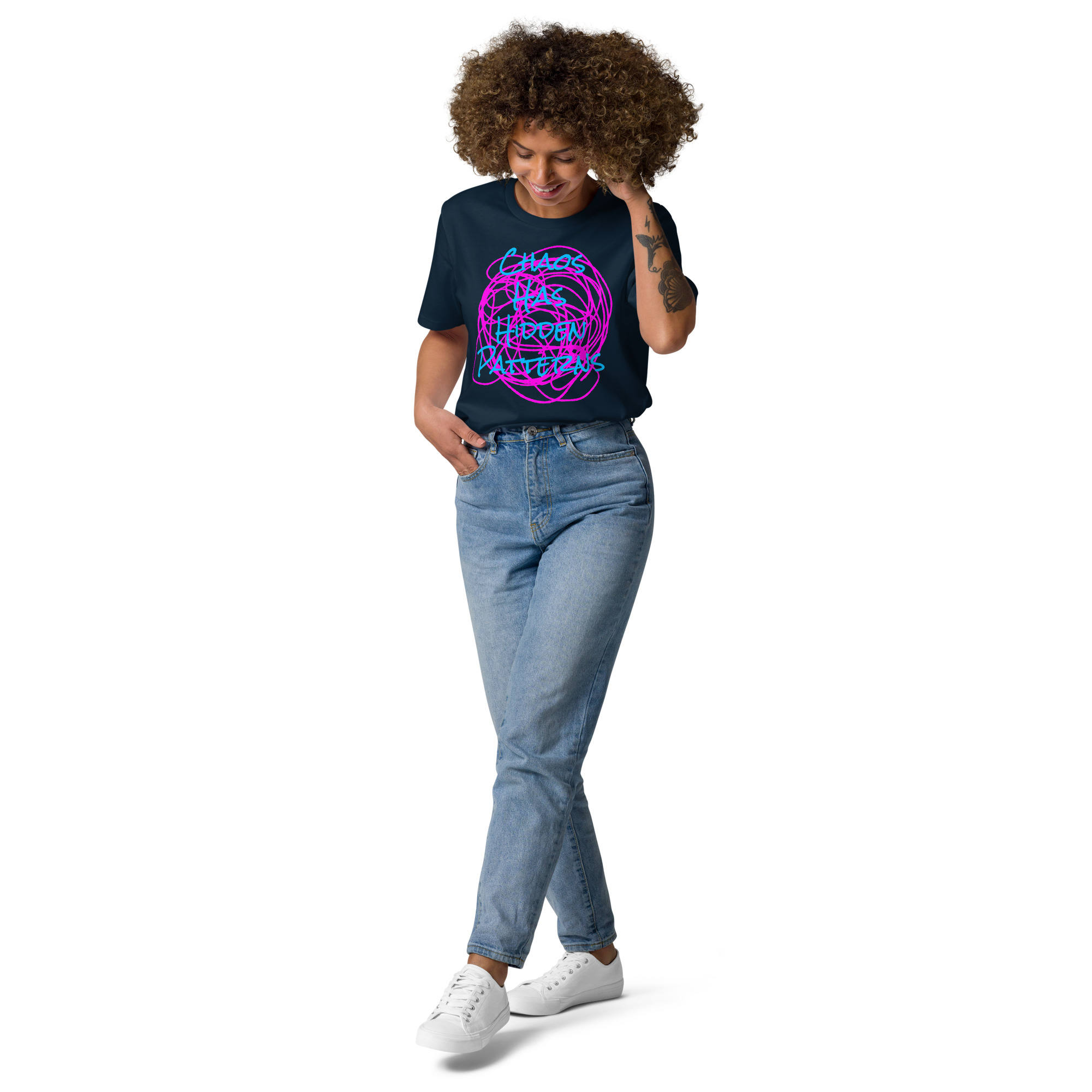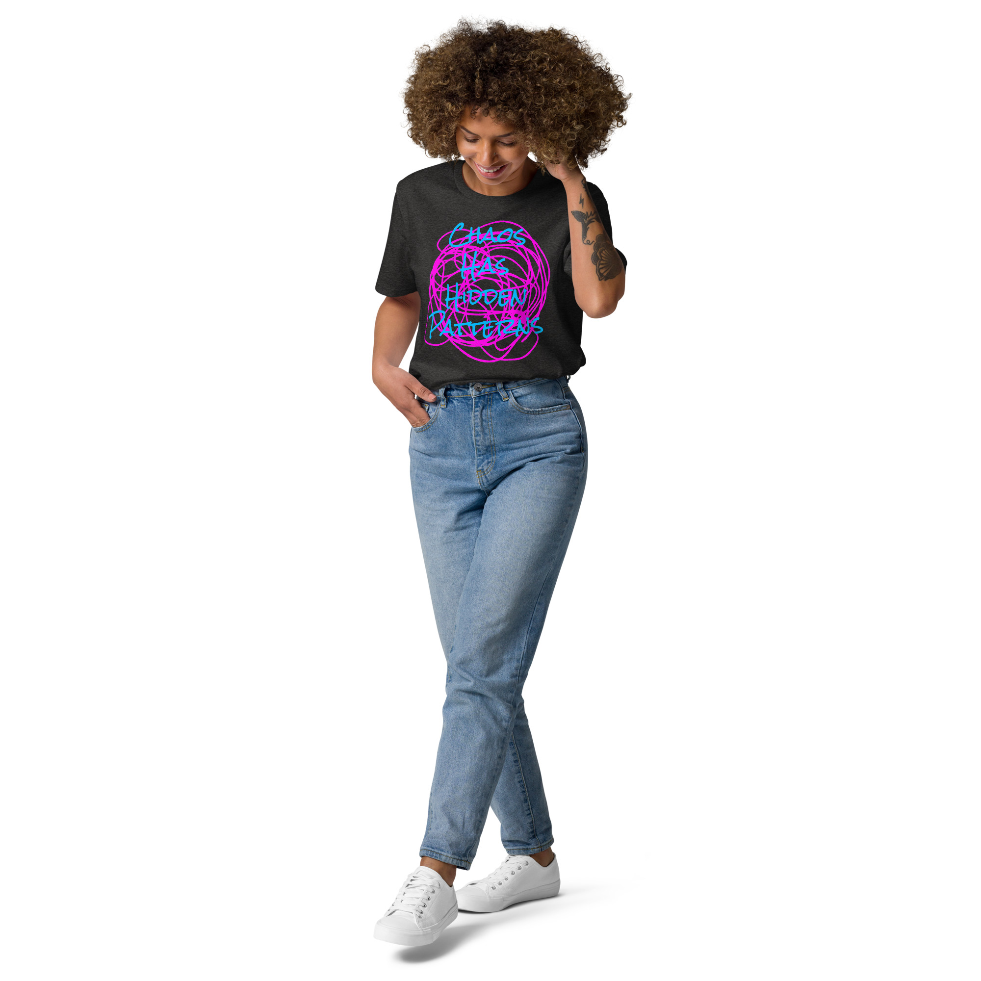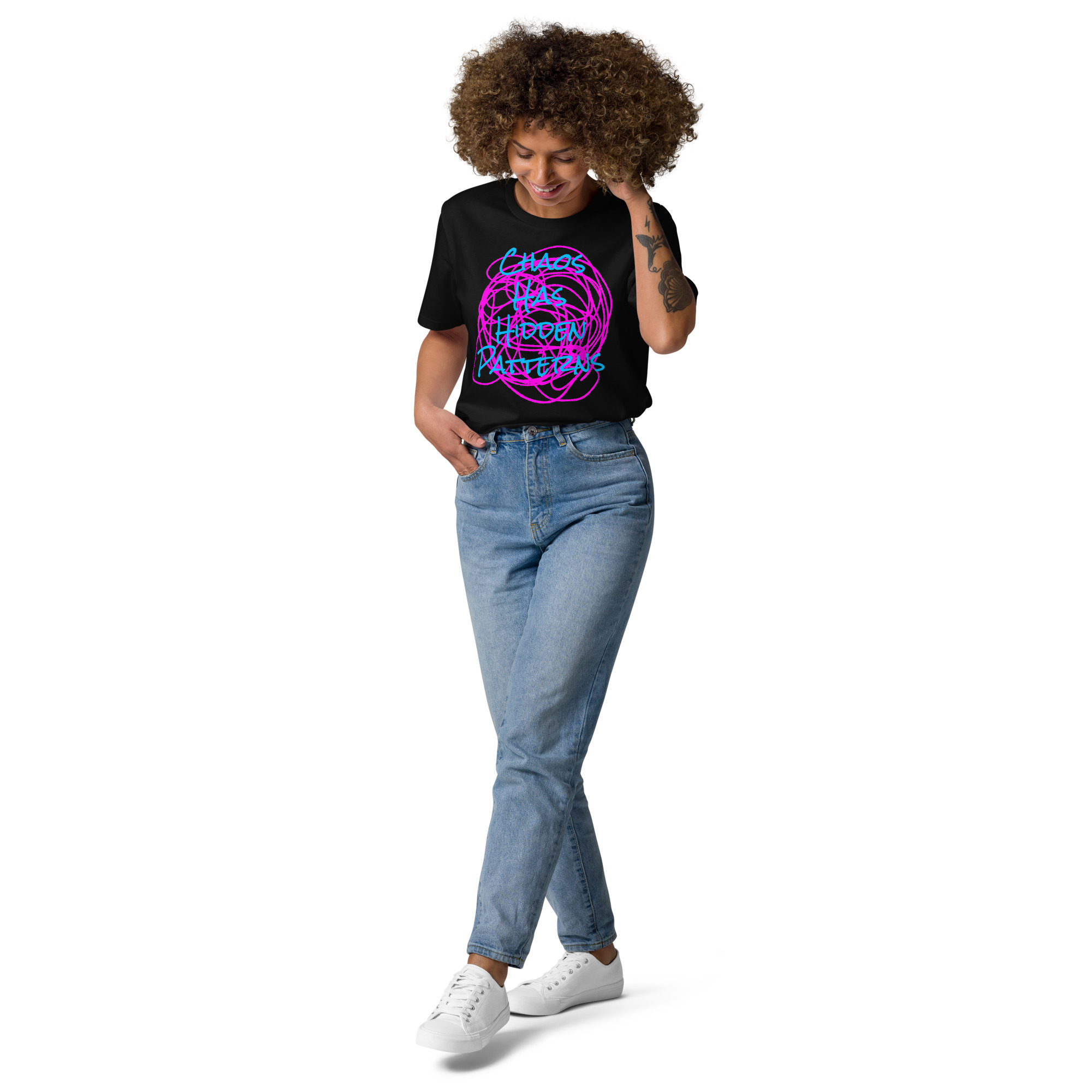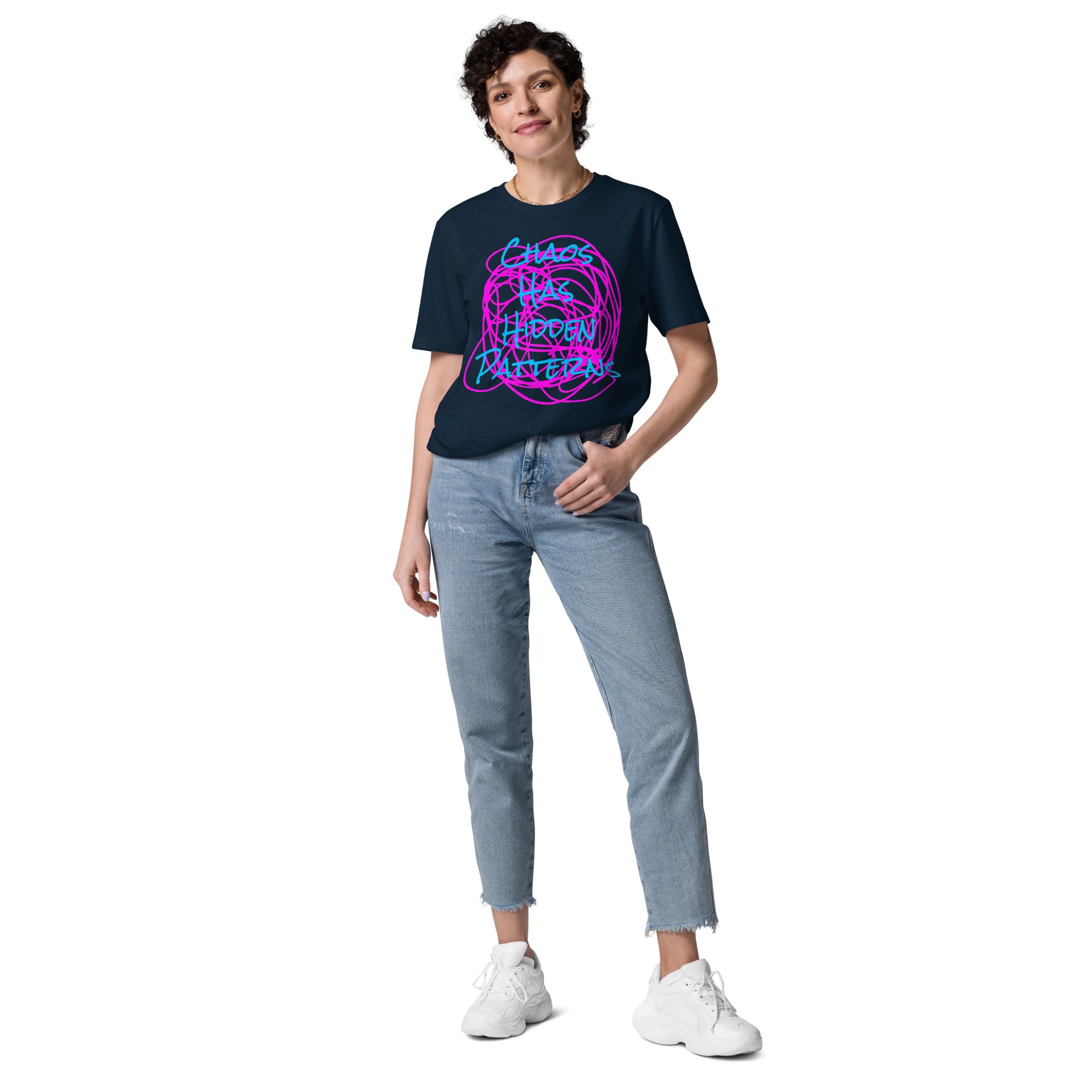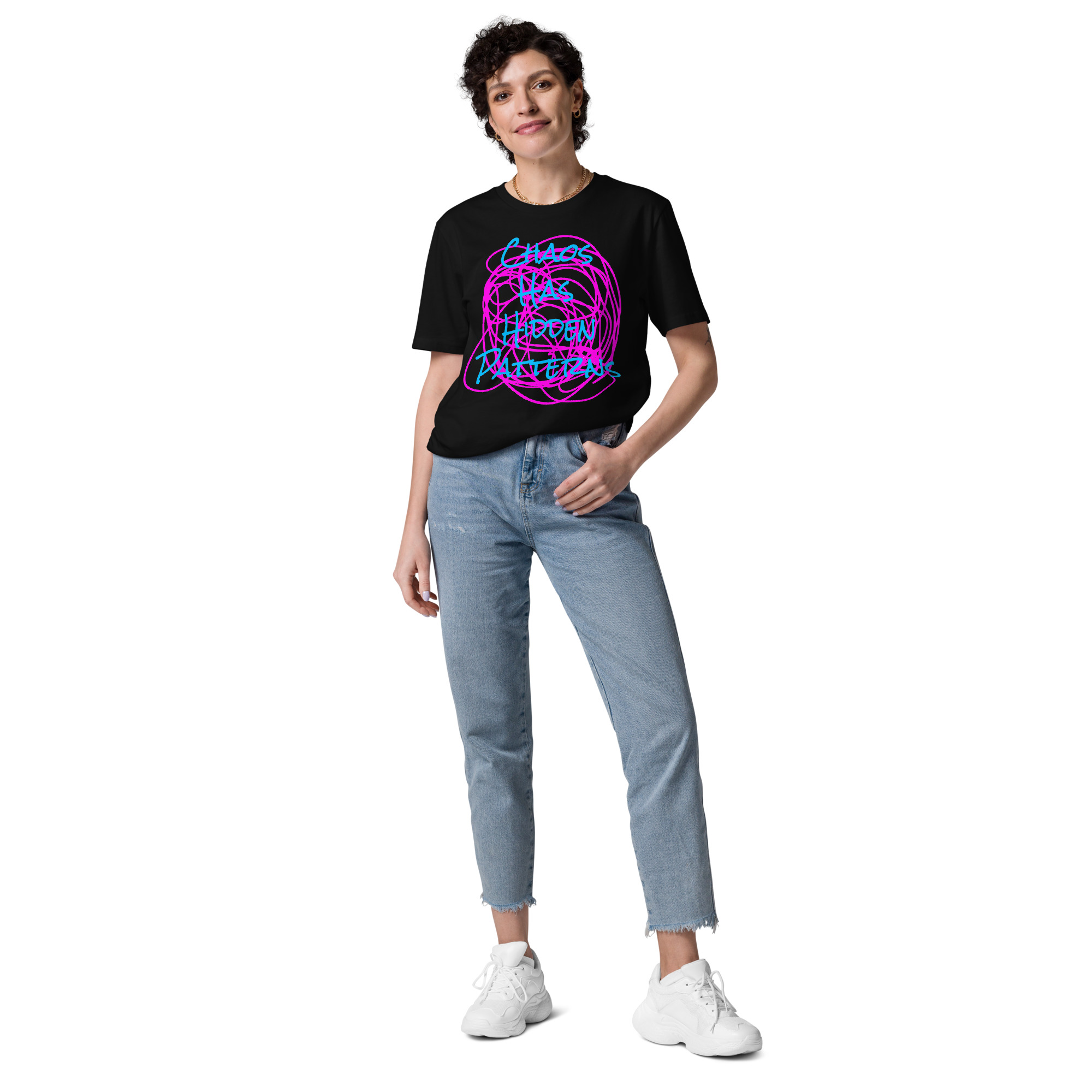 Crafted from 100% organic ring-spun cotton, this unisex Chaos Cotton T-Shirt is an absolute essential. It’s not only high-quality and incredibly comfortable but also environmentally friendly. Featuring a medium fit, set-in sleeves, and a smooth single jersey construction, this tee offers a sleek, contemporary look that perfectly blends daily comfort with casual sophistication.