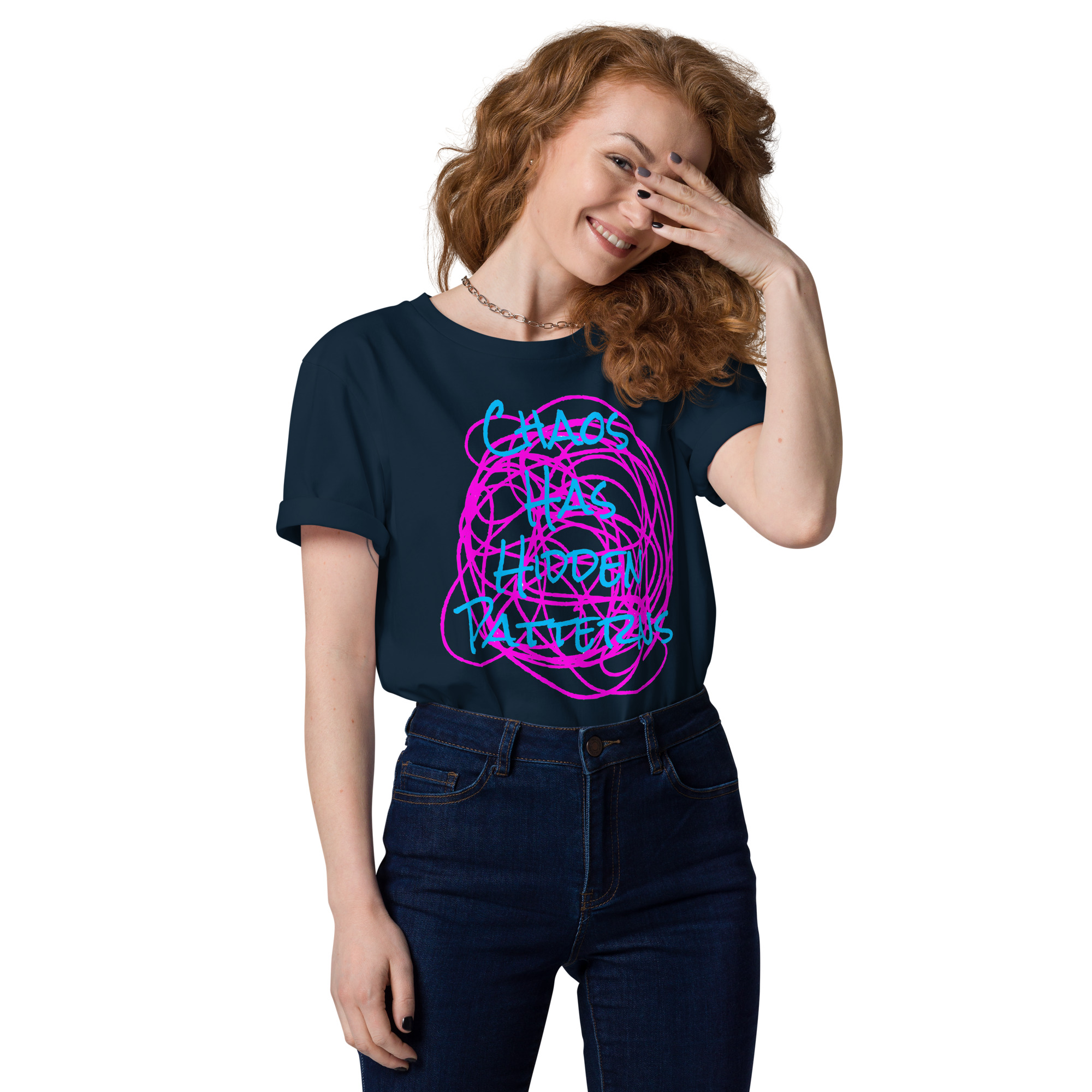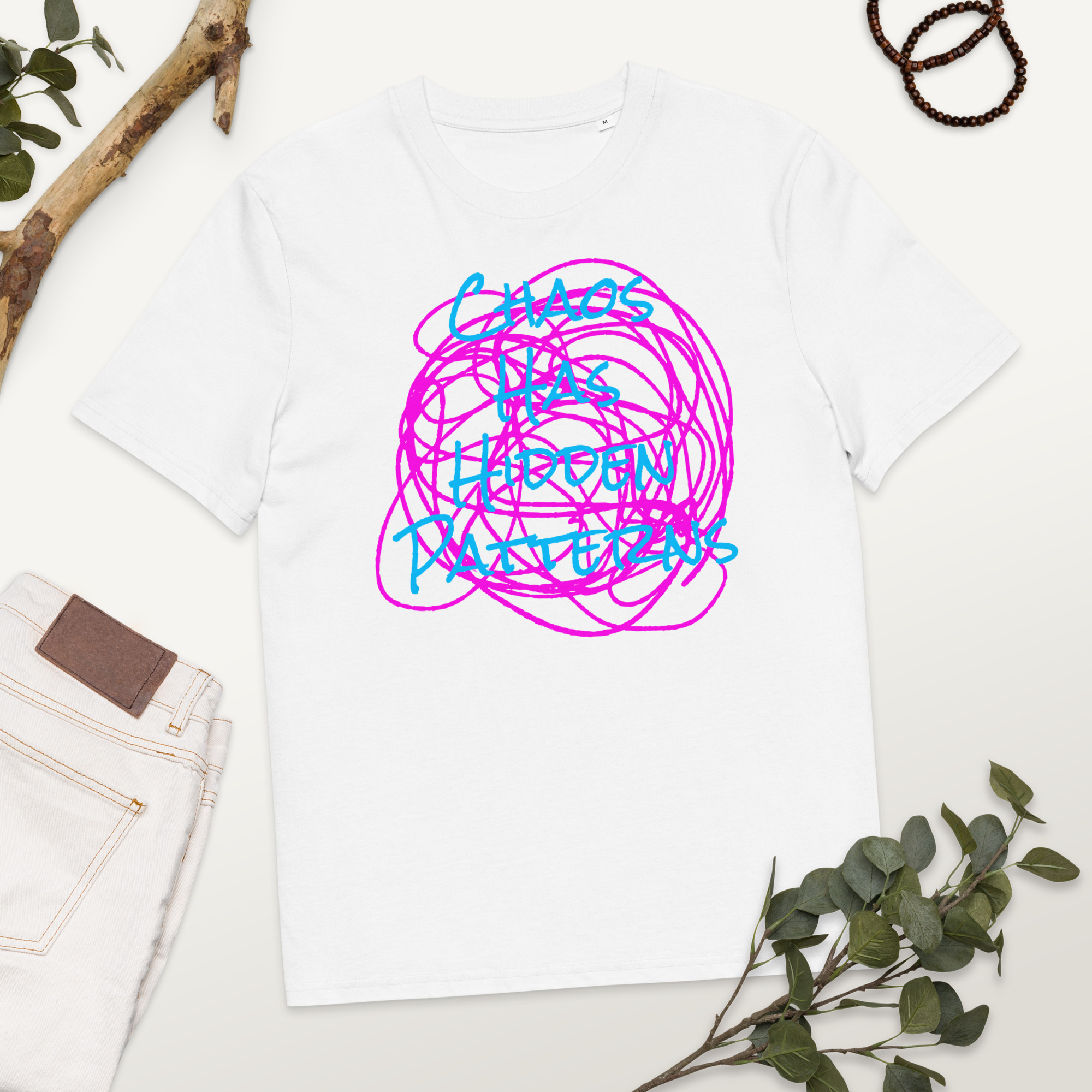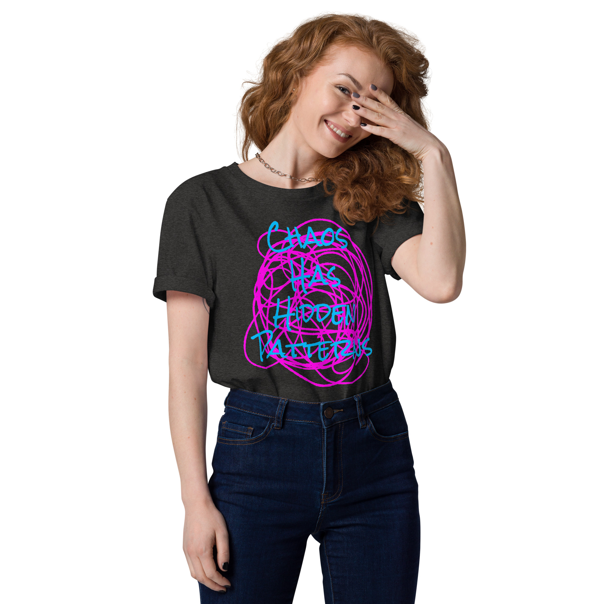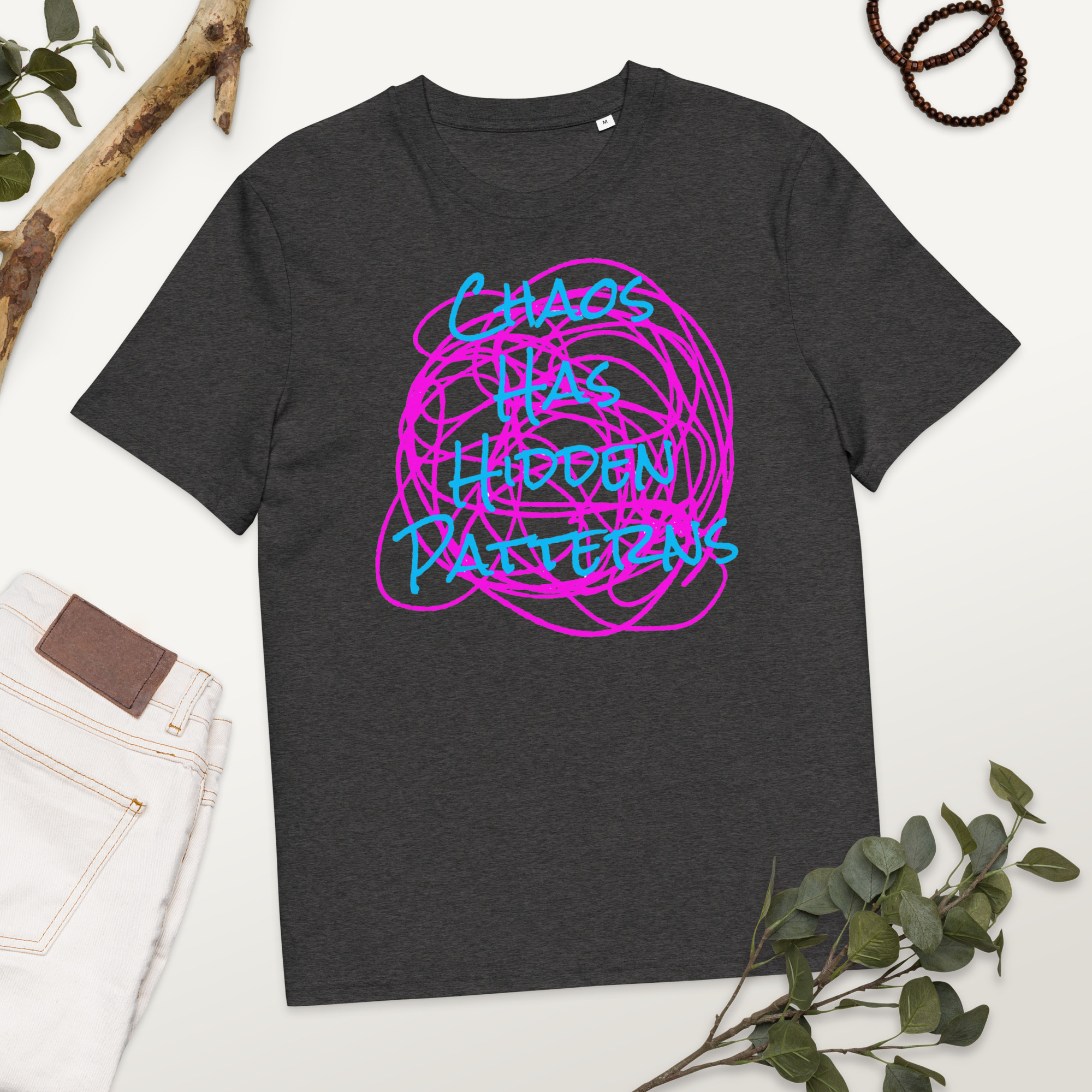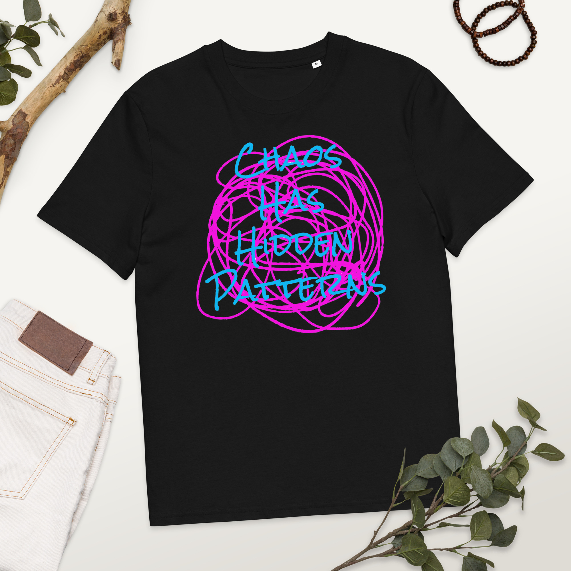Crafted from 100% organic ring-spun cotton, this unisex Chaos Cotton T-Shirt is an absolute essential. It’s not only high-quality and incredibly comfortable but also environmentally friendly. Featuring a medium fit, set-in sleeves, and a smooth single jersey construction, this tee offers a sleek, contemporary look that perfectly blends daily comfort with casual sophistication.