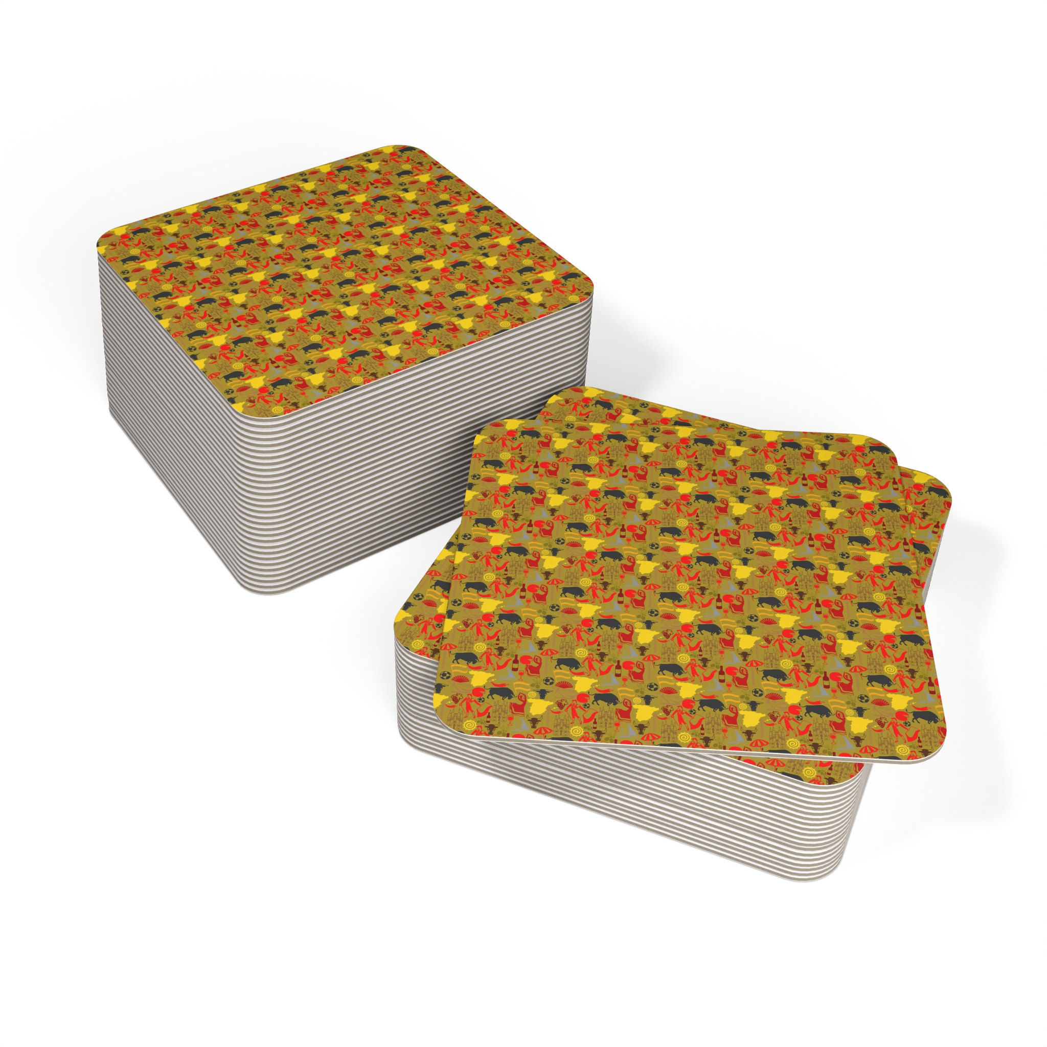 These square-shaped print-on-demand coasters add style to any surface while protecting it from nasty stains. They come in a pack of 50 or 100 coasters. The rounded edges give them a sleek, modern look, and the 50-point pulp board keeps them in place at all times.