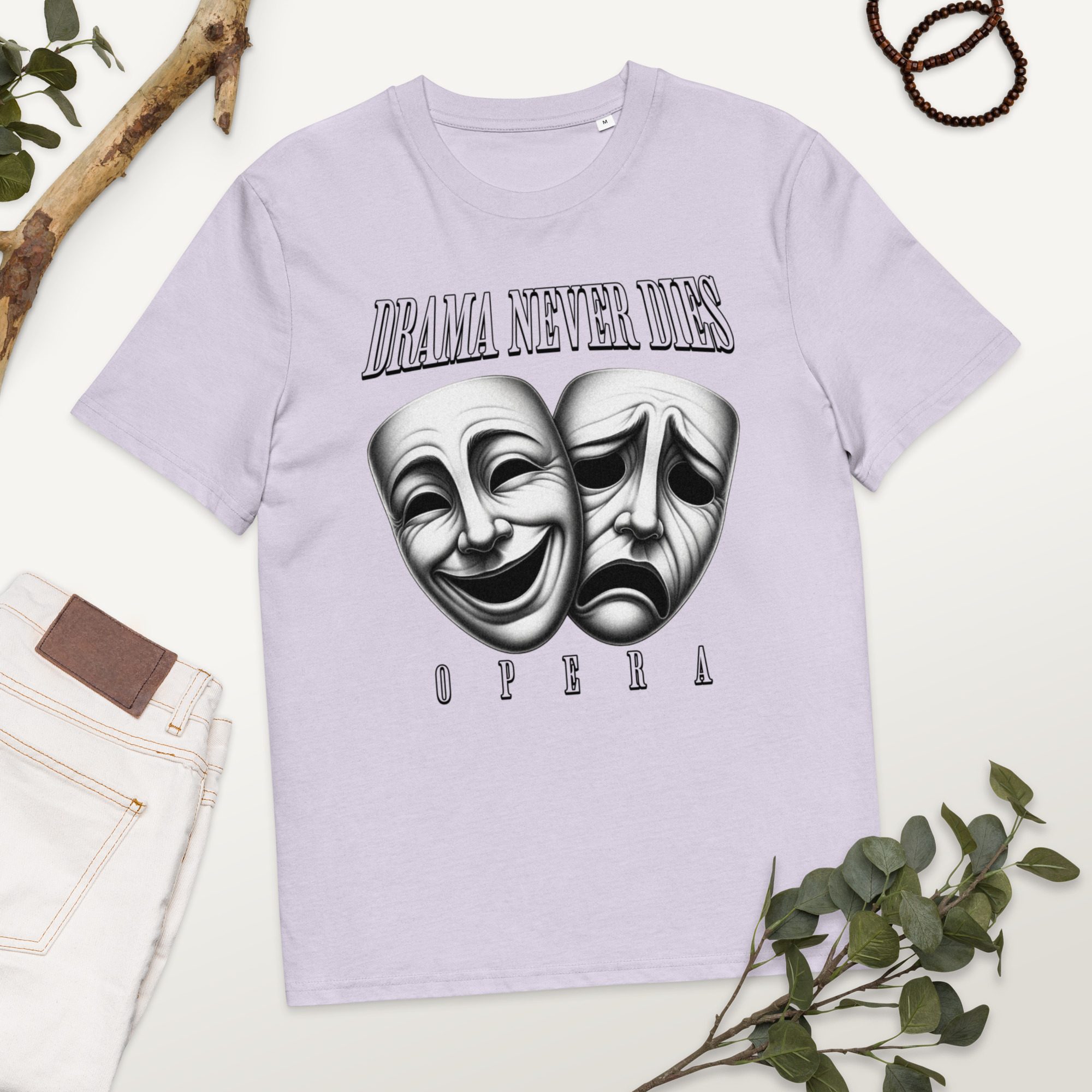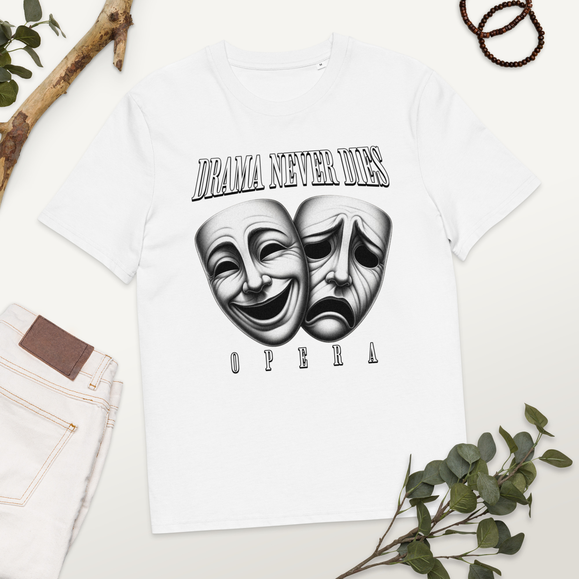 This Drama Never Dies Opera T-shirt is a must-have, crafted from 100% organic ring-spun cotton. The single-jersey fabric and substantial 5.3 oz/yd² weight make it both durable and lightweight, ensuring all-day comfort. It’s high-quality, incredibly comfy, and, best of all, eco-friendly.