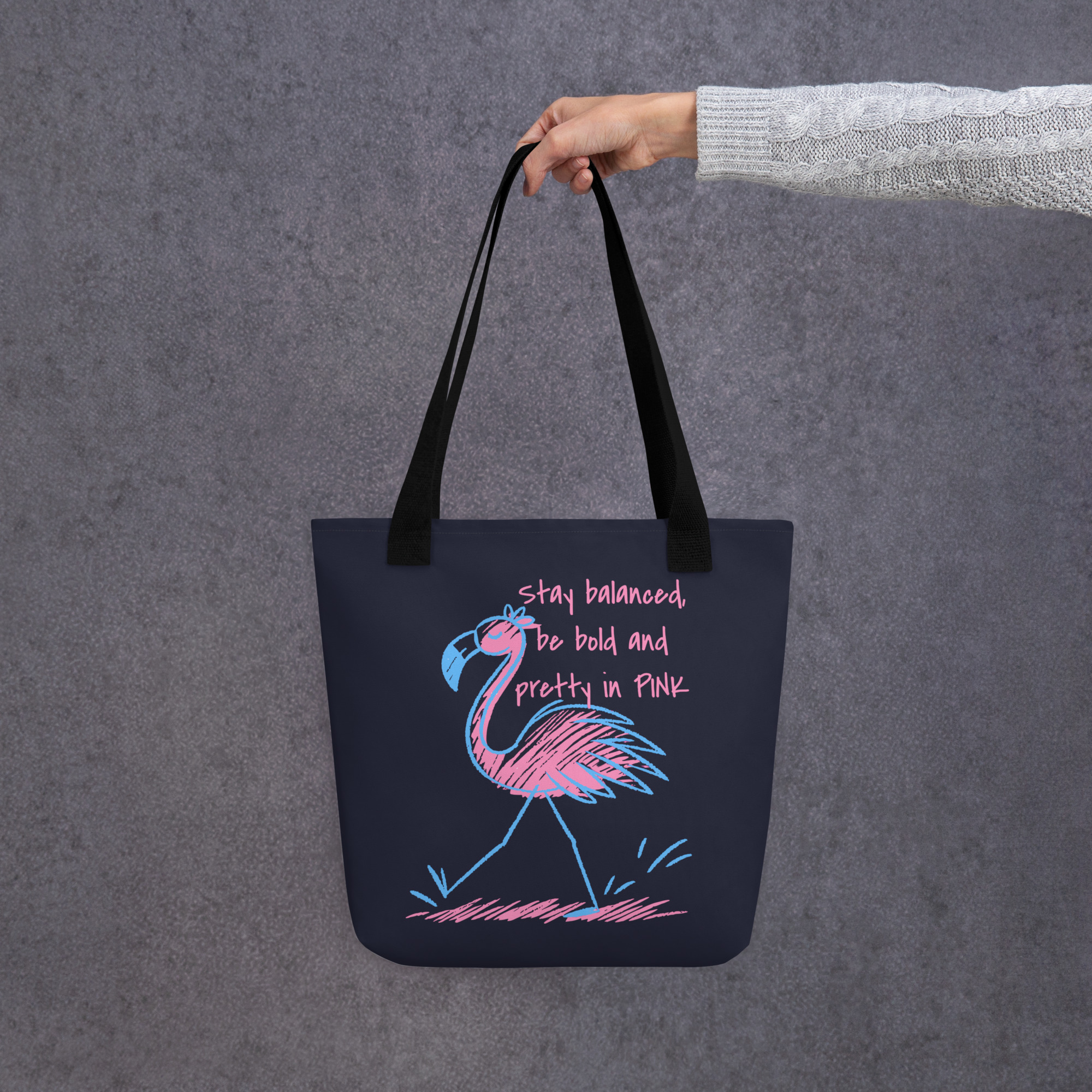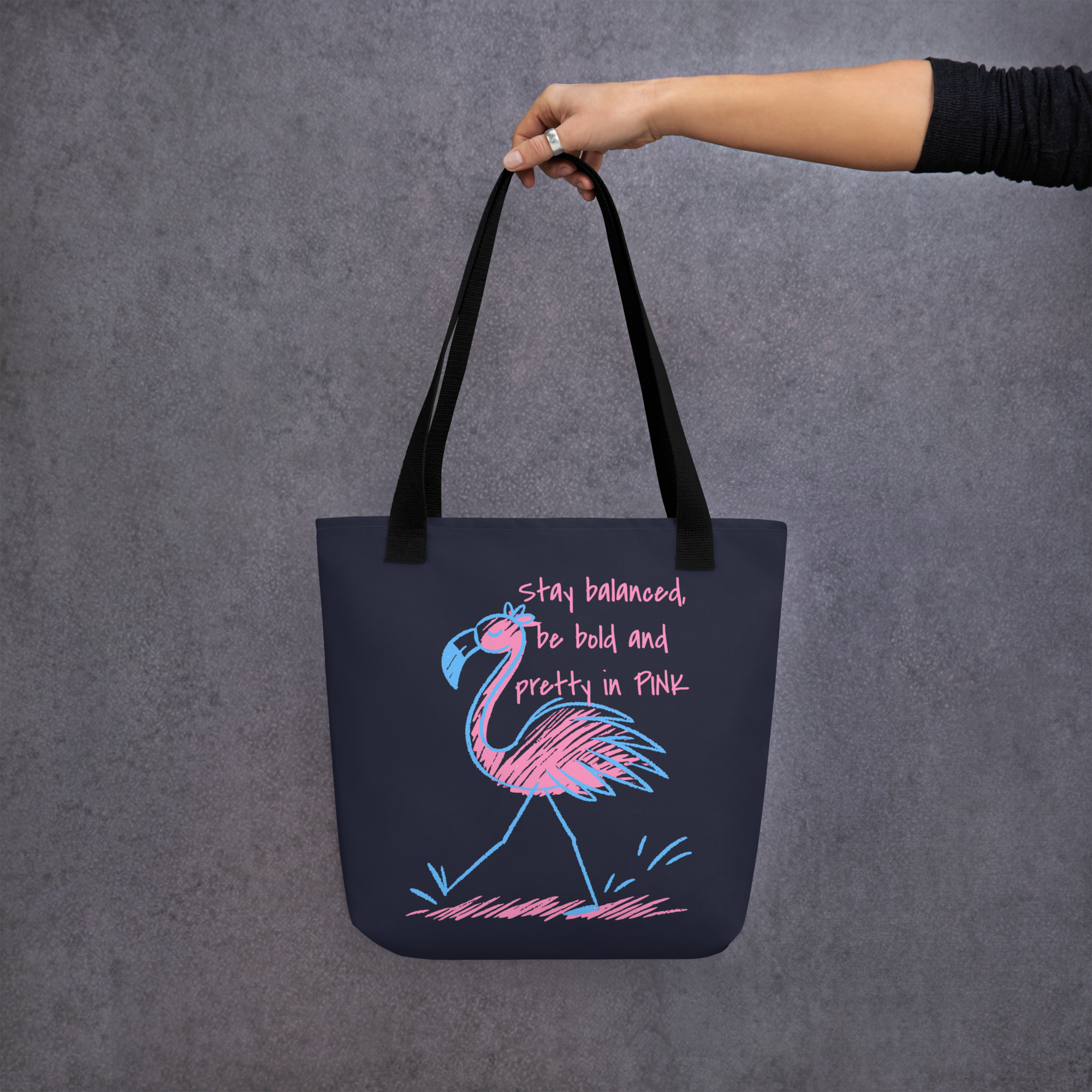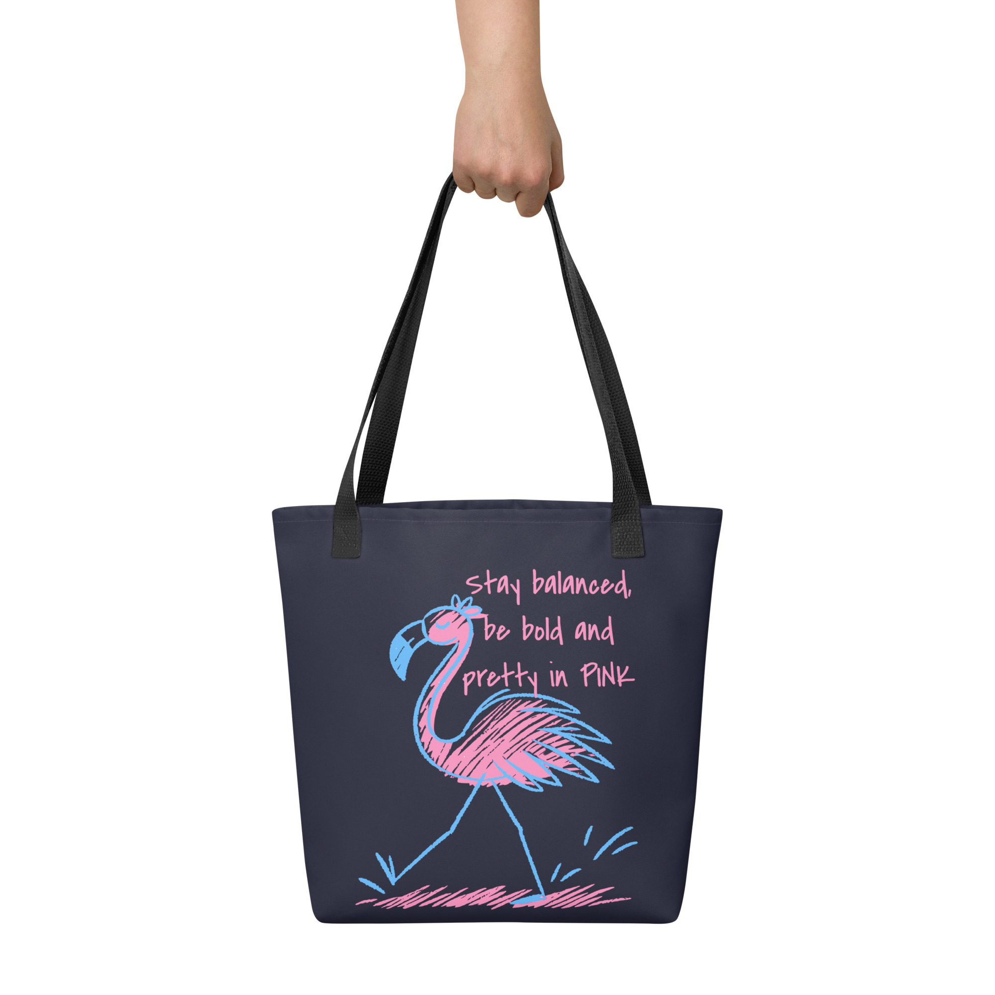 Carry everything important in style with this spacious and trendy Flamingo Tote Bag. Crafted from 100% durable polyester, it’s both lightweight and robust, perfect for daily wear. Its ample 15″ × 15″ (39 × 39 cm) dimensions and 2.6-gallon (10-liter) capacity offer plenty of room for groceries, books, beach gear, or whatever else you need to bring along.
