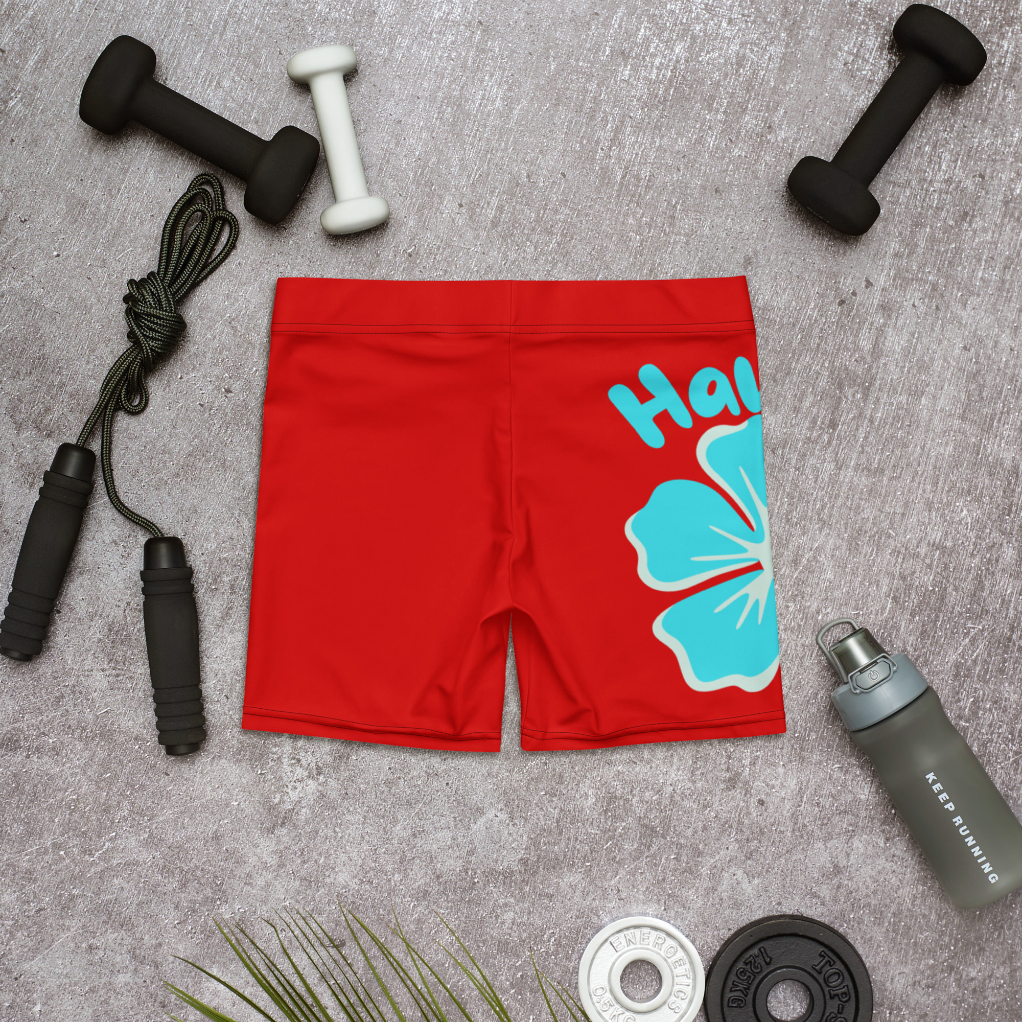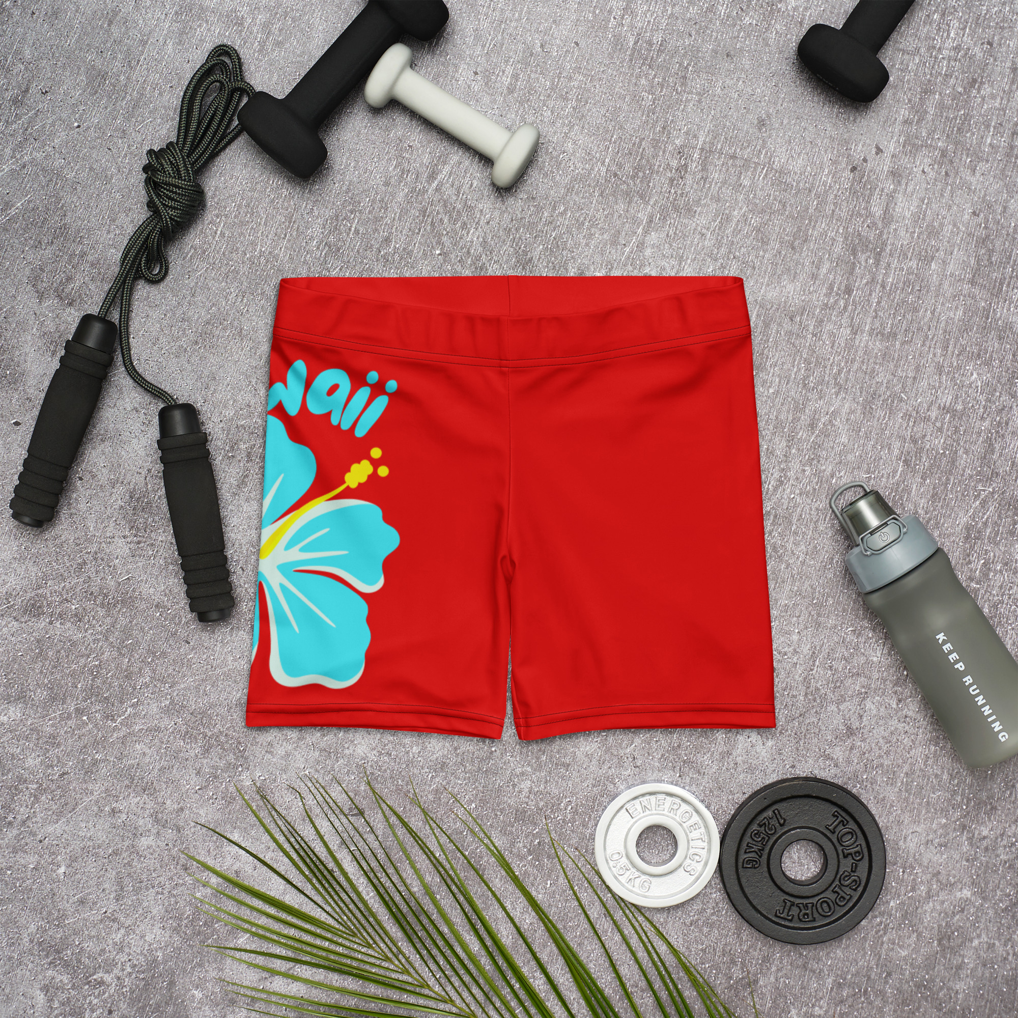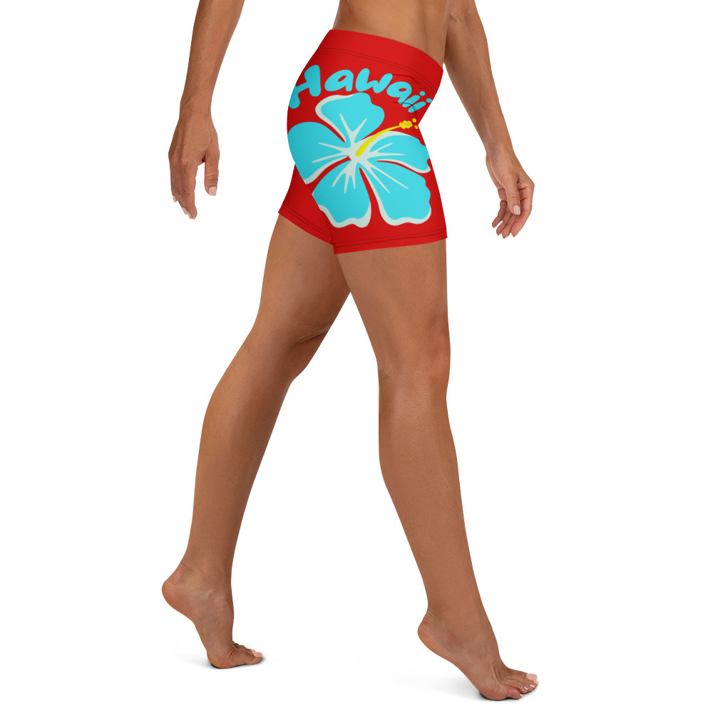 Hawaii Hibiscus Red Yoga Shorts