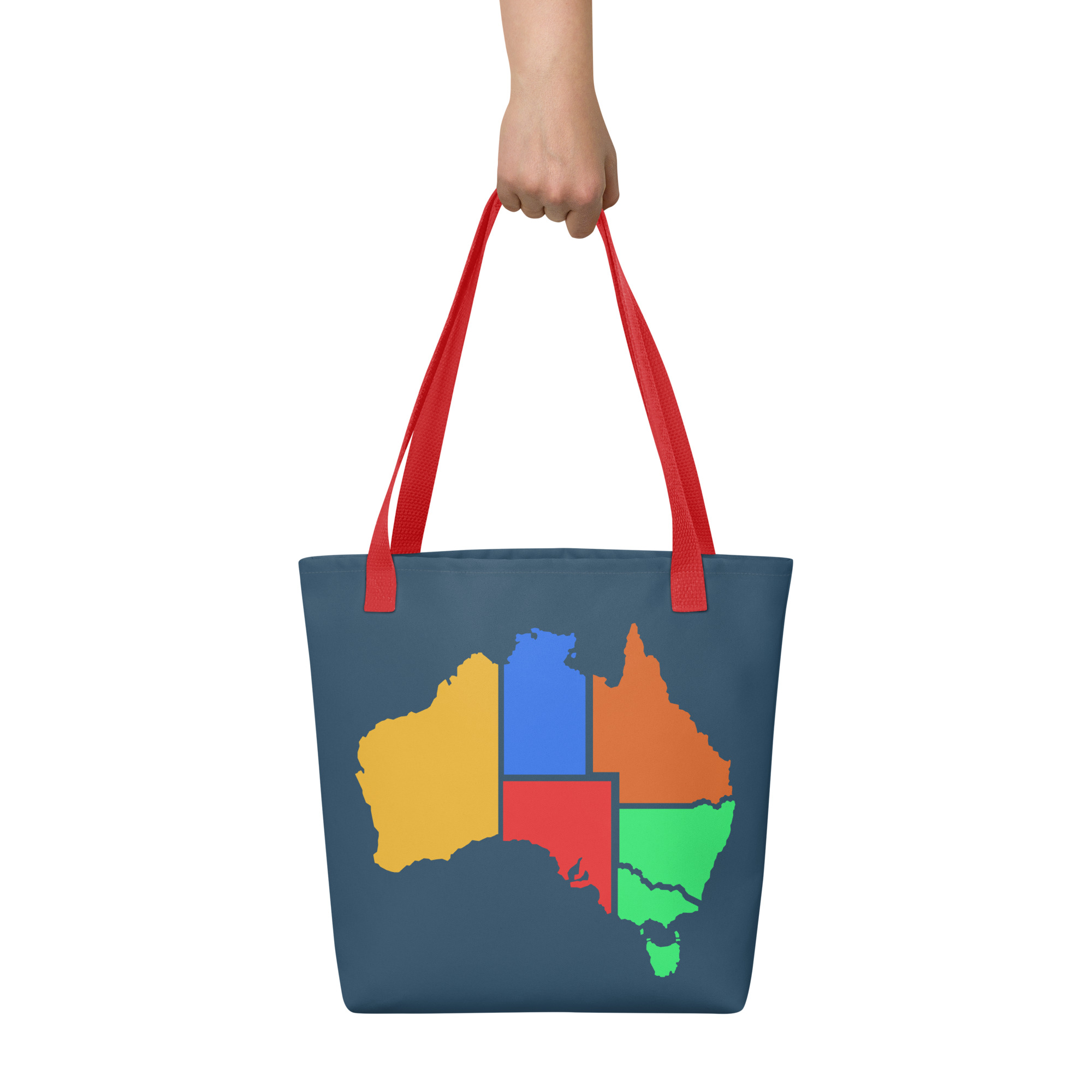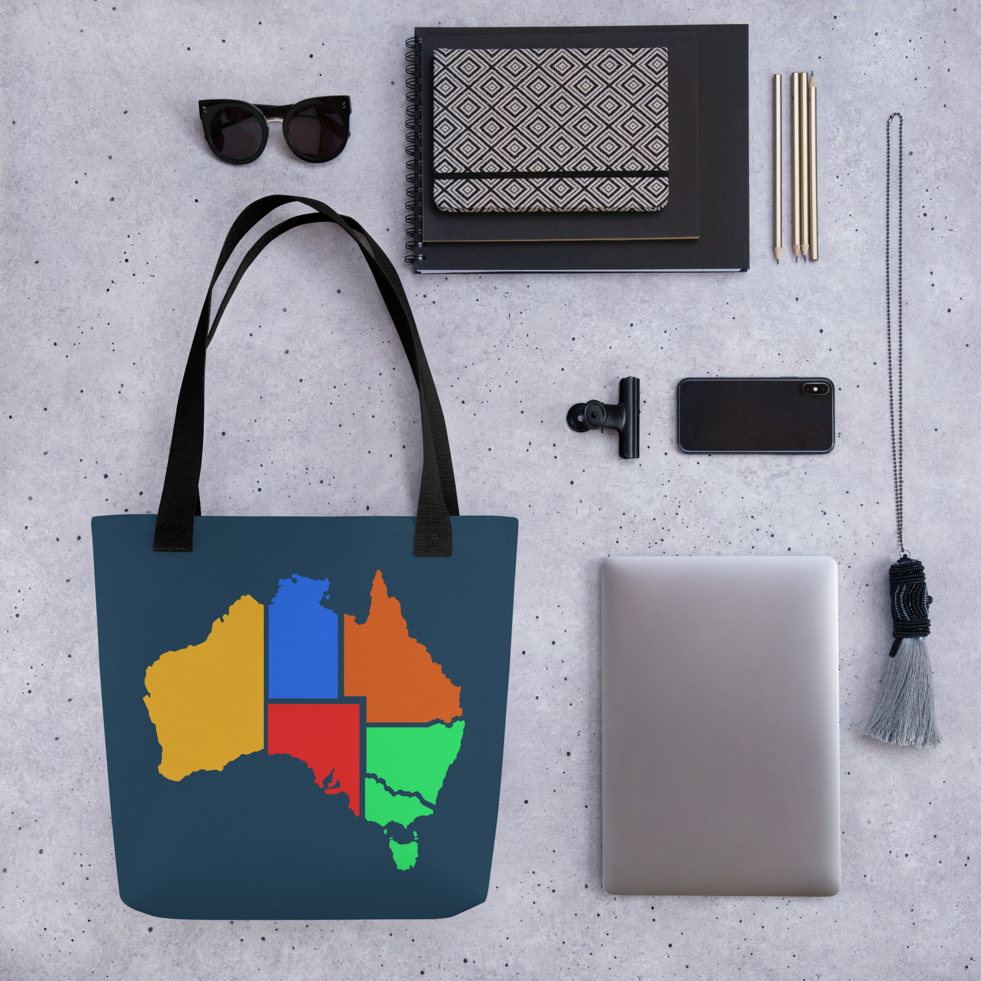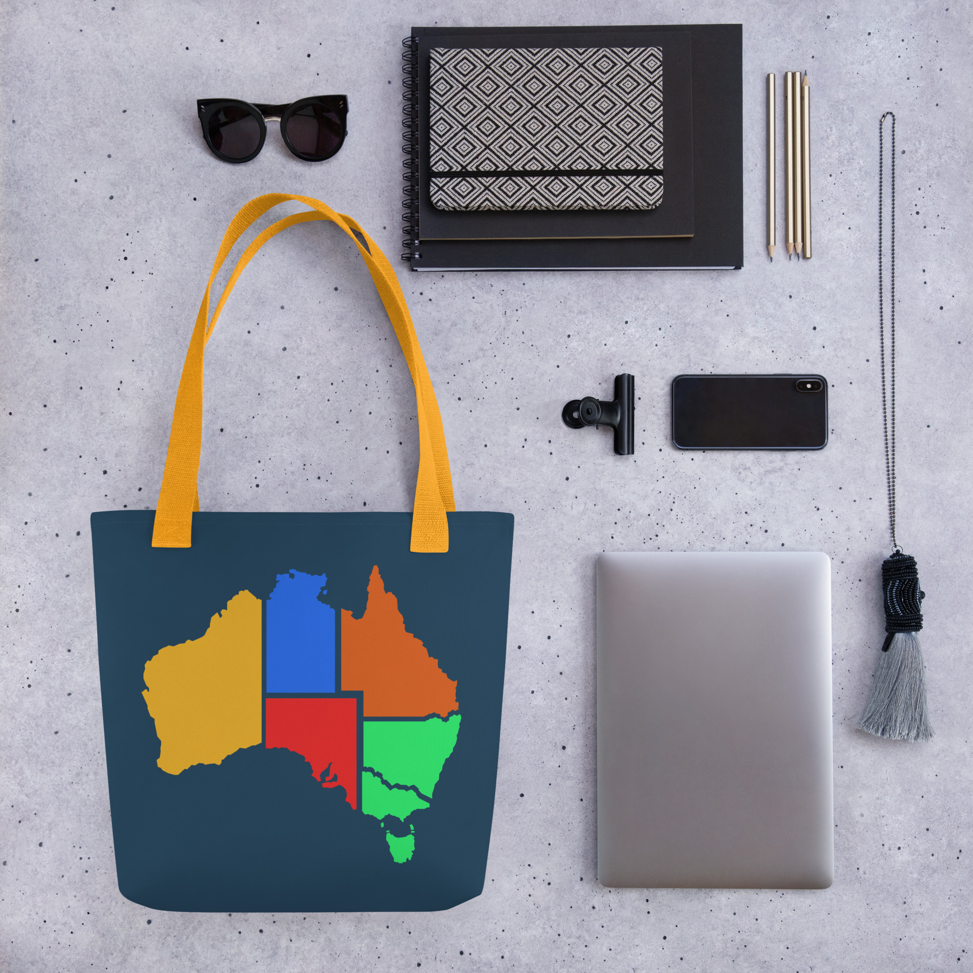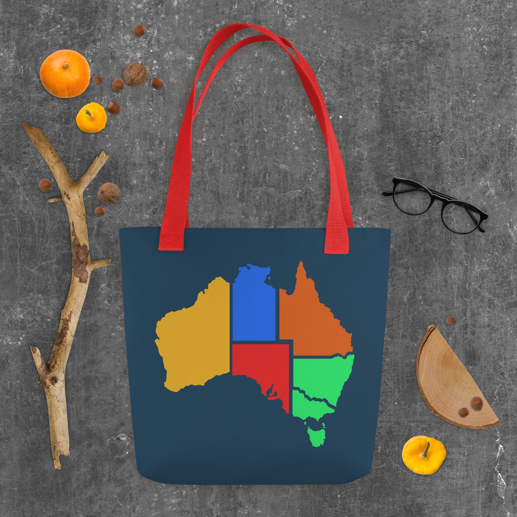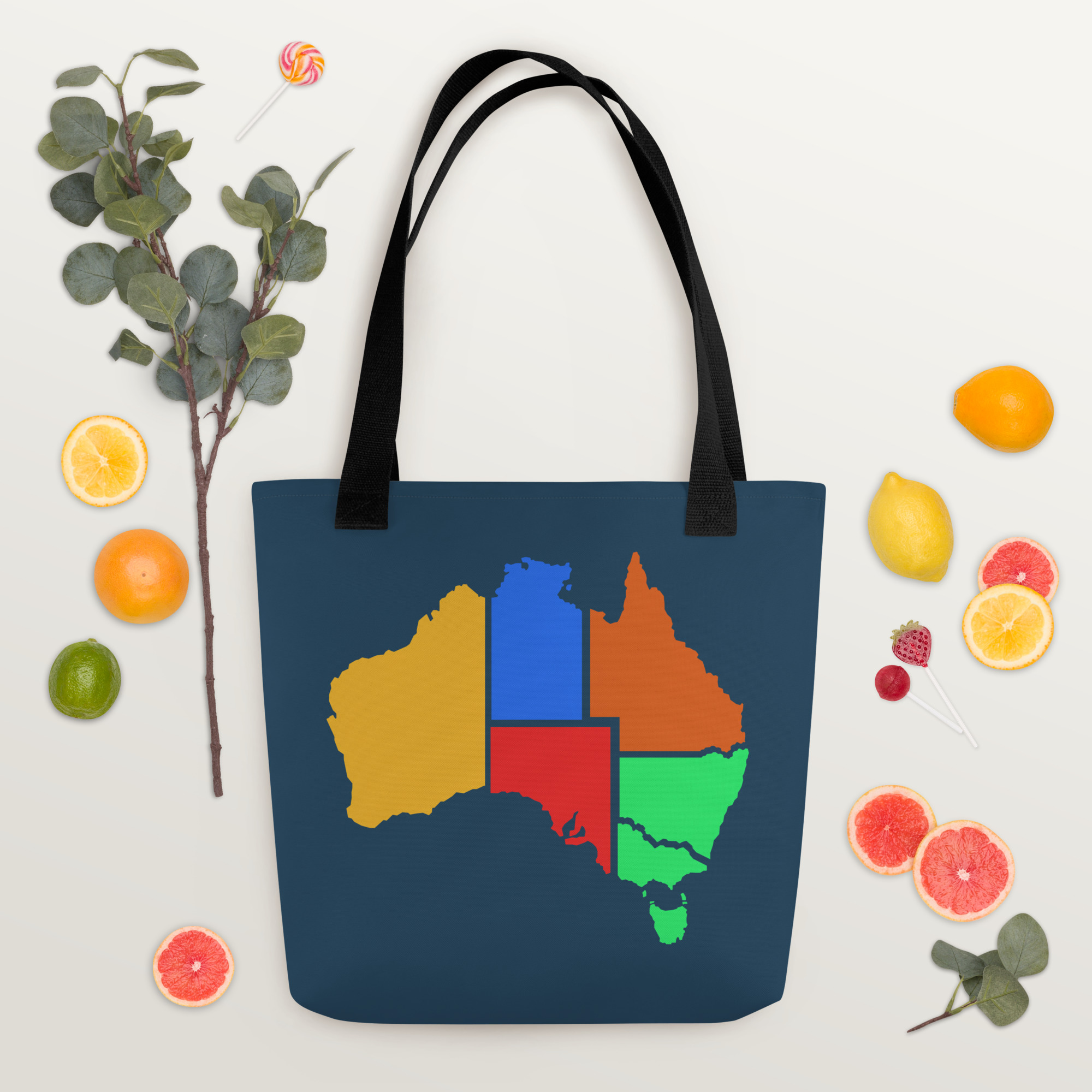 The Love Australia Tote Bag with a map of the Great Southern Land is a spacious and trendy tote bag to help you carry around everything that matters.