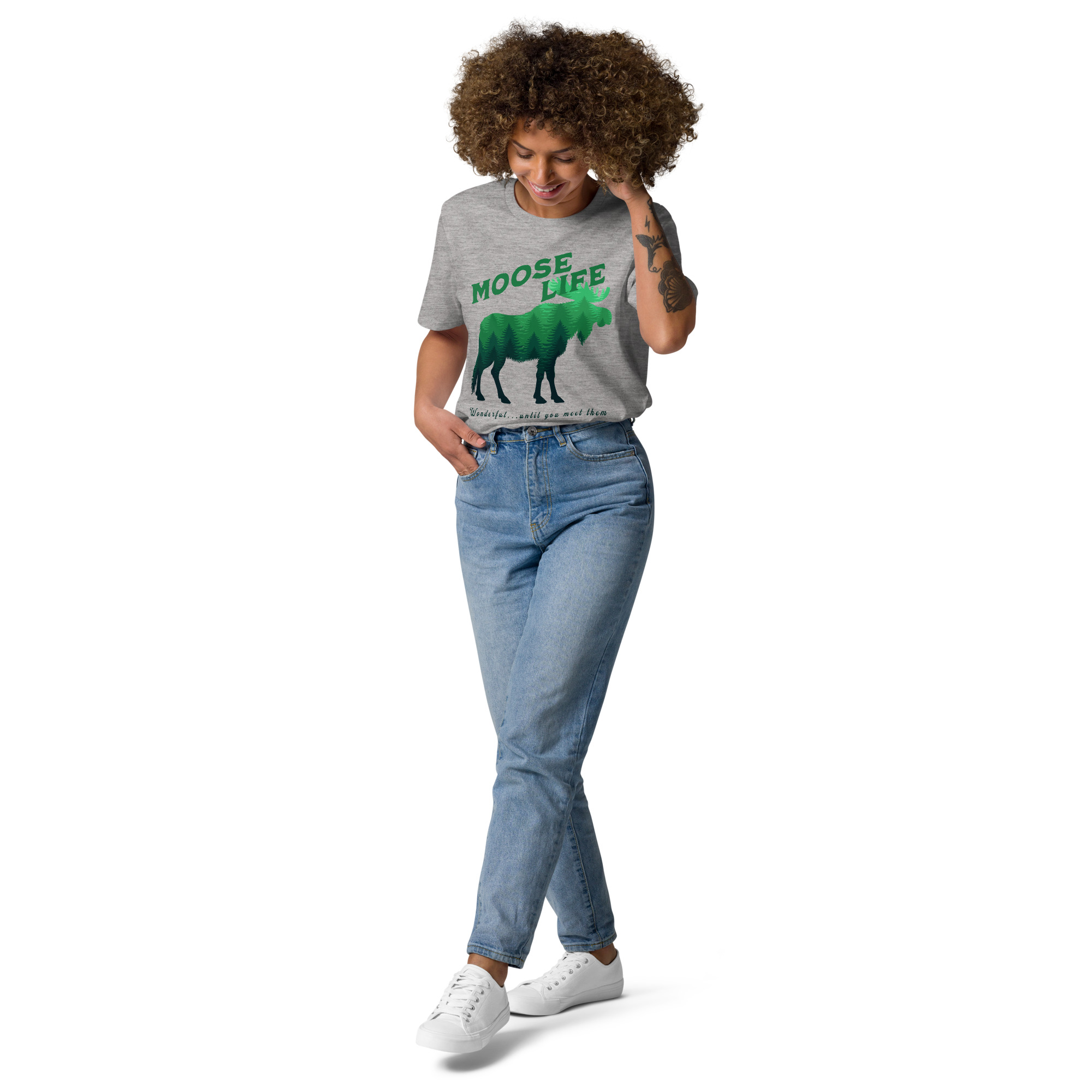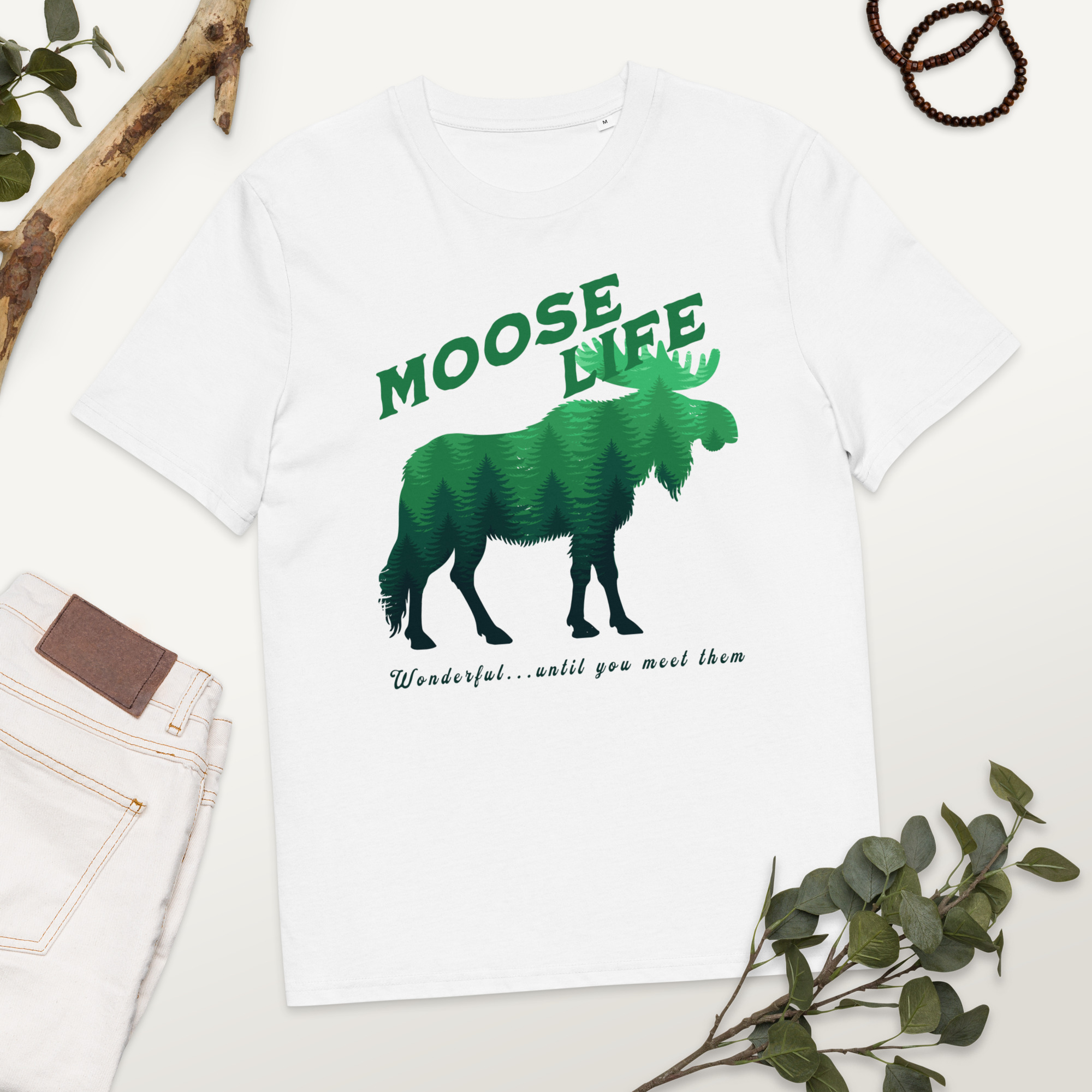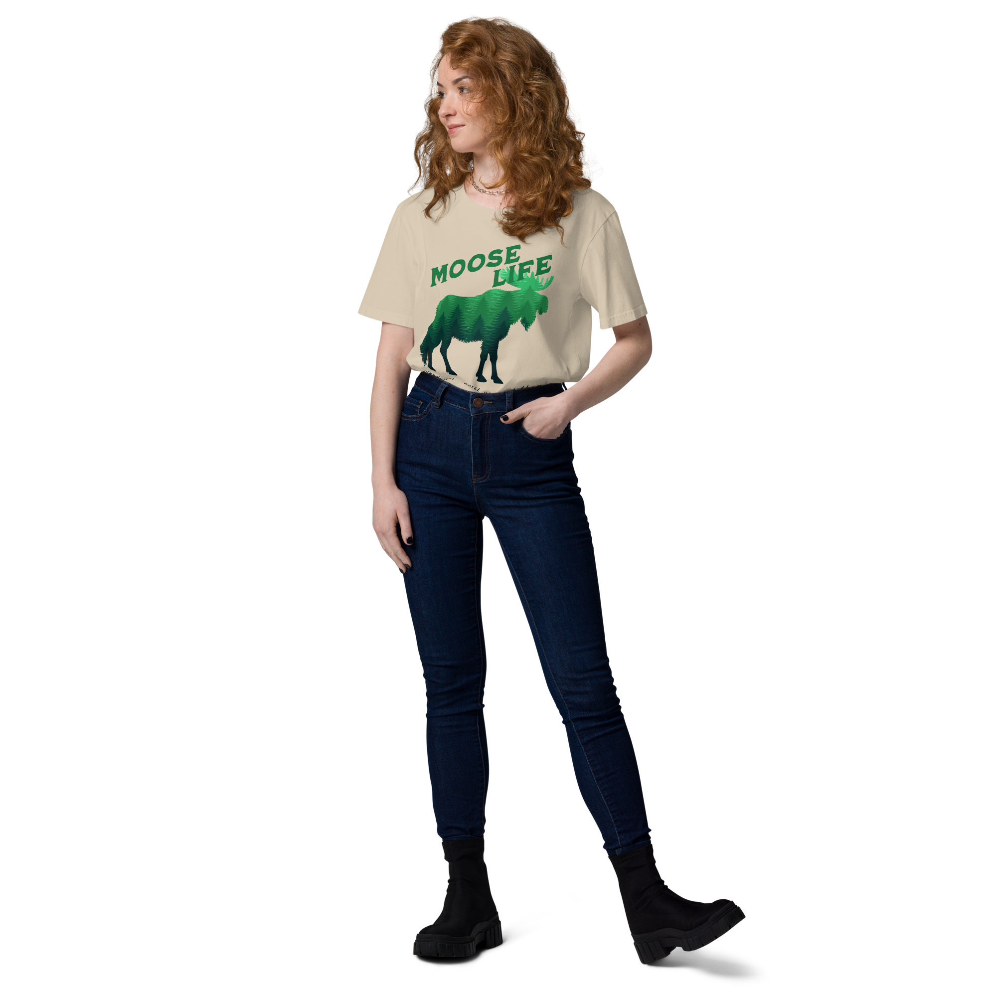 Crafted from 100% organic ring-spun cotton, the unisex Moose Life Cotton T-Shirt is an essential addition to any wardrobe. This high-quality, incredibly comfortable, and eco-friendly tee is built to last. It boasts set-in sleeves, reinforced double-needle stitching on the hems, and a ribbed collar that maintains its shape, ensuring lasting wear. The self-fabric neck tape provides additional comfort and structure, making it a dependable go-to for daily use. It’s ideal for leisurely weekends, outdoor excursions, or everyday urban exploration.