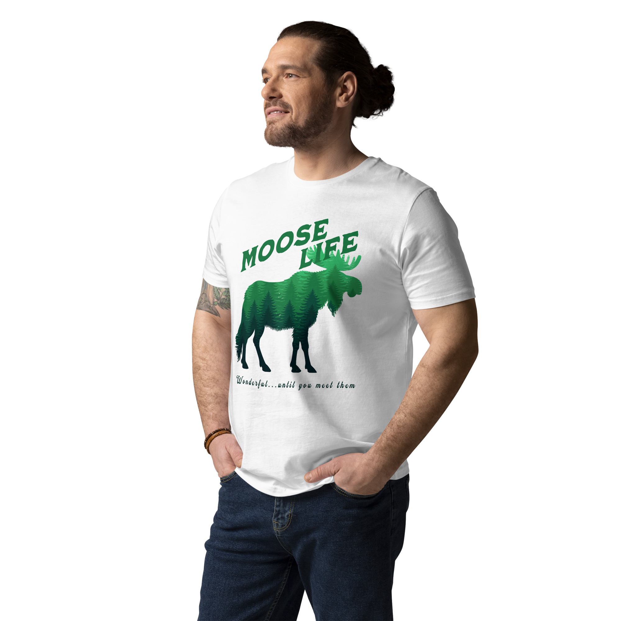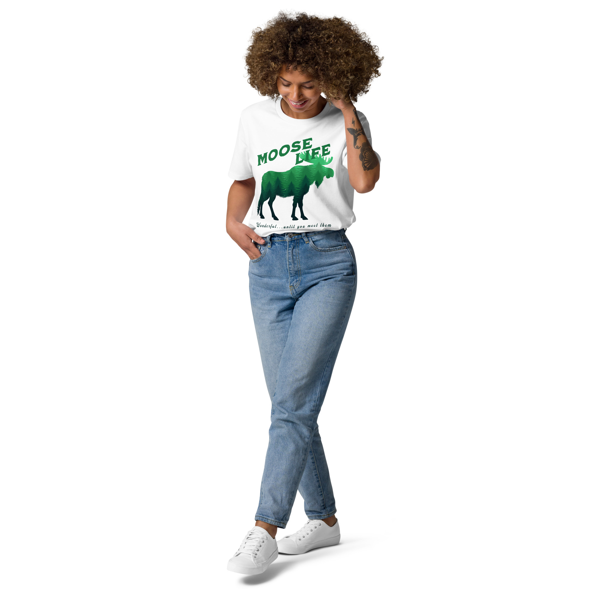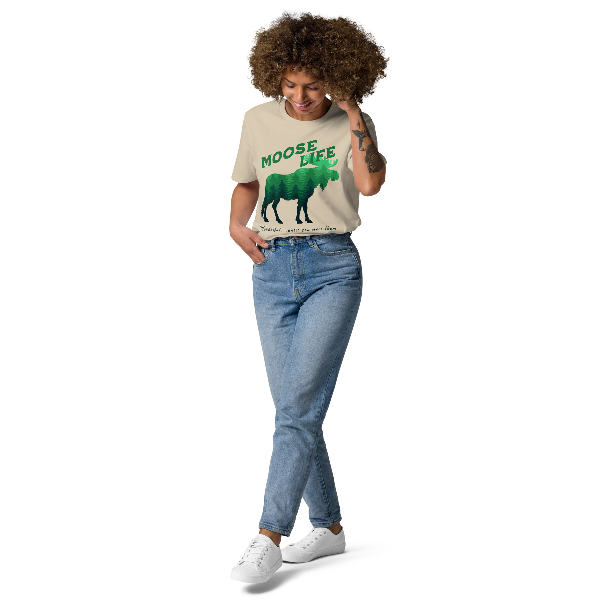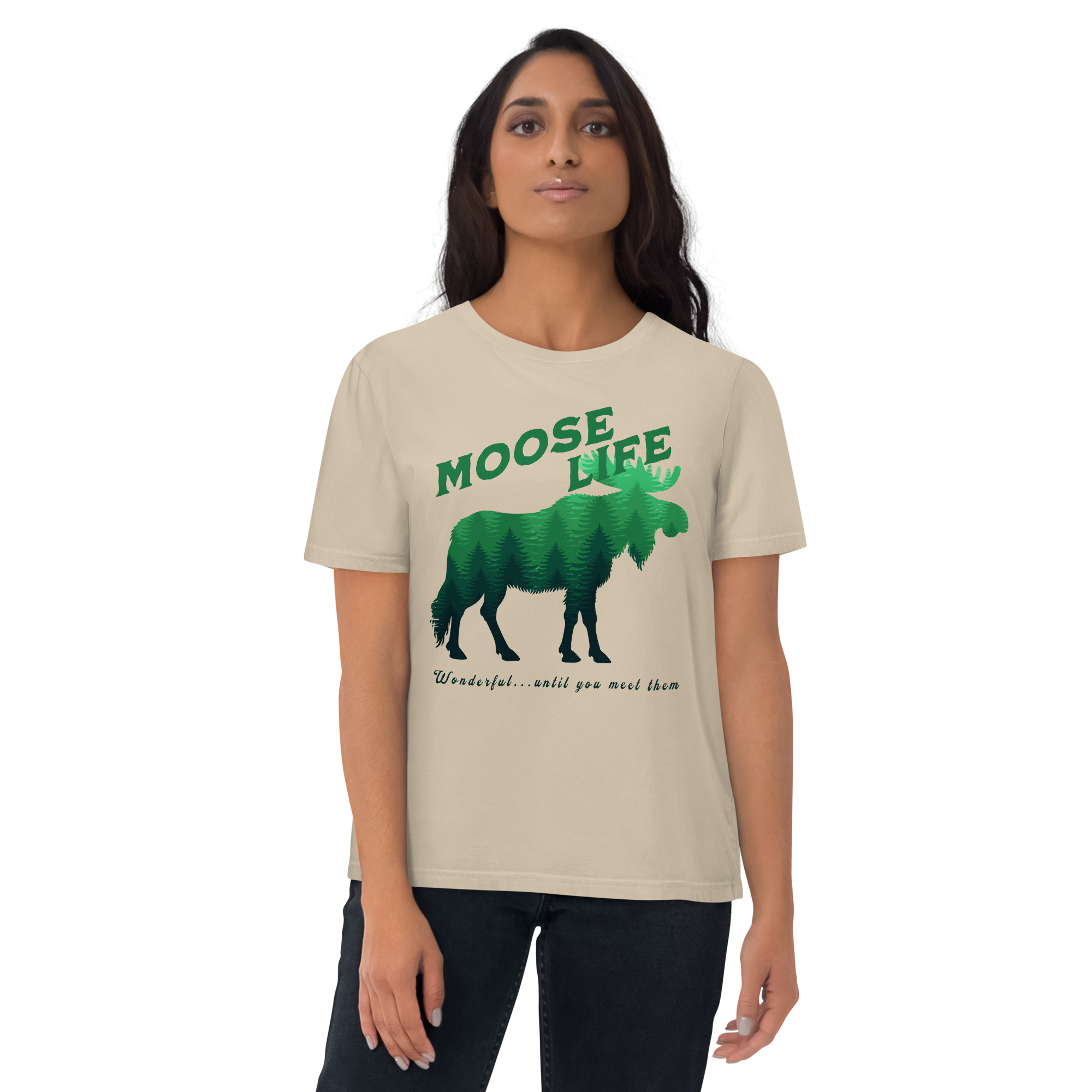 Crafted from 100% organic ring-spun cotton, the unisex Moose Life Cotton T-Shirt is an essential addition to any wardrobe. This high-quality, incredibly comfortable, and eco-friendly tee is built to last. It boasts set-in sleeves, reinforced double-needle stitching on the hems, and a ribbed collar that maintains its shape, ensuring lasting wear. The self-fabric neck tape provides additional comfort and structure, making it a dependable go-to for daily use. It’s ideal for leisurely weekends, outdoor excursions, or everyday urban exploration.