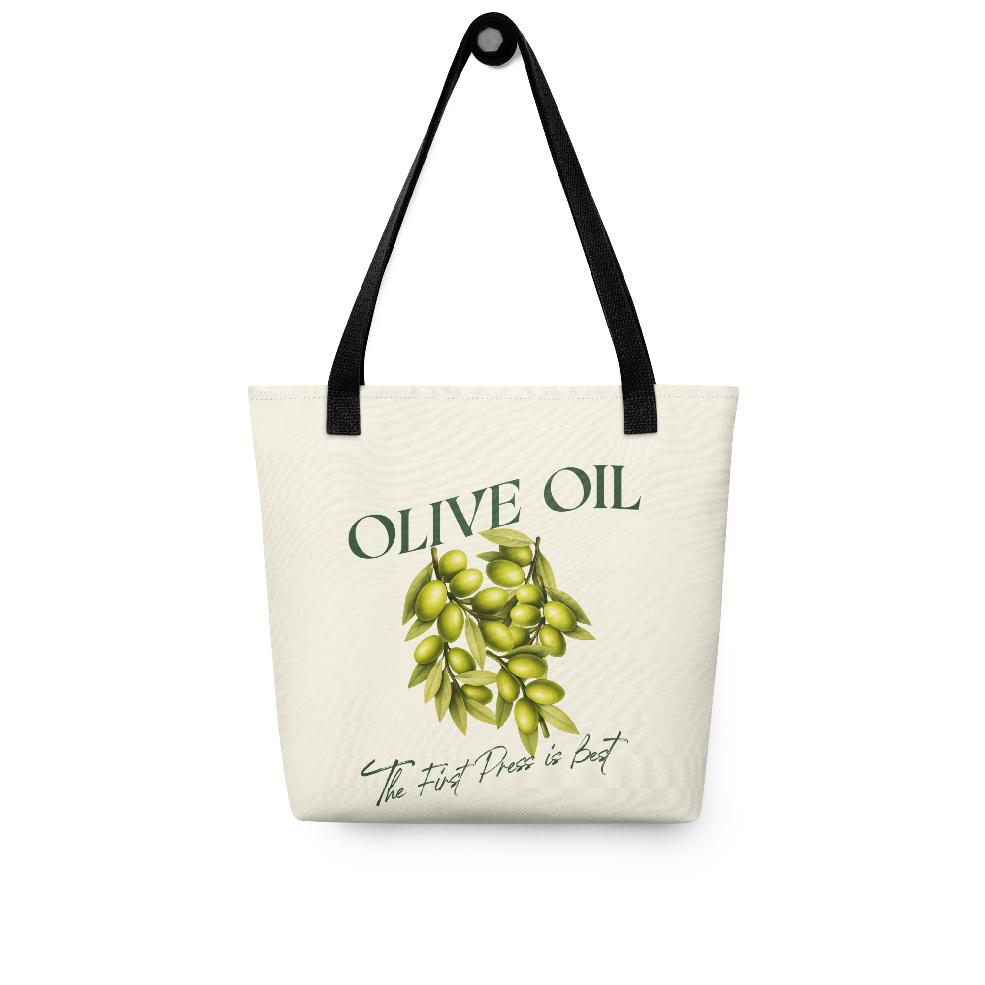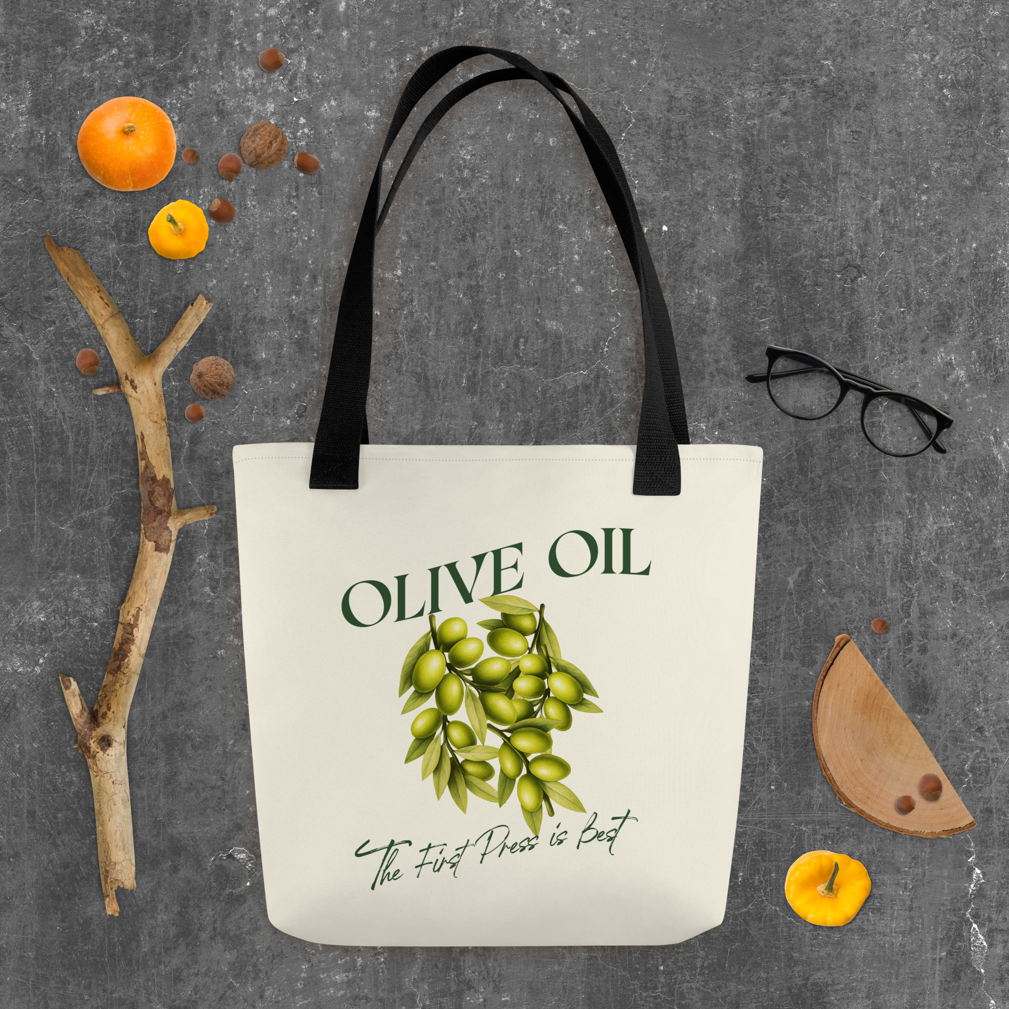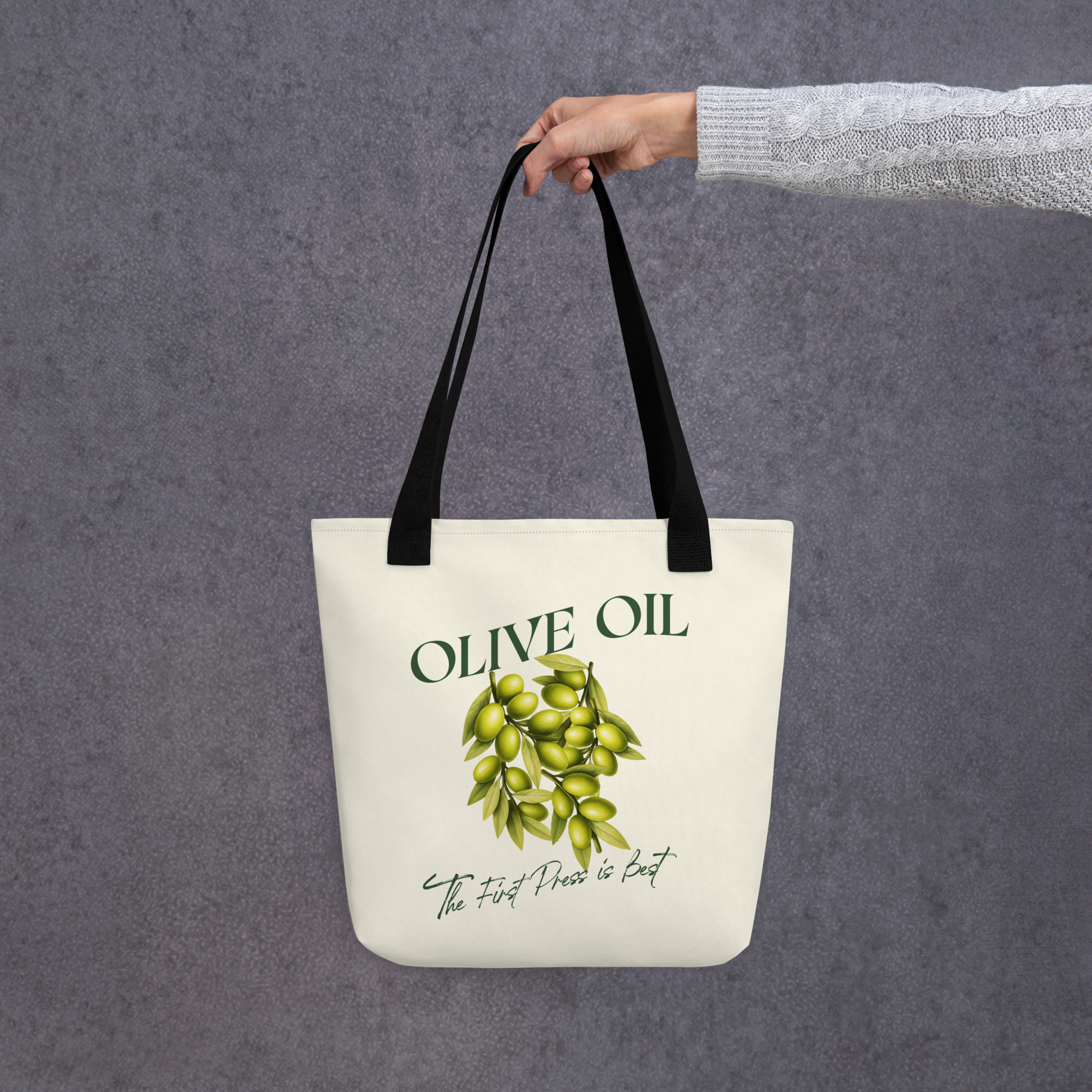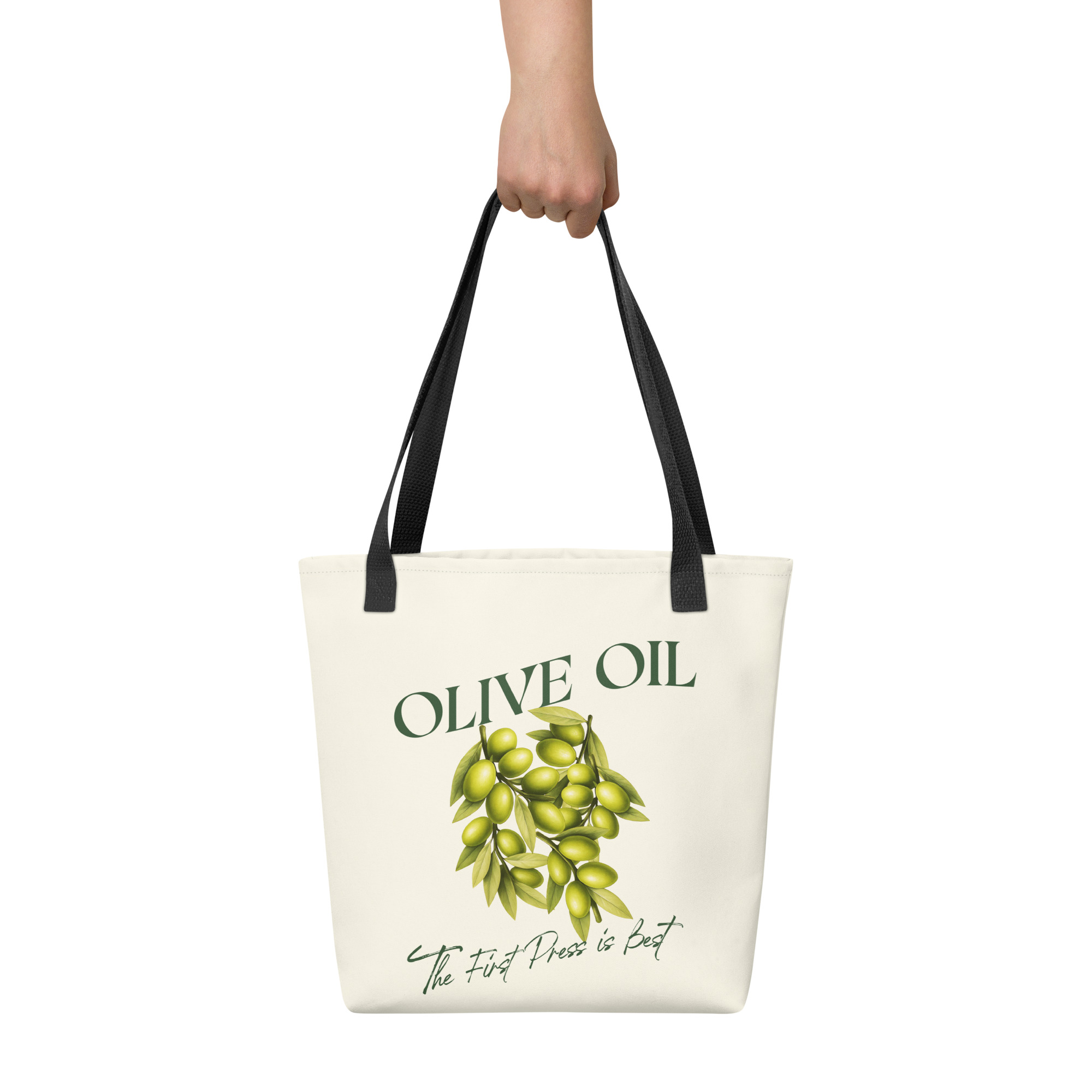 This spacious and trendy Olive Oil Tote Bag is perfect for carrying all your essentials. Crafted from durable 100% polyester, this 15″ × 15″ (39 × 39 cm) tote boasts a generous capacity of 2.6 US gallons (10 liters). It can comfortably hold up to 44 lbs (20 kg), making it ideal for groceries, cookbooks, market finds, or your everyday items, all while keeping you looking stylish and put-together.