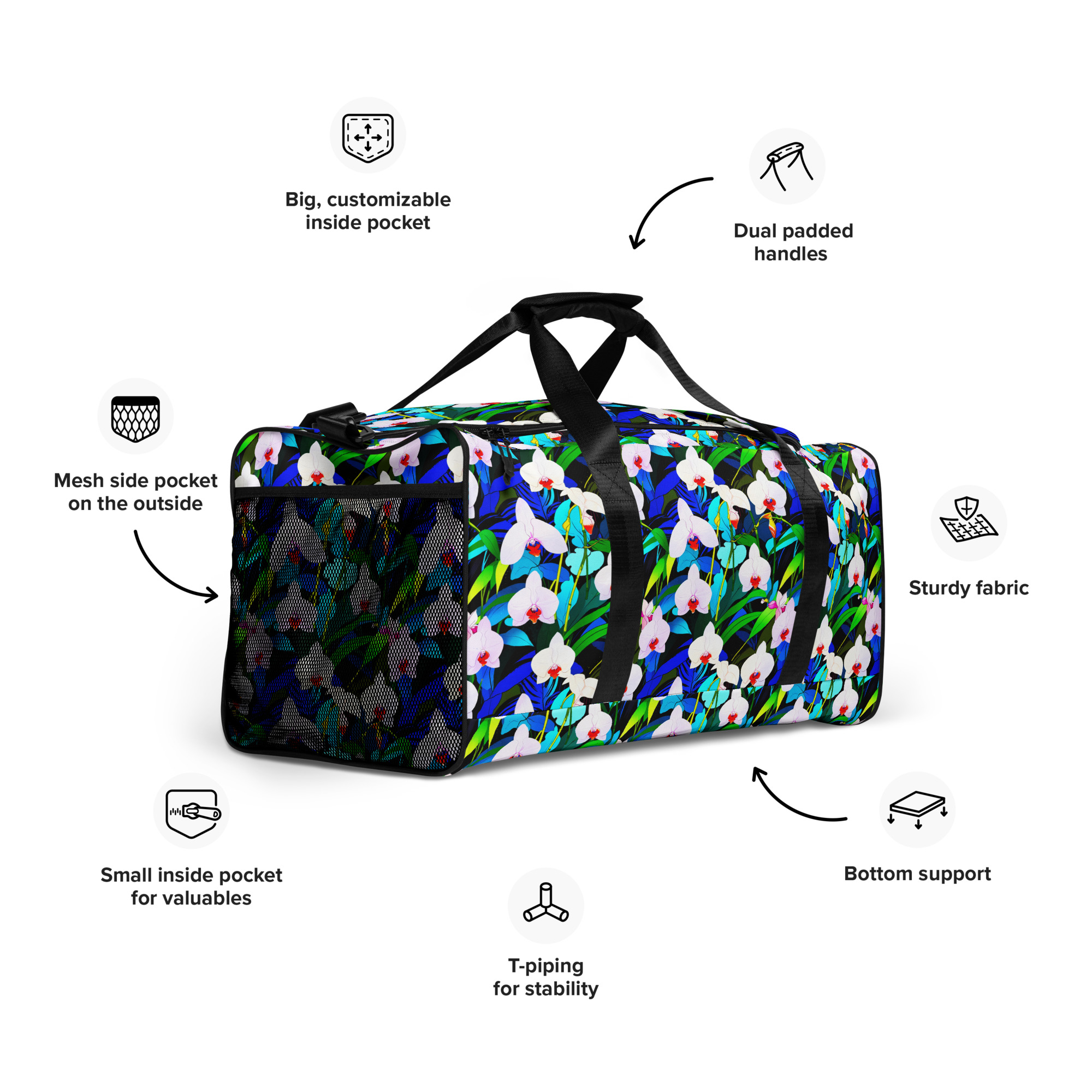 Ready to elevate your fitness game? Add some flair to your workouts with this Orchids Gym Bag. Crafted from durable, water-resistant 100% polyester fabric, it perfectly blends style with practicality. Plus, it has pockets!