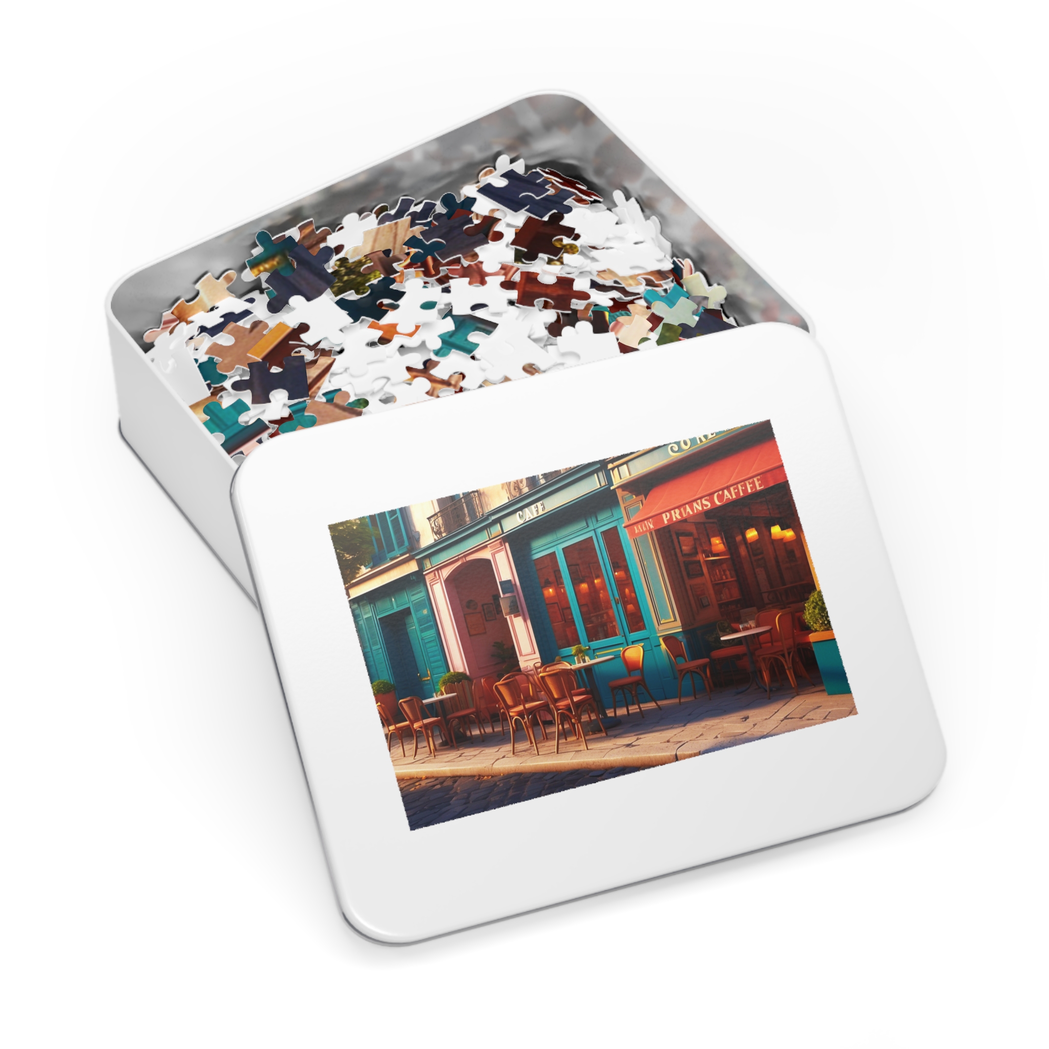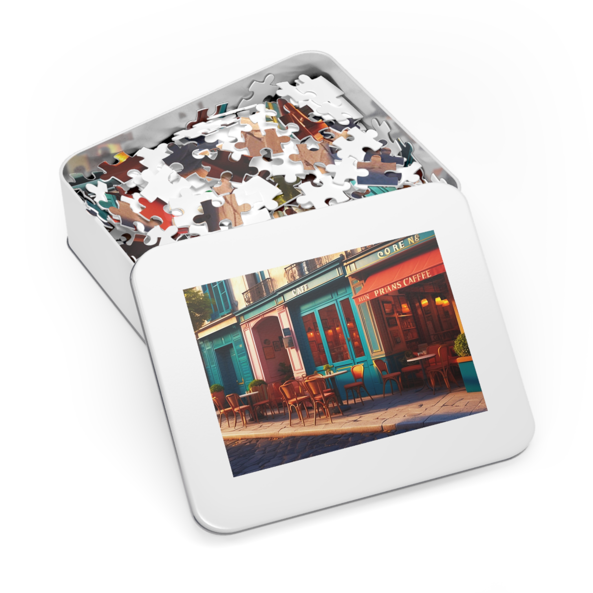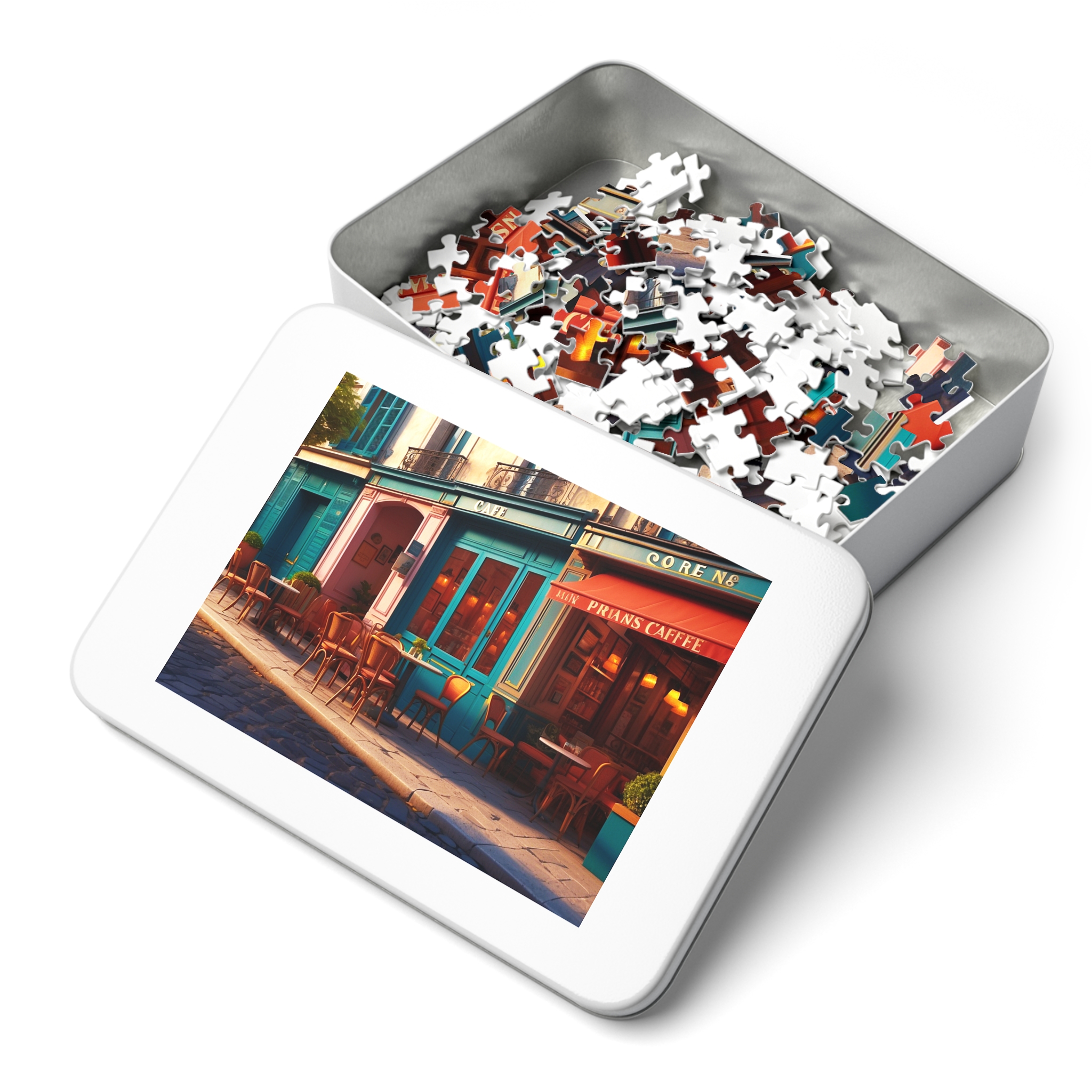 As you put together the picturesque scenes of Saint Paul, evoking the spirit of cafe culture in Paris, prepare to be enchanted by the vivid colors and detailed imagery. Every piece of this puzzle has a story to tell and invites you to explore the magical beauty of Paris, from quiet sidewalk cafes to lively boulevards decorated with colorful umbrellas.A personalized jigsaw puzzle will deliver wholesome downtime for friends and family. Made with high-quality chipboard pieces, our puzzles come in 30, 110, 252, 500, and 1000-piece variations. The 252 and 500-piece puzzles are ideal for children from the age of 9, while the 1000-piece puzzle is great for adults. Ships in gift-ready metal boxes for a show-stopping presentation.