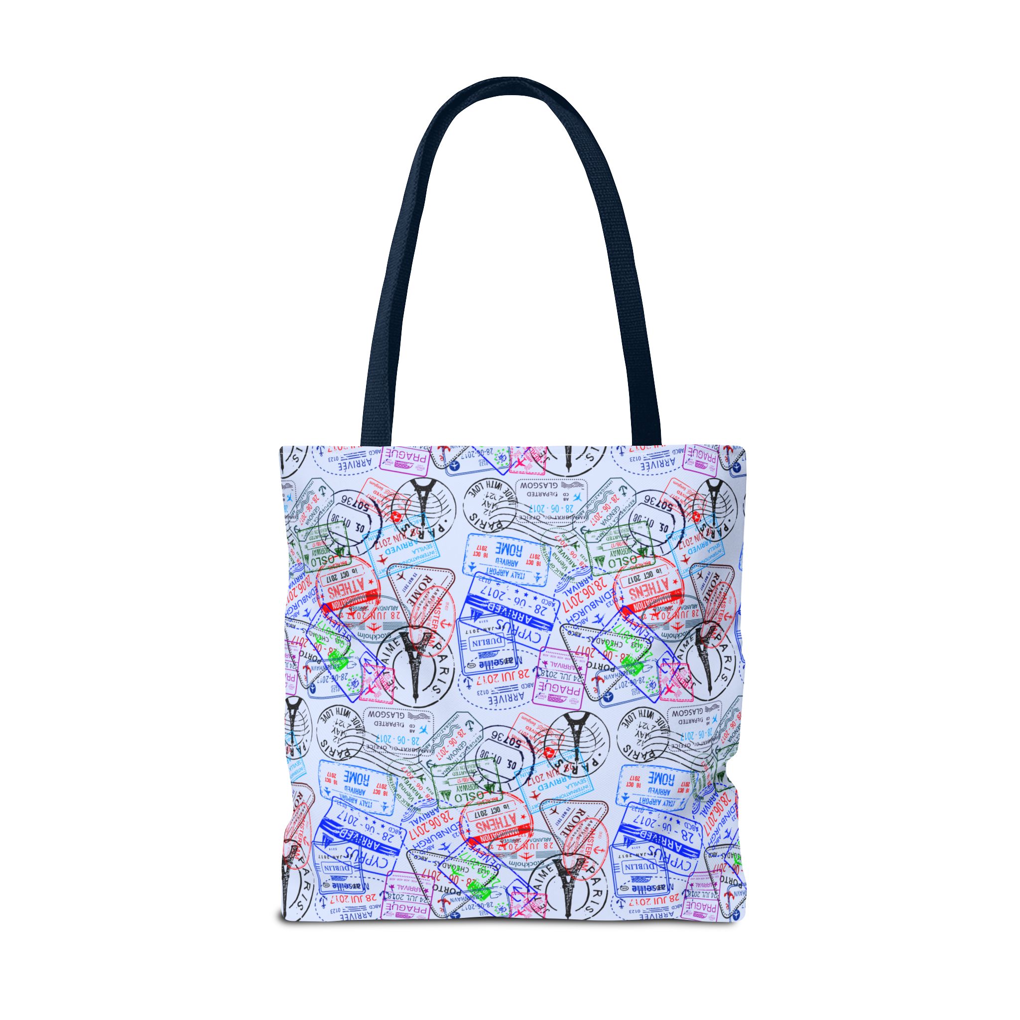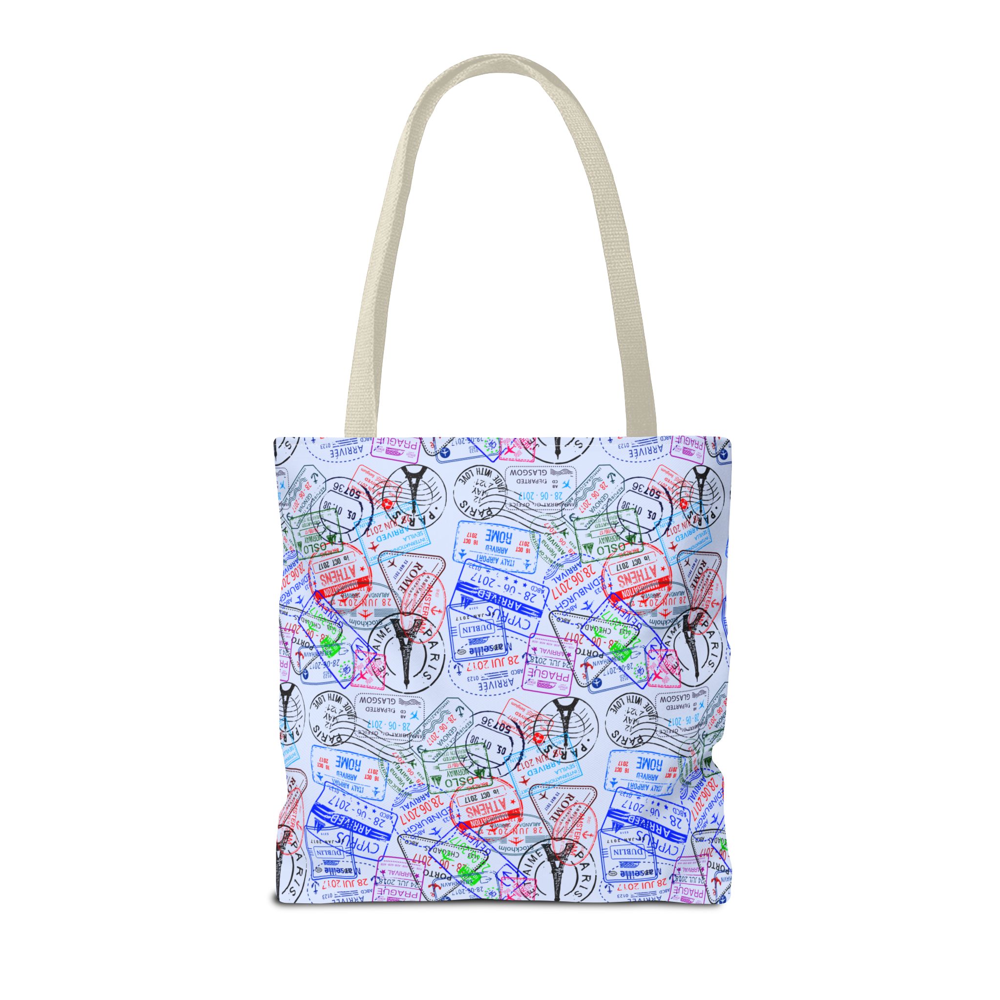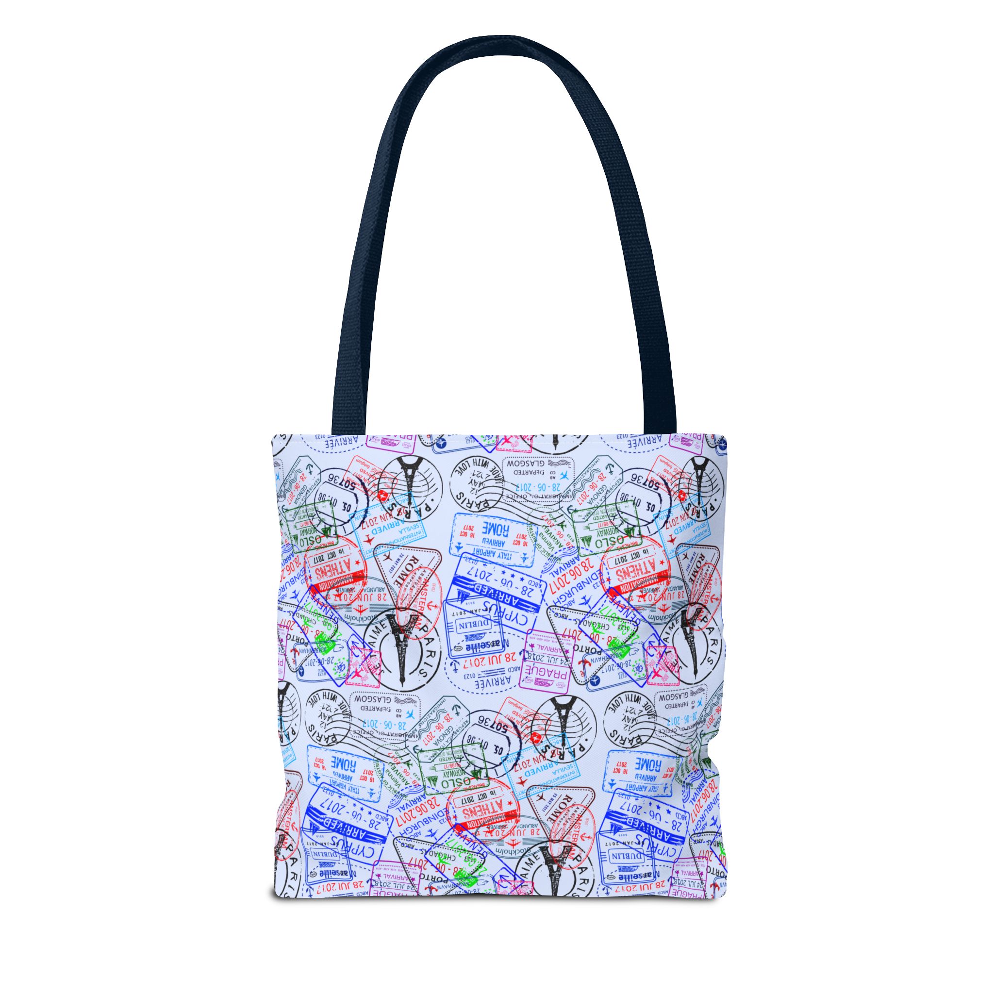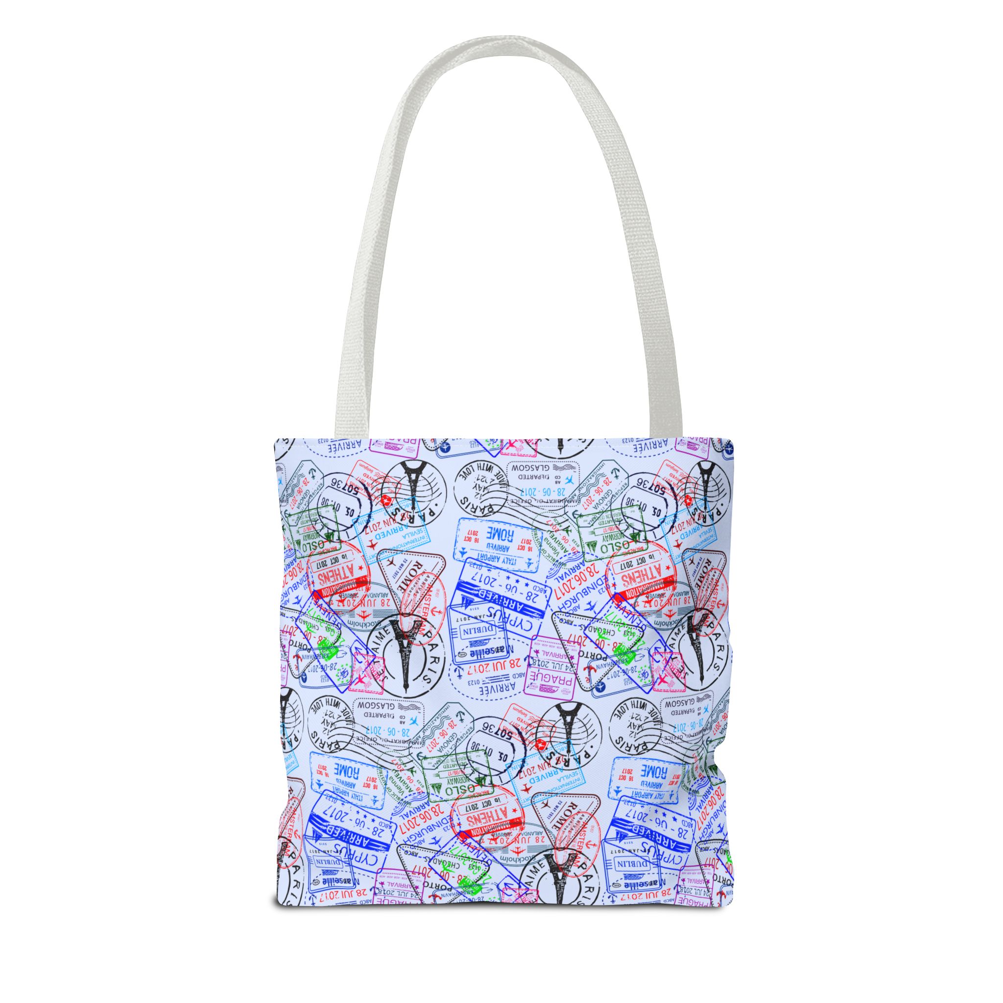 With a focus on comfort and versatility, the resilient handles are offered in numerous color choices to align with your personal style. Utilizing all-over dye sublimation ensures vibrant, permanent visuals that are impervious to fading. Passport Control Tote Bag is designed for both urban commuting and weekend escapes, this tote infuses your daily endeavors with a distinct travel-inspired aesthetic.