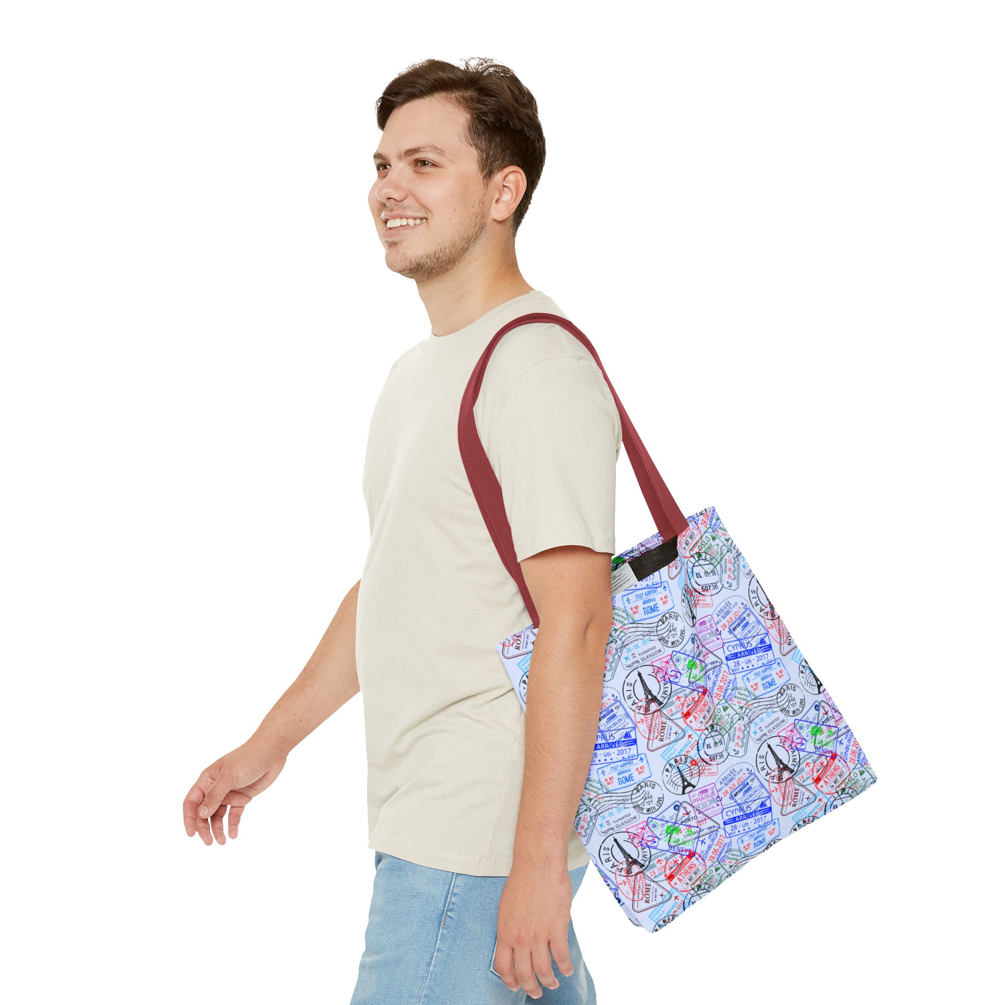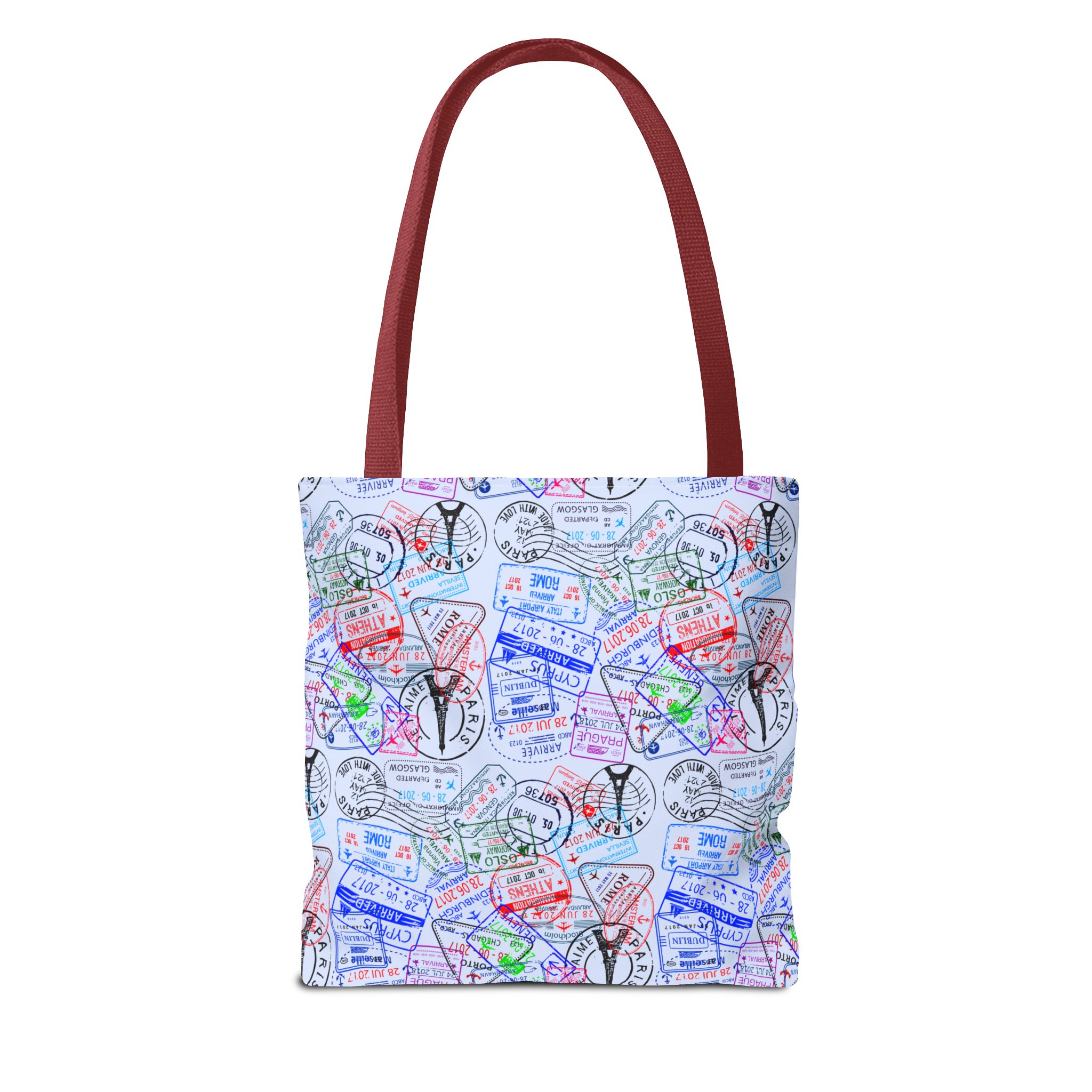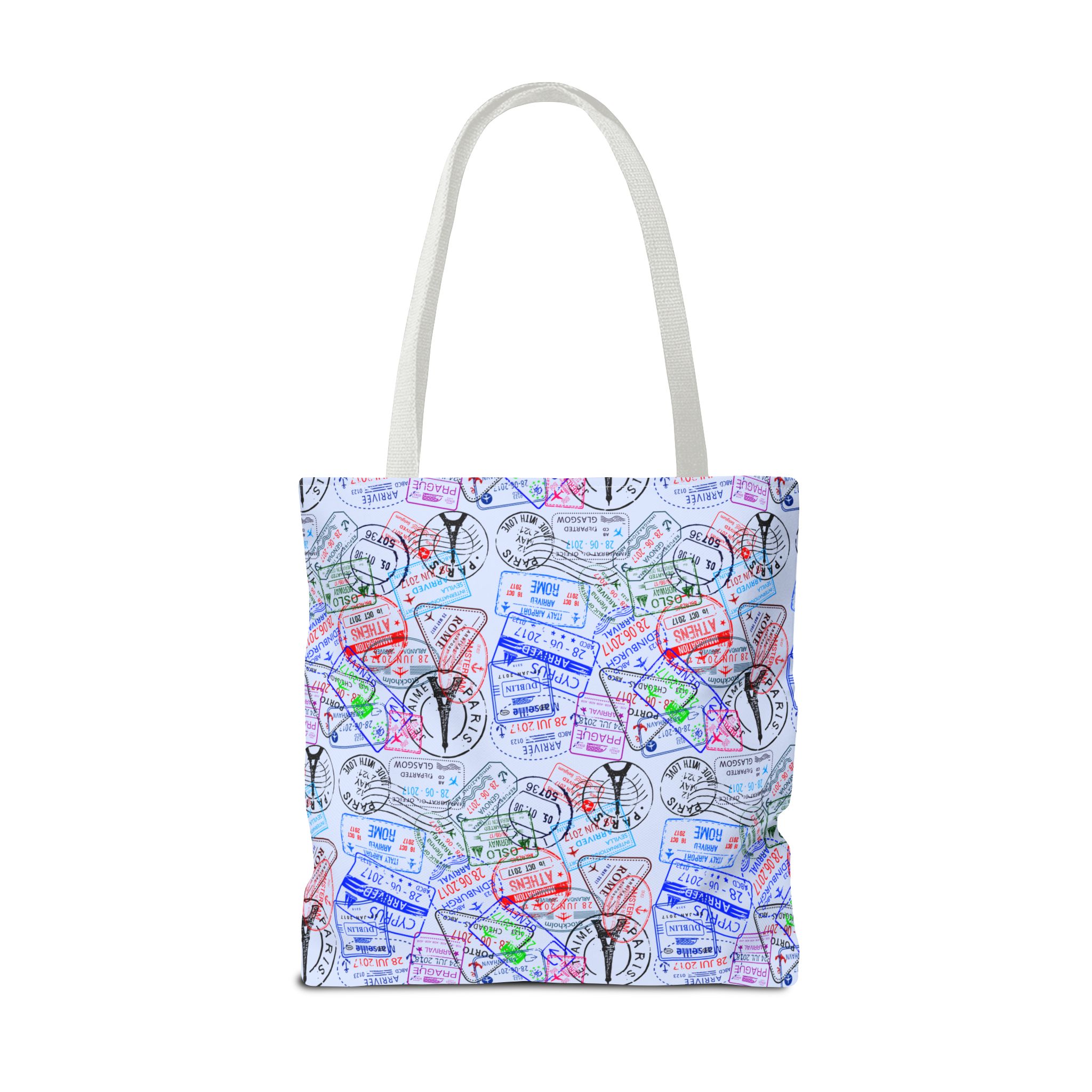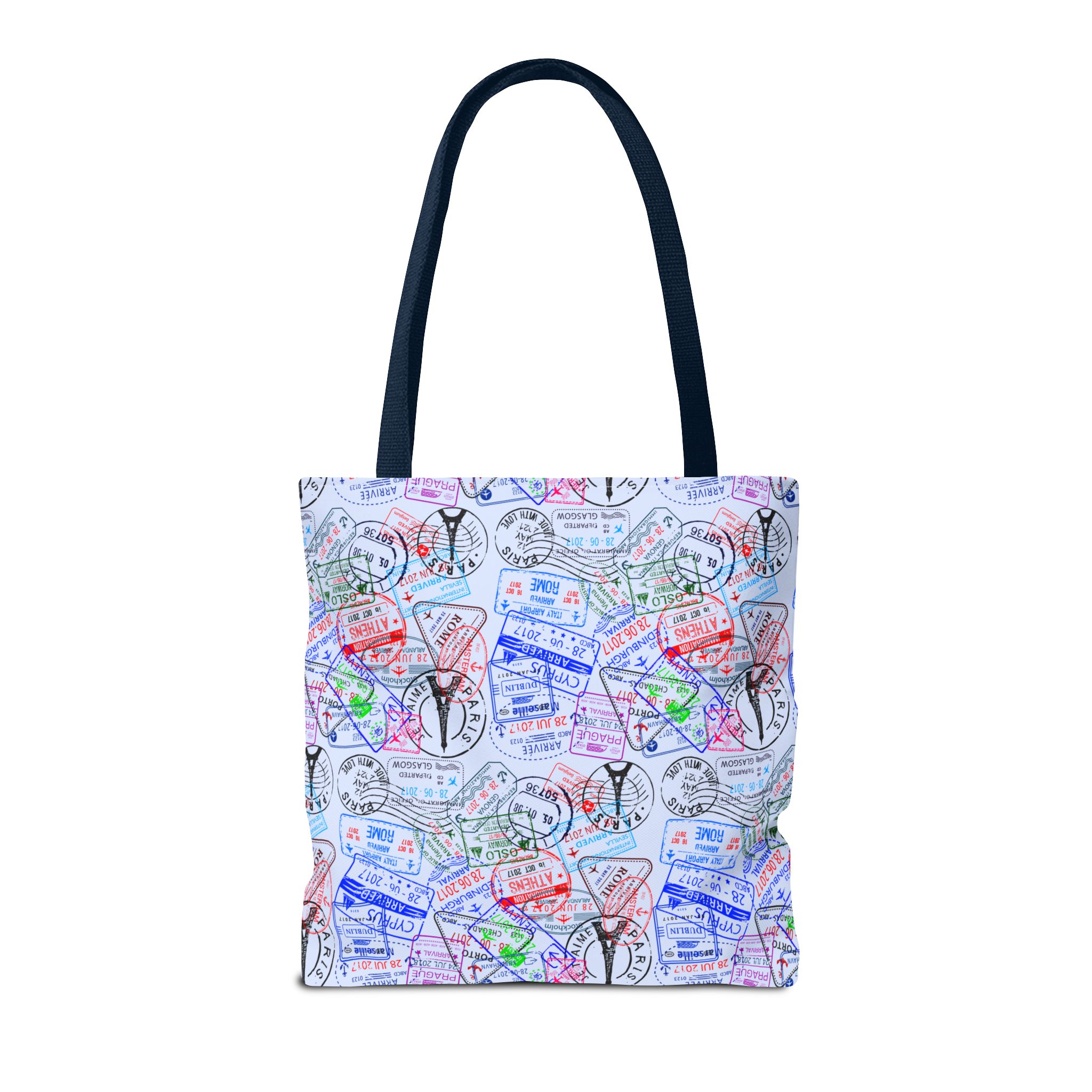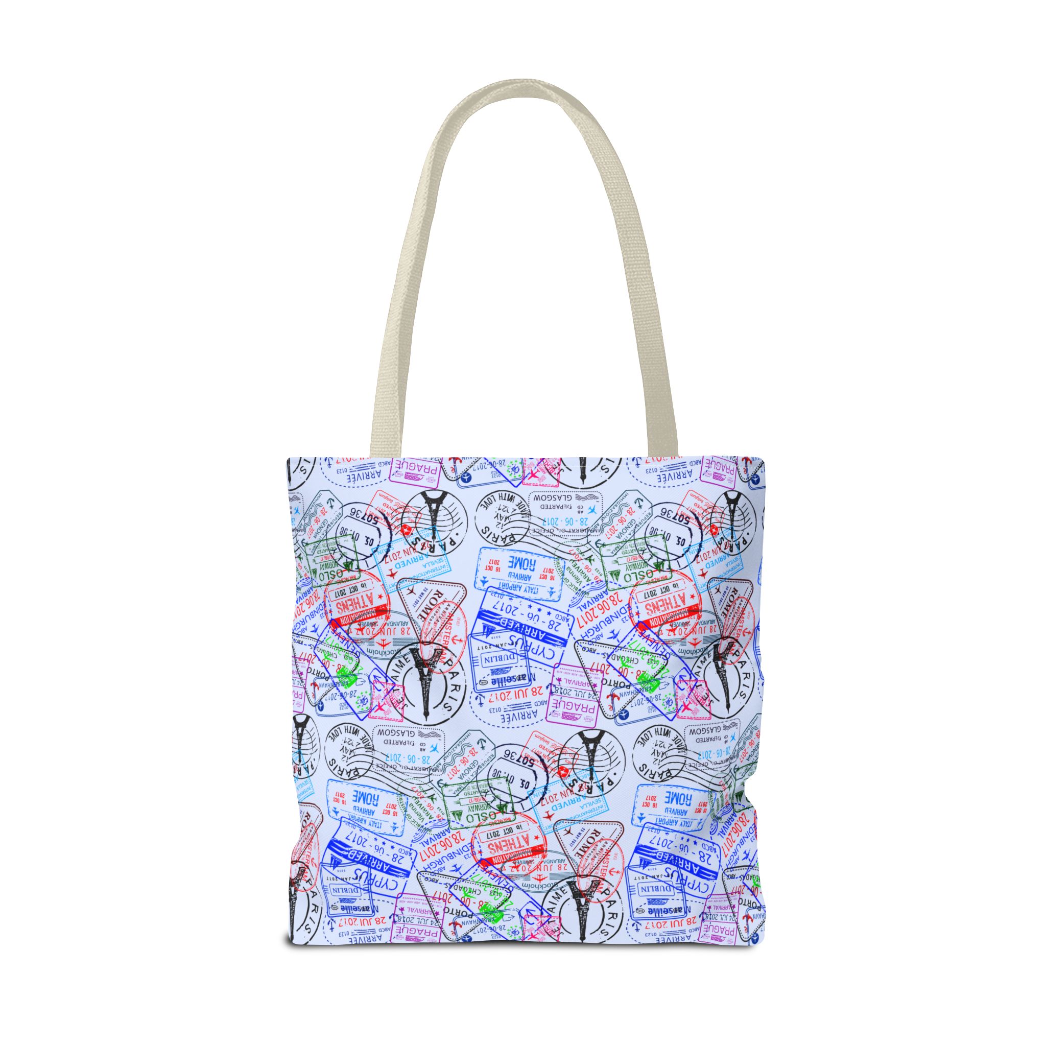 With a focus on comfort and versatility, the resilient handles are offered in numerous color choices to align with your personal style. Utilizing all-over dye sublimation ensures vibrant, permanent visuals that are impervious to fading. Passport Control Tote Bag is designed for both urban commuting and weekend escapes, this tote infuses your daily endeavors with a distinct travel-inspired aesthetic.