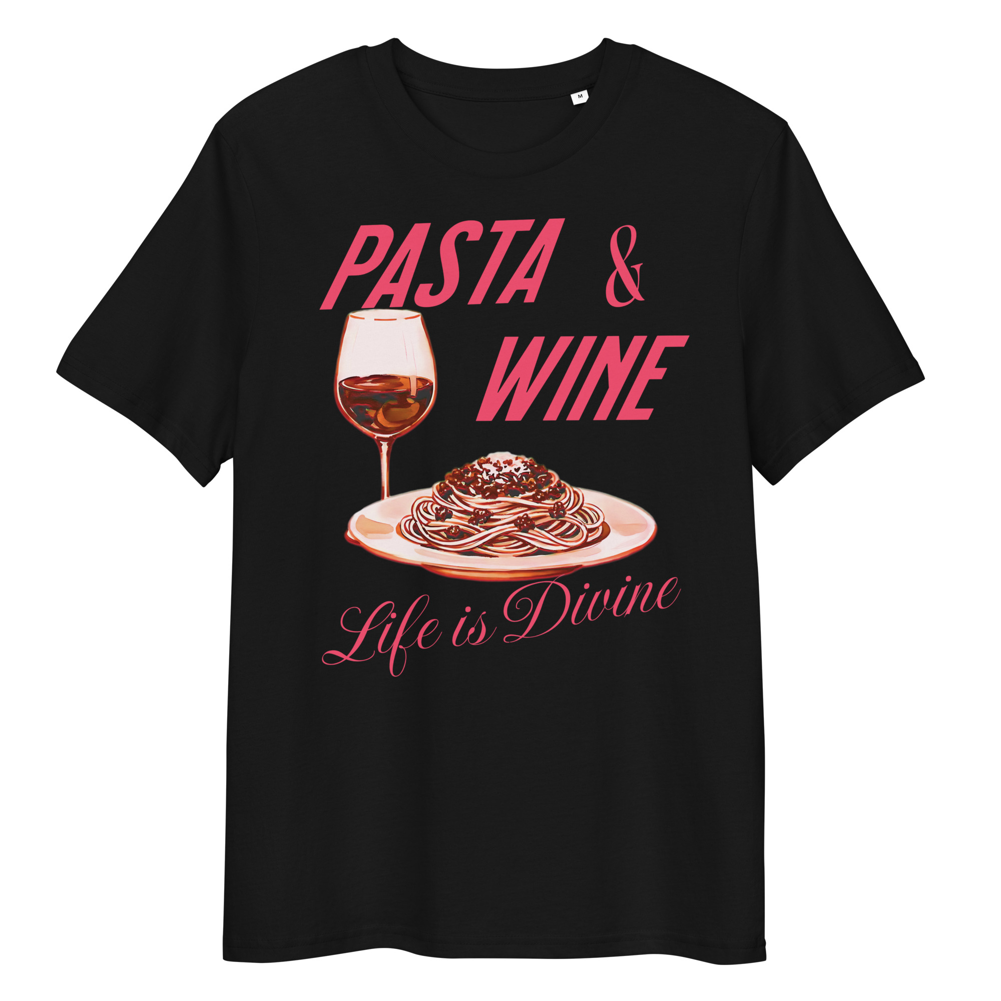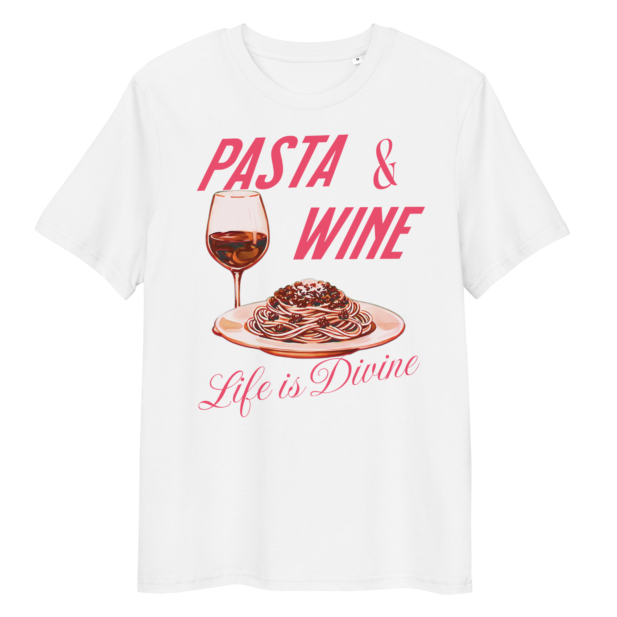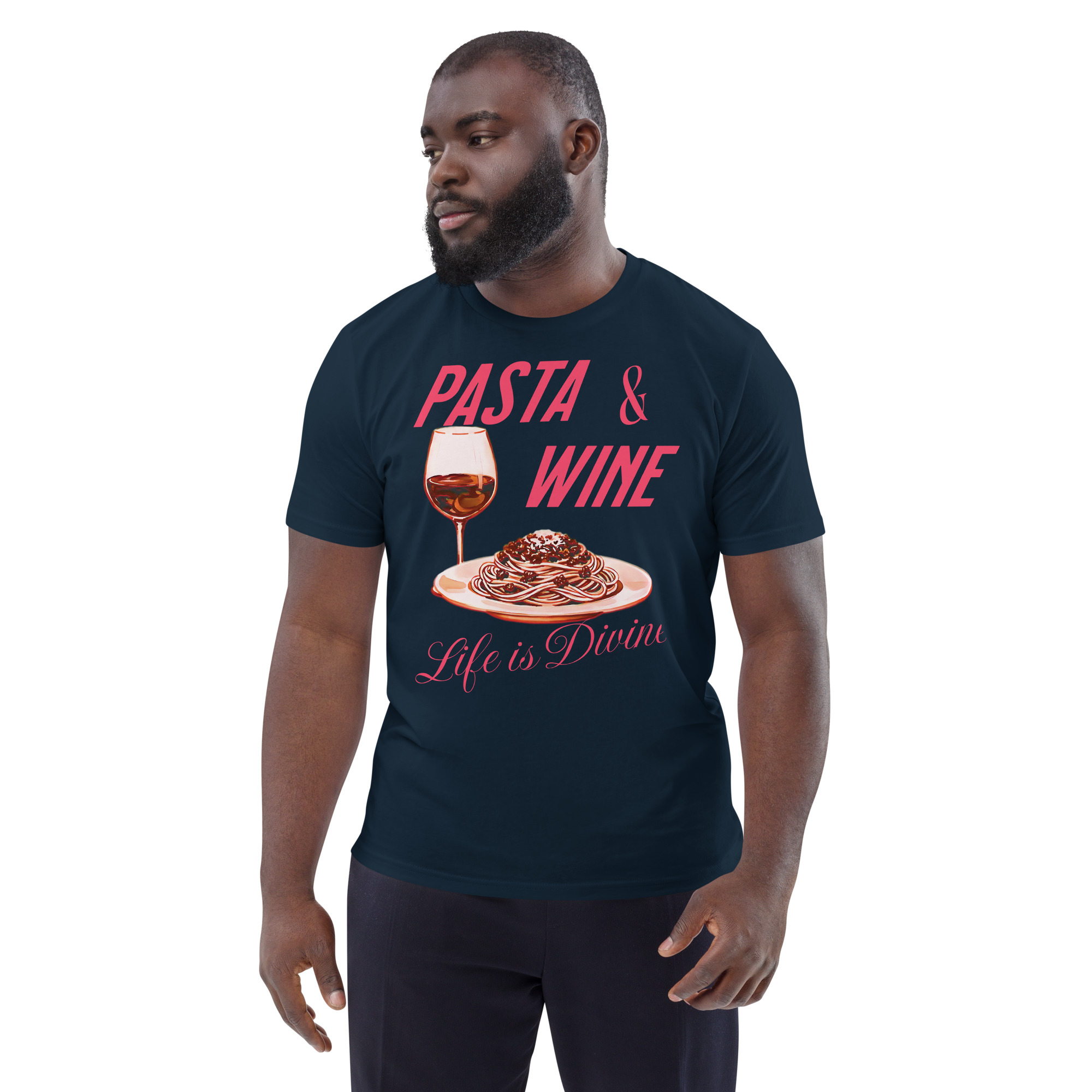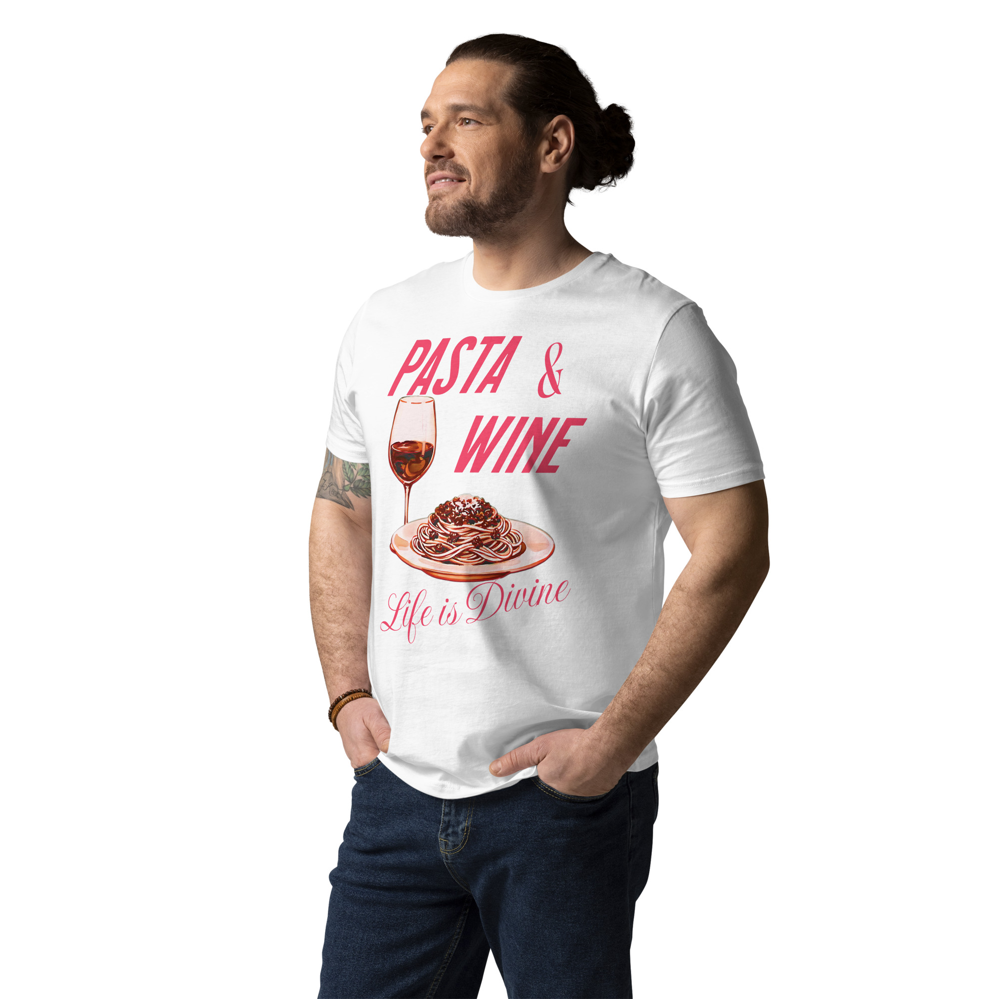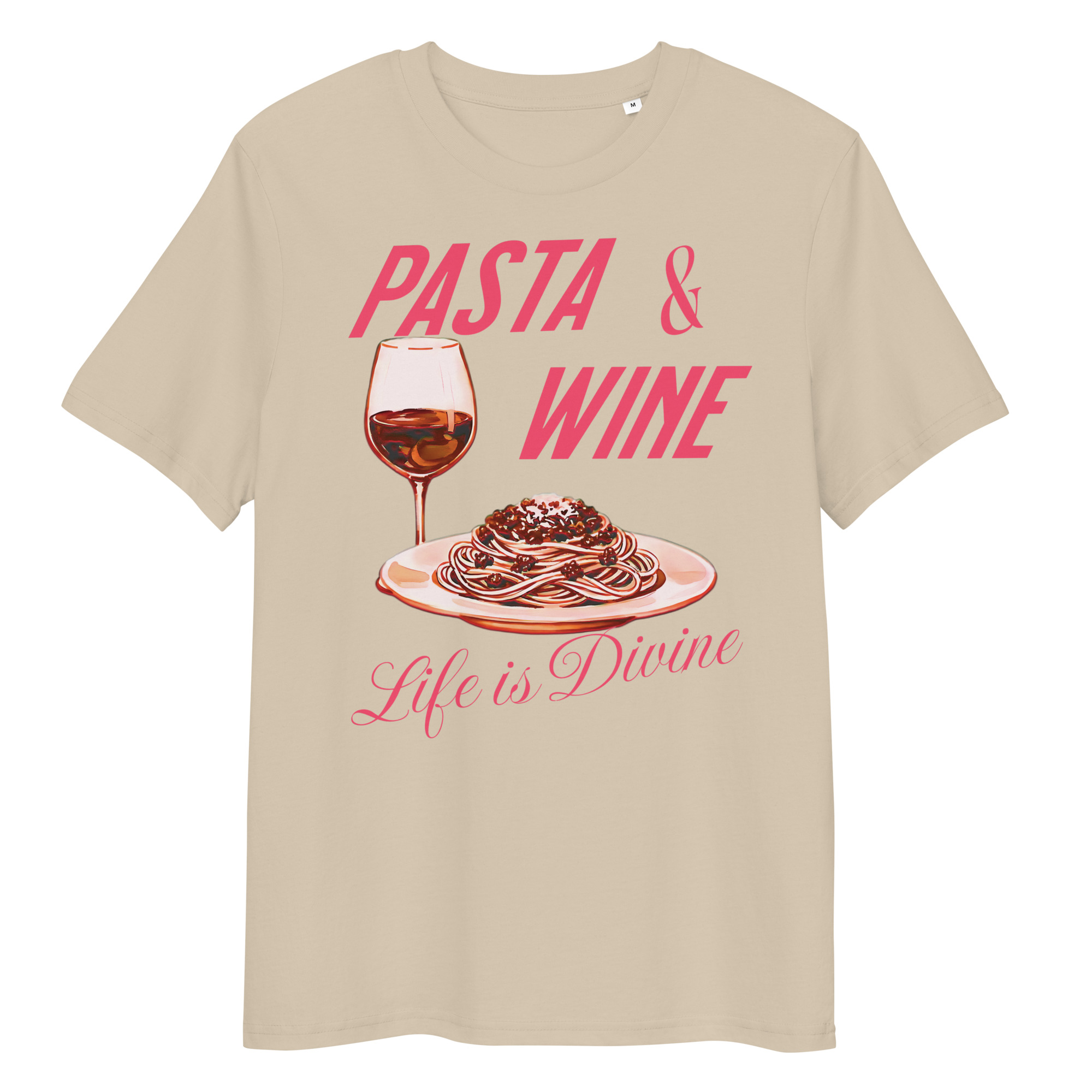 Crafted from 100% organic ring-spun cotton, this unisex “Pasta Wine” Cotton T-Shirt is an absolute essential. It’s high-quality, incredibly comfortable, and, best of all, eco-friendly. Featuring a medium fit and soft single jersey fabric (5.3 oz./yd²), it provides breathable comfort and retains its shape wash after wash. Thoughtful design elements such as set-in sleeves, reinforced double-needle stitching, and a ribbed collar guarantee both durability and a refined look.