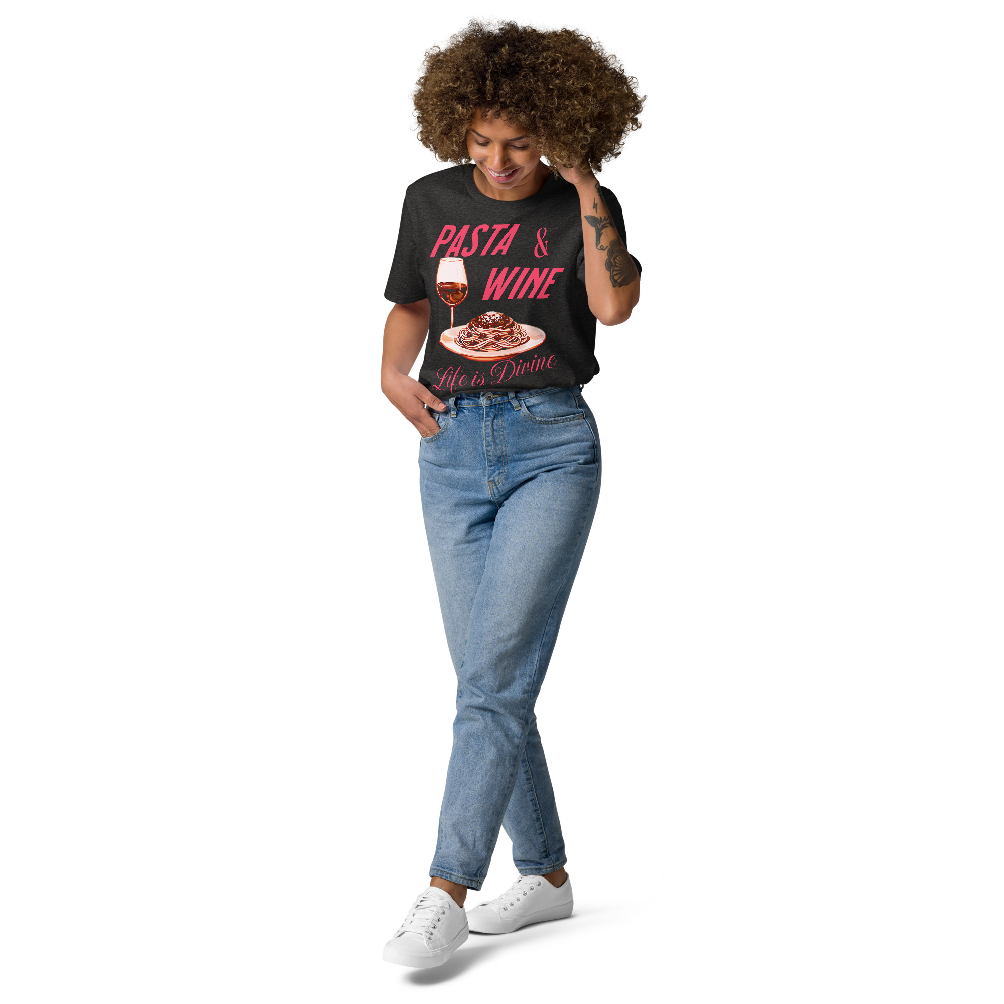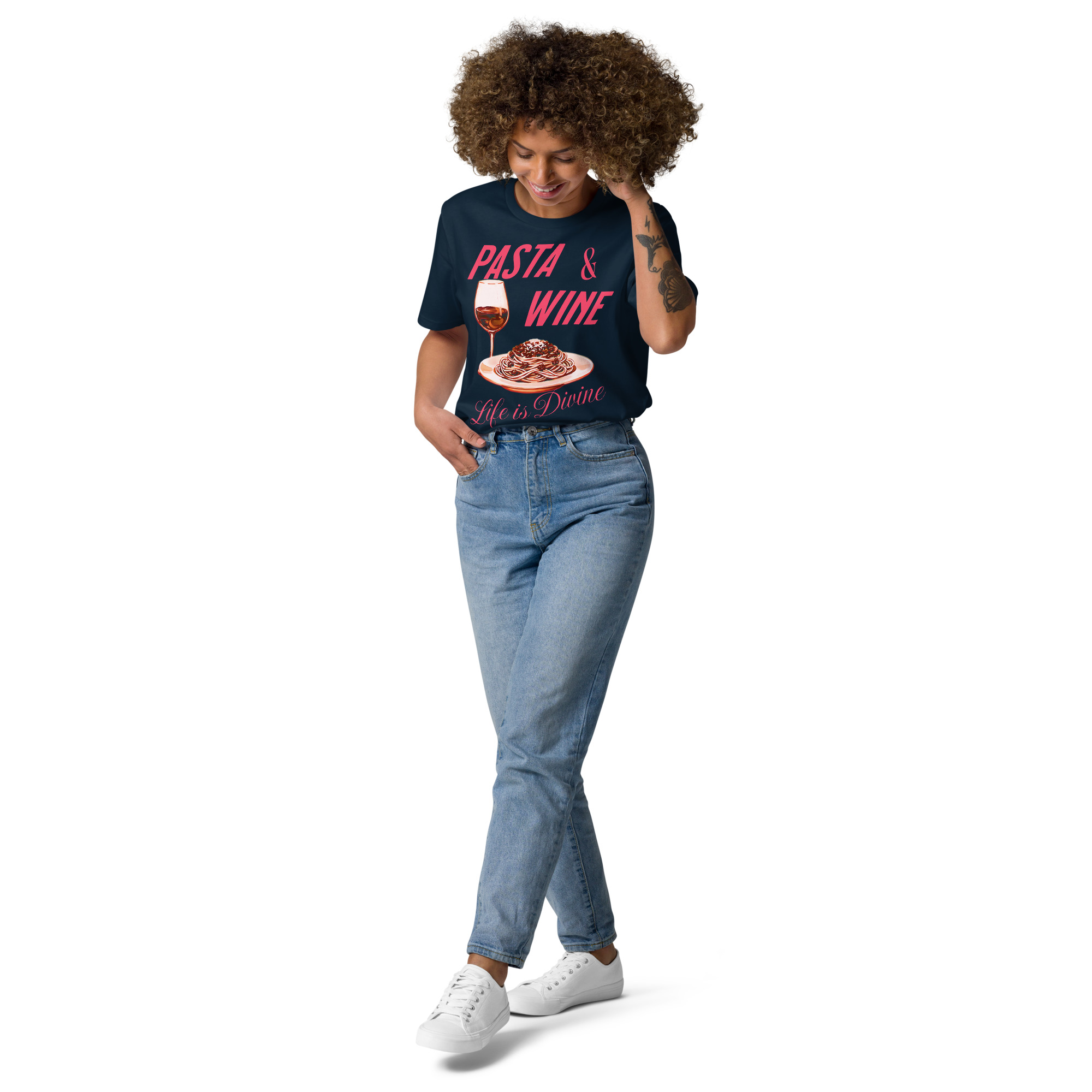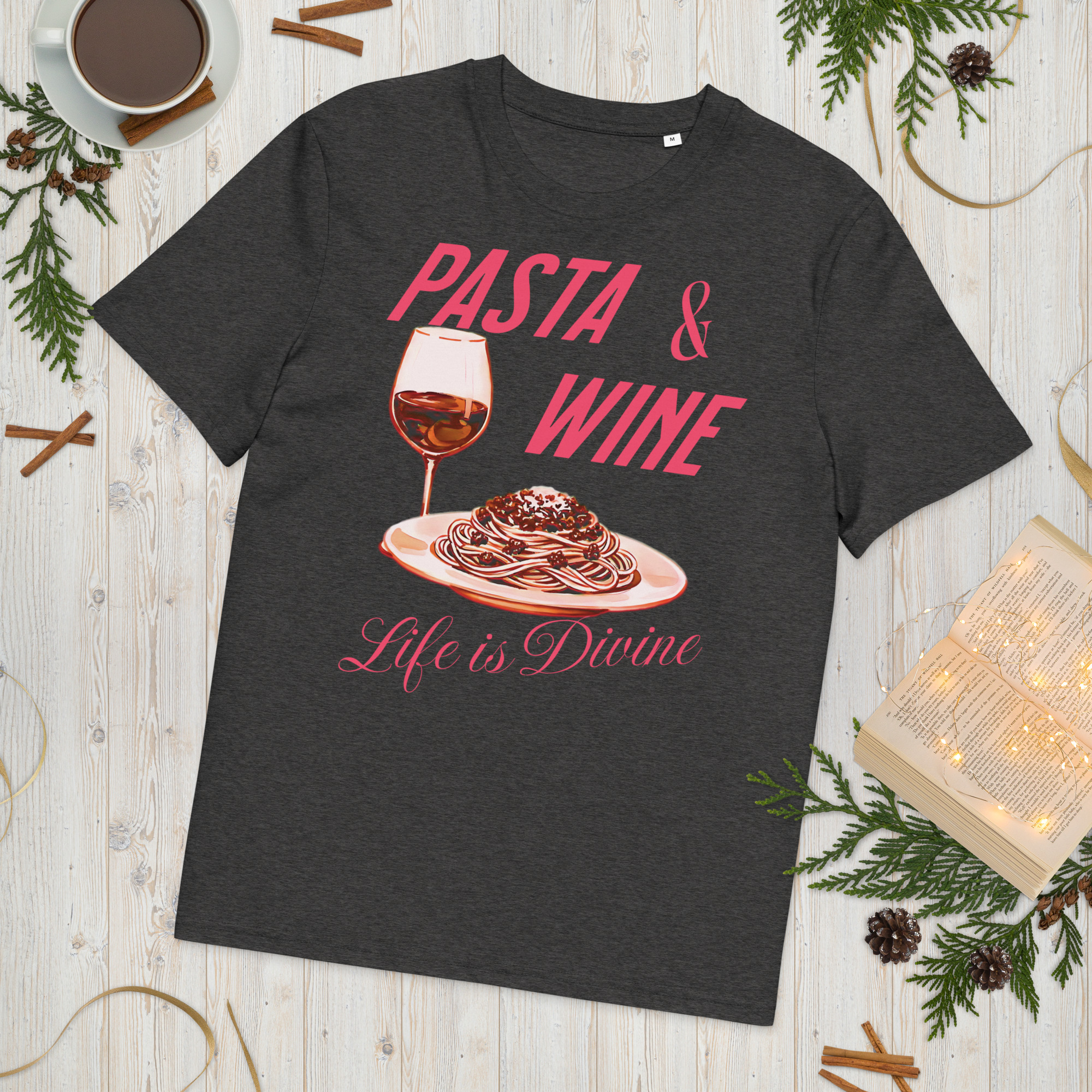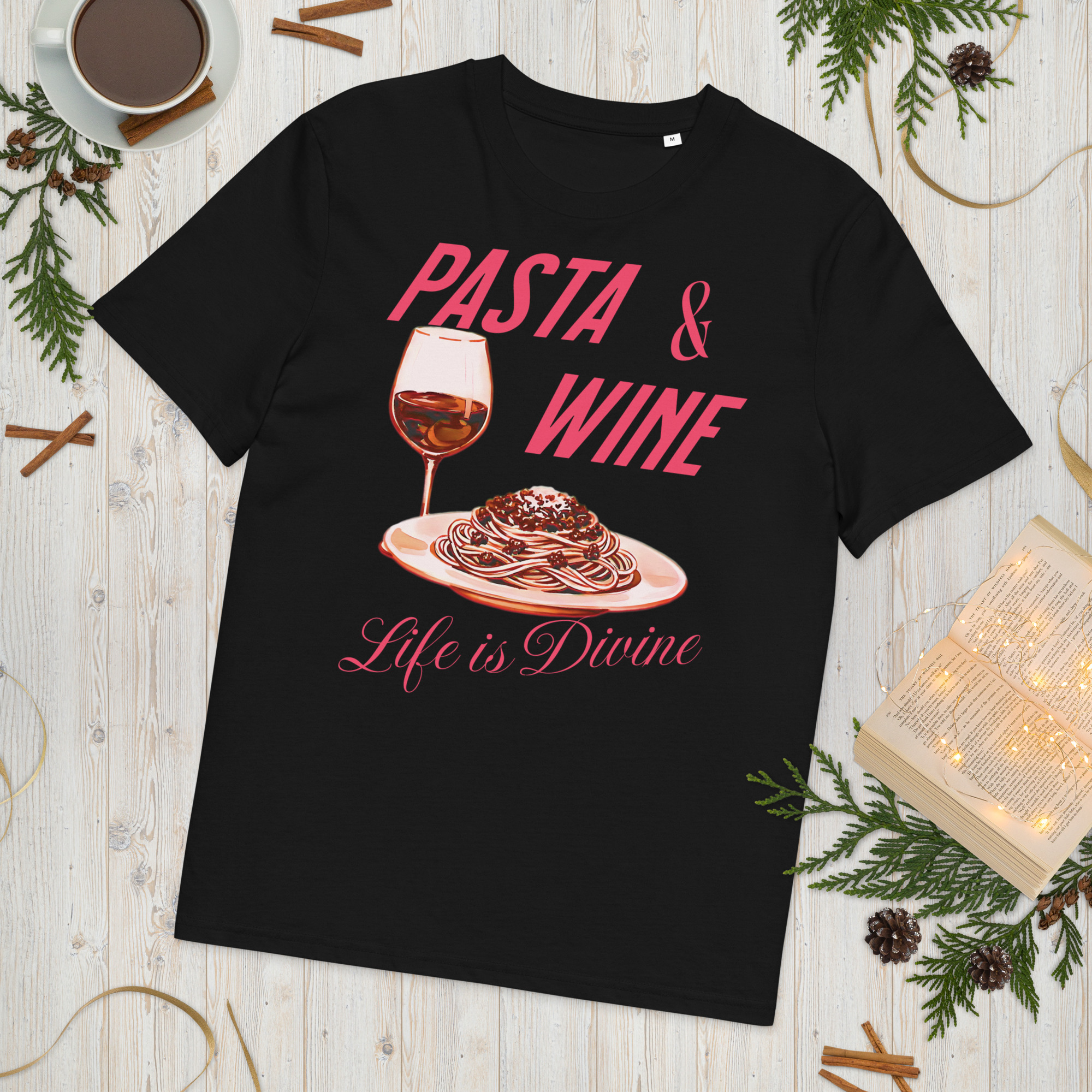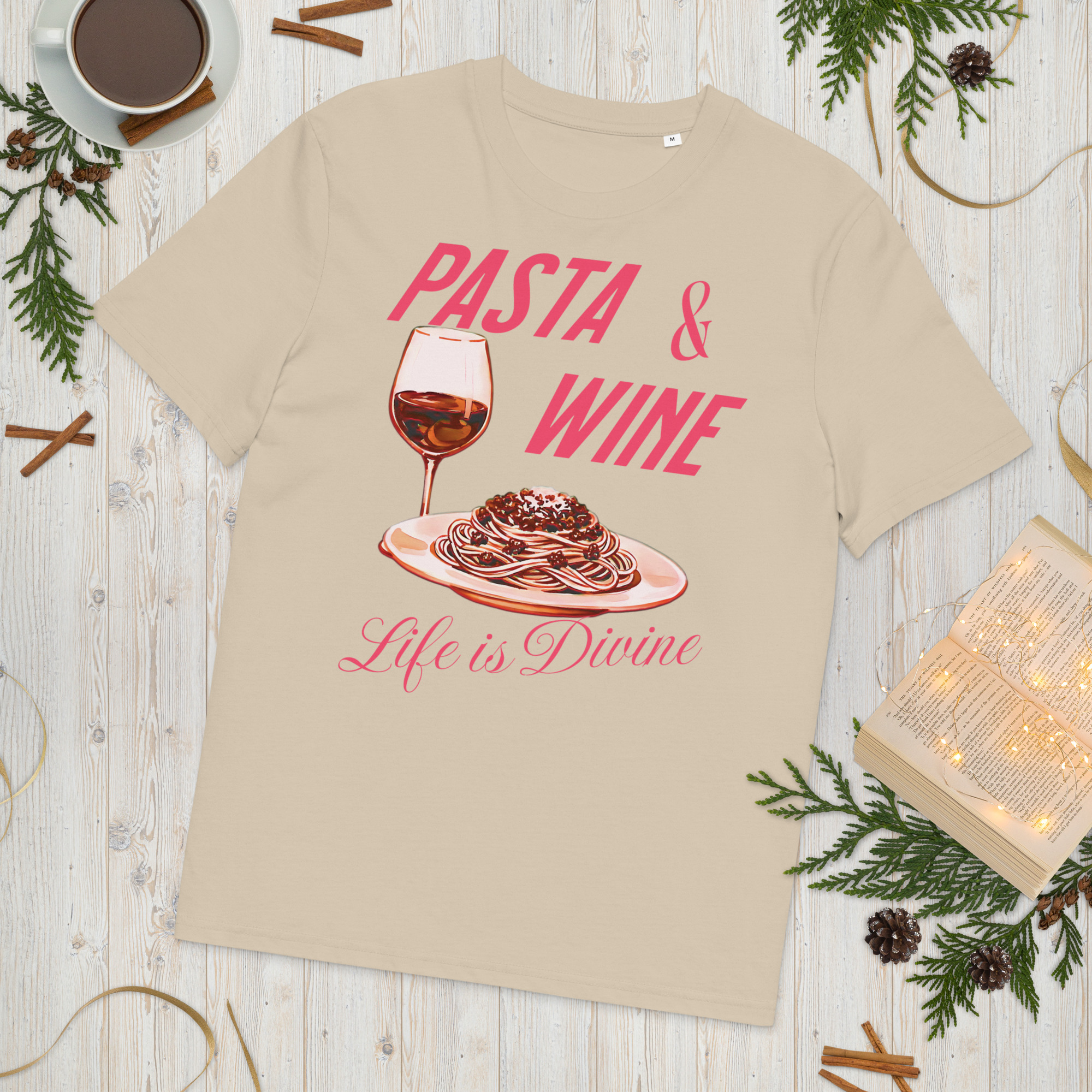 Crafted from 100% organic ring-spun cotton, this unisex “Pasta Wine” Cotton T-Shirt is an absolute essential. It’s high-quality, incredibly comfortable, and, best of all, eco-friendly. Featuring a medium fit and soft single jersey fabric (5.3 oz./yd²), it provides breathable comfort and retains its shape wash after wash. Thoughtful design elements such as set-in sleeves, reinforced double-needle stitching, and a ribbed collar guarantee both durability and a refined look.