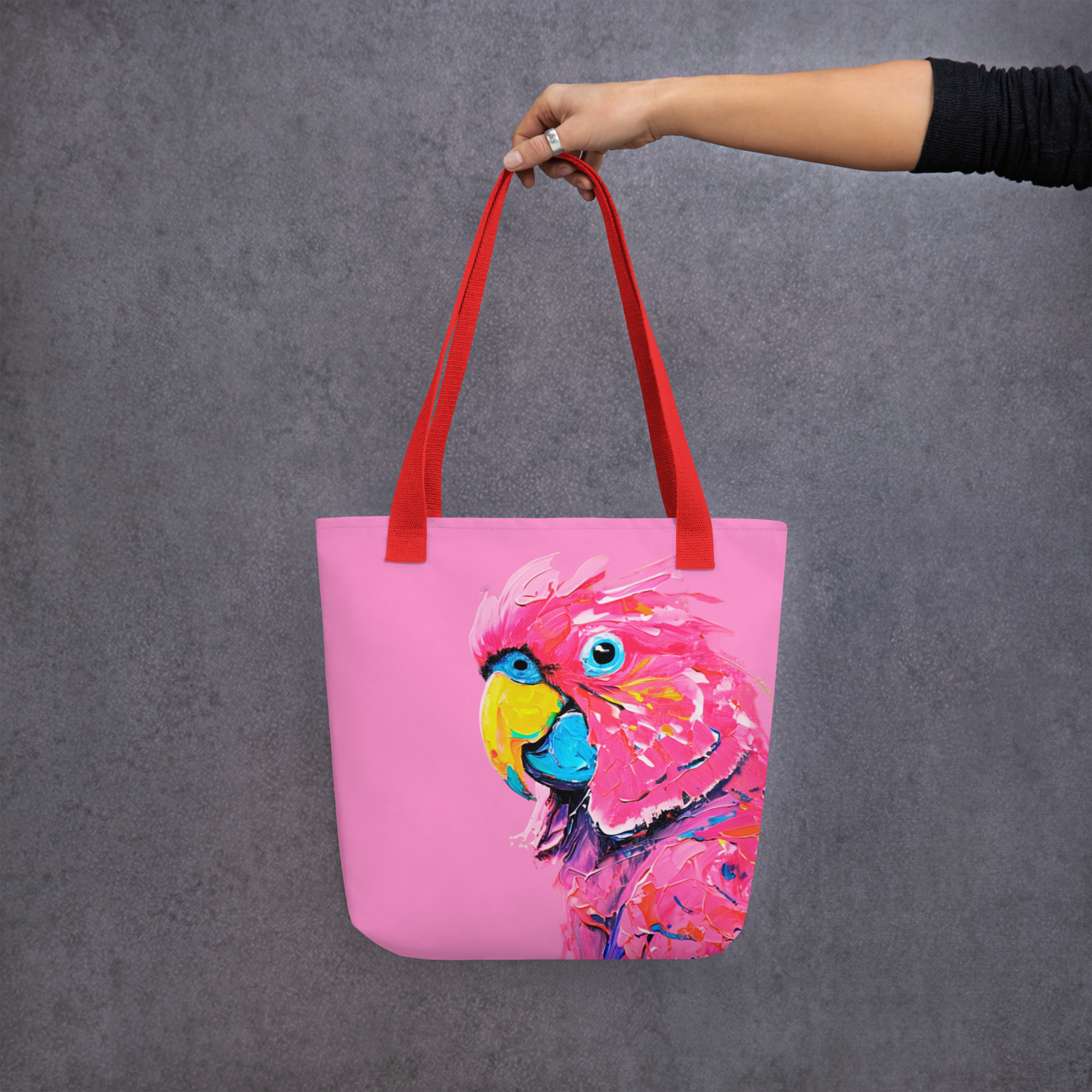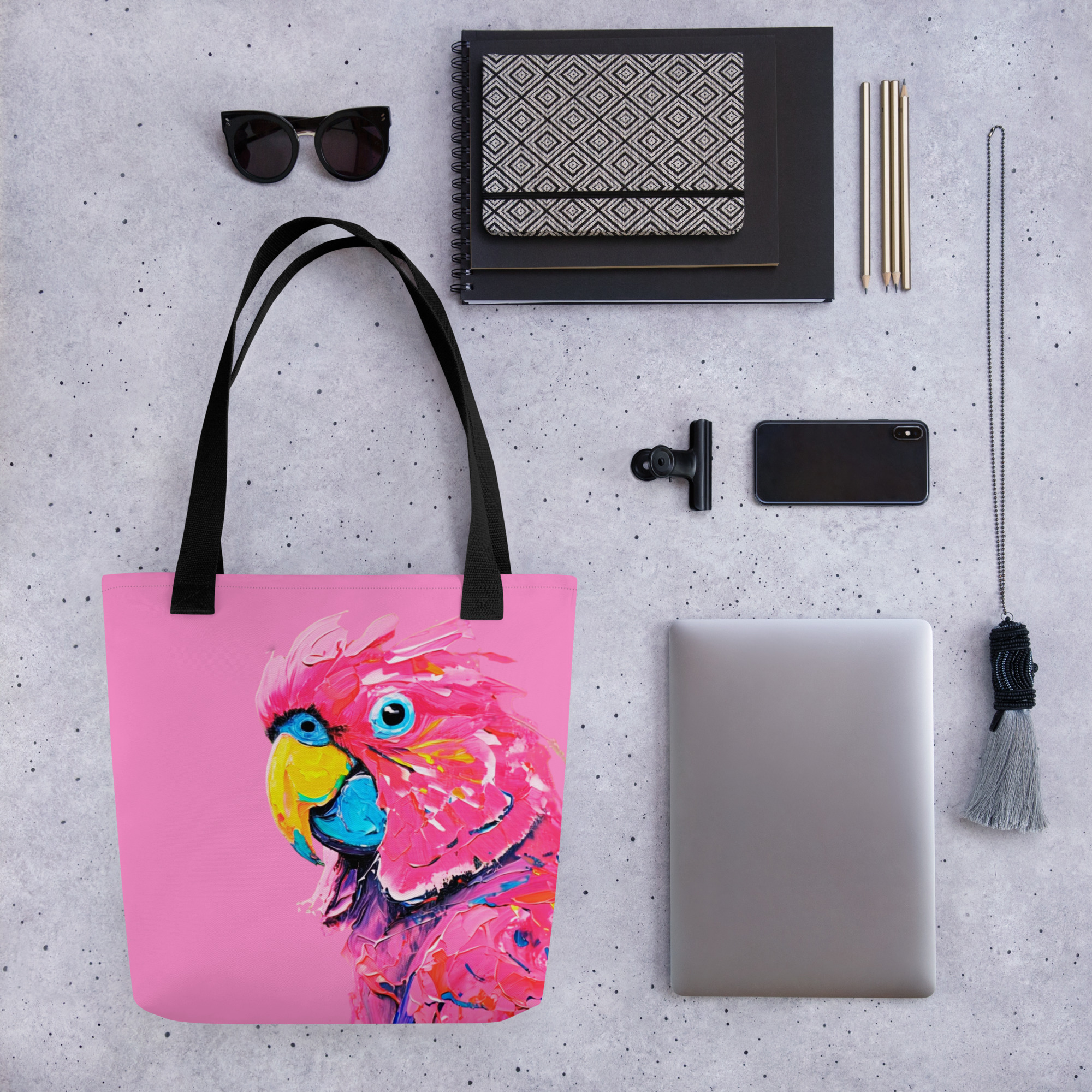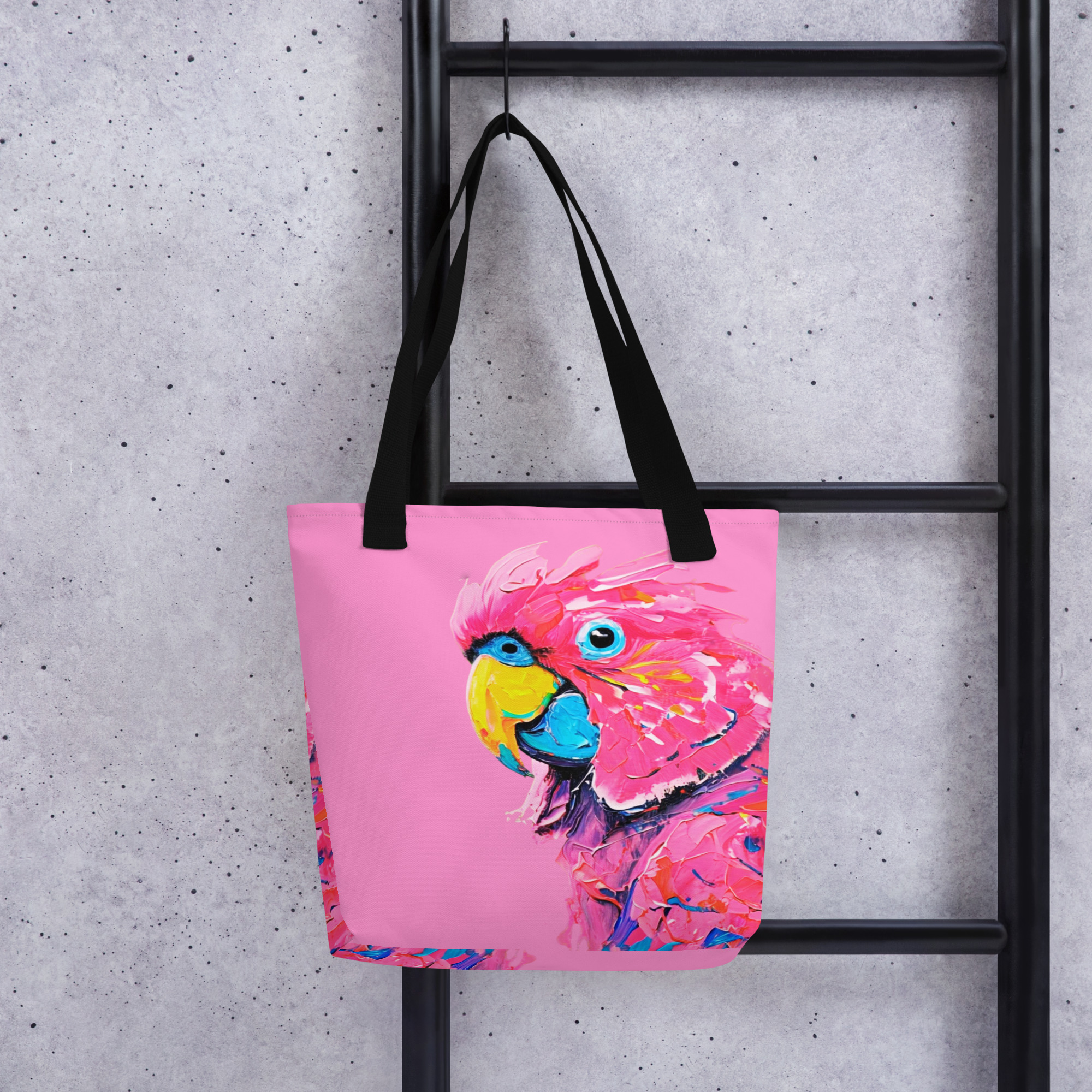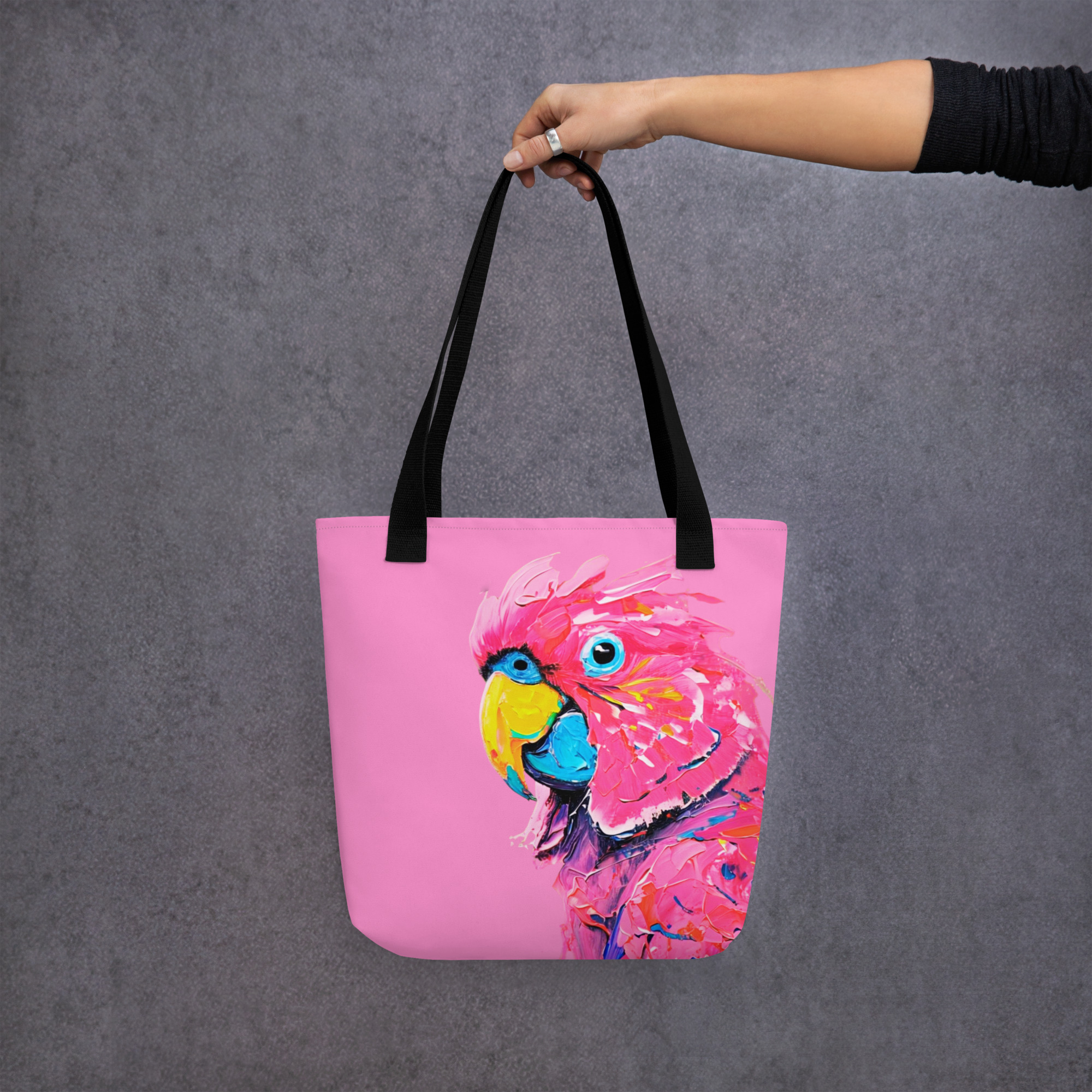 The Pink Parrot Tote Bag is a stylish and roomy tote that can carry all your essentials. Its generous interior easily accommodates groceries, beach gear, or luggage for a weekend trip. Plus, the reinforced handles provide a secure and comfortable grip all day long.