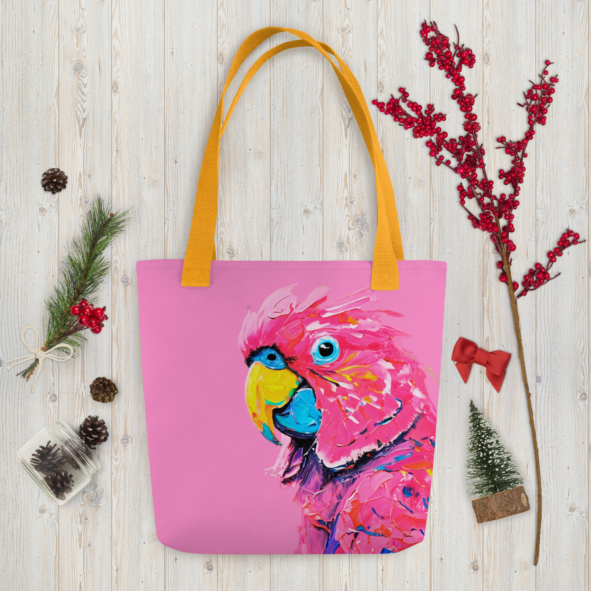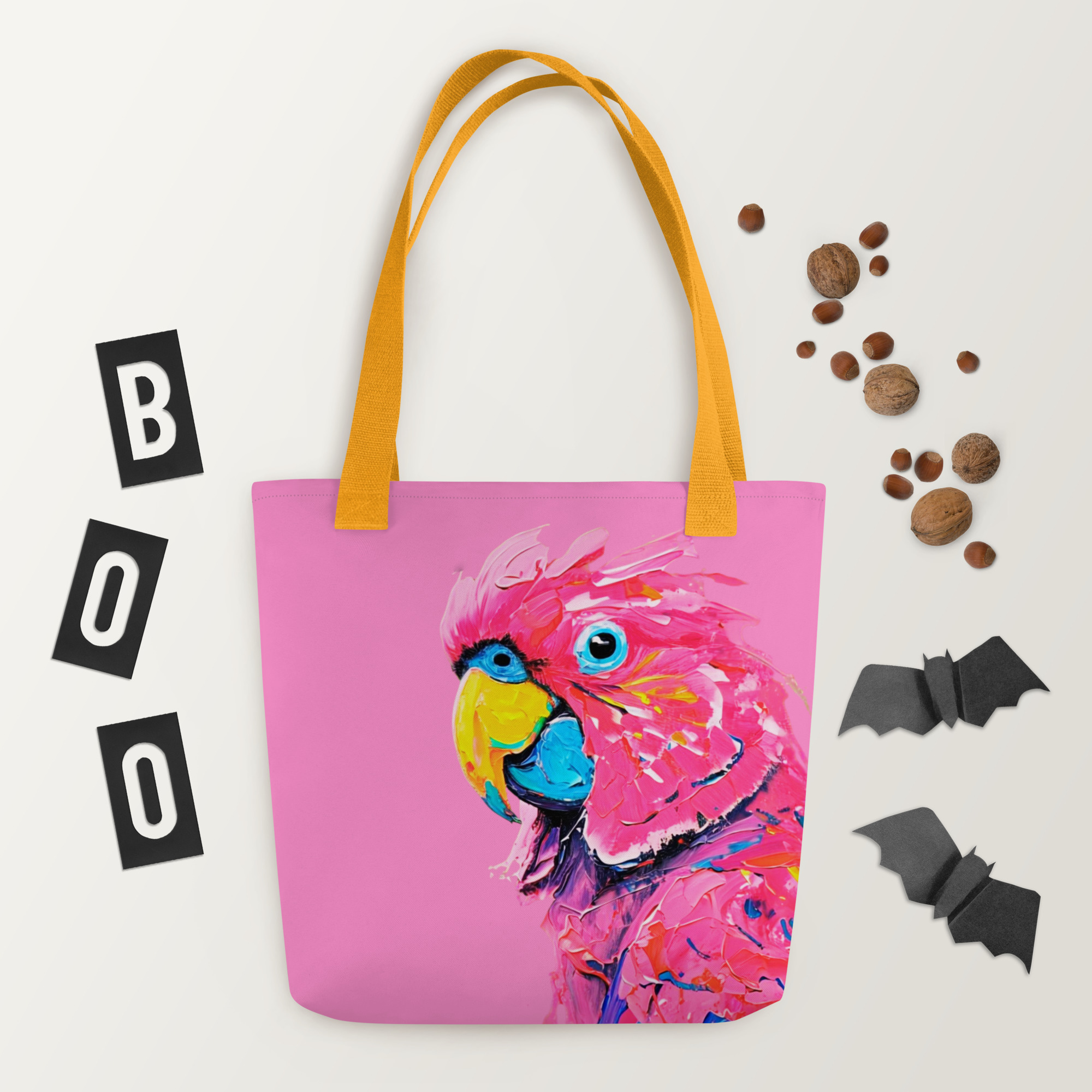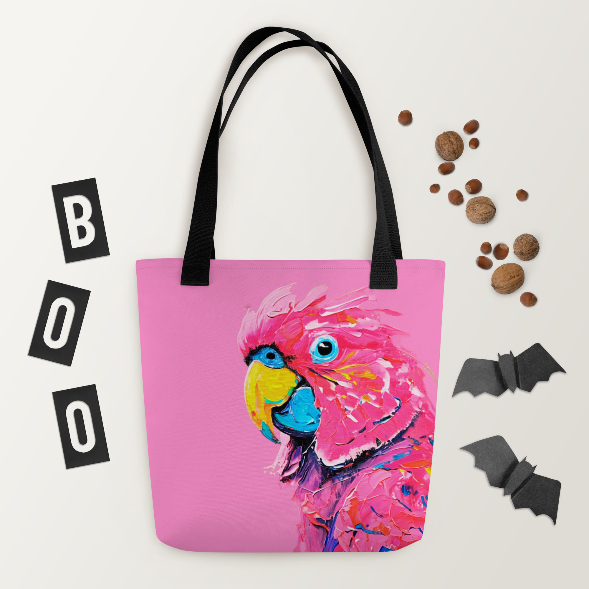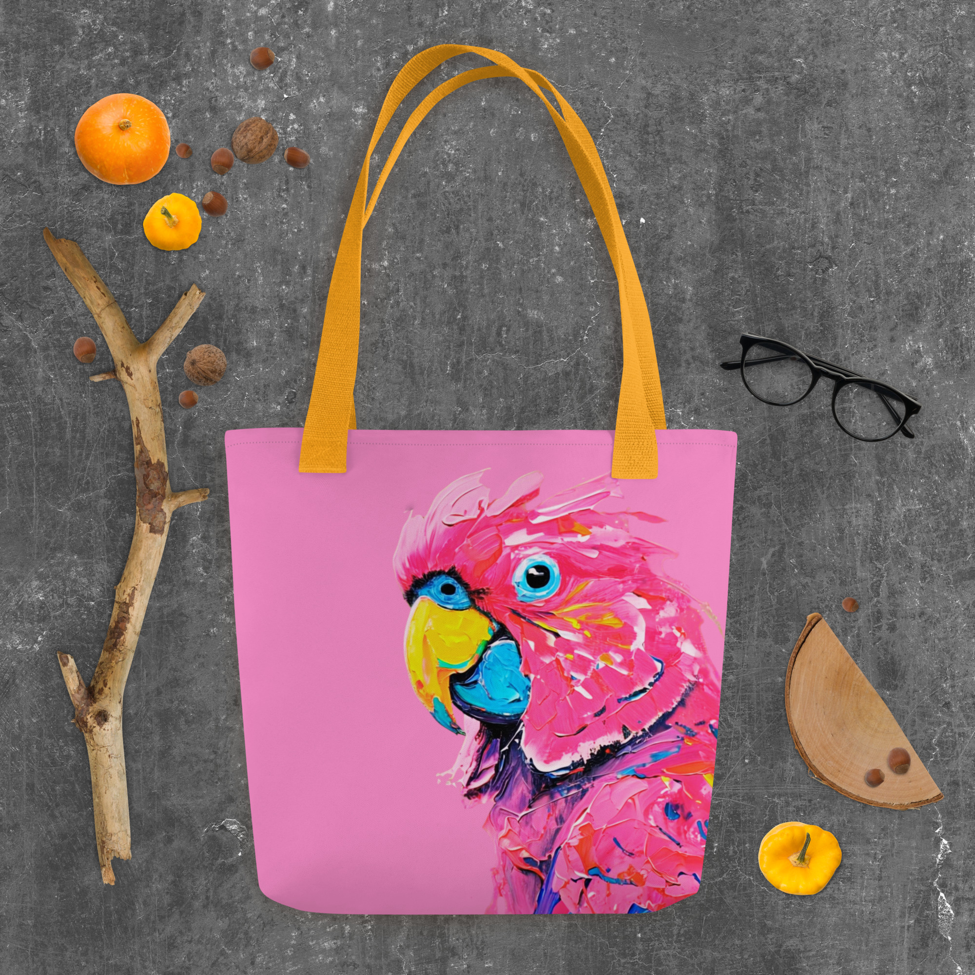 The Pink Parrot Tote Bag is a stylish and roomy tote that can carry all your essentials. Its generous interior easily accommodates groceries, beach gear, or luggage for a weekend trip. Plus, the reinforced handles provide a secure and comfortable grip all day long.