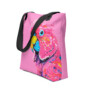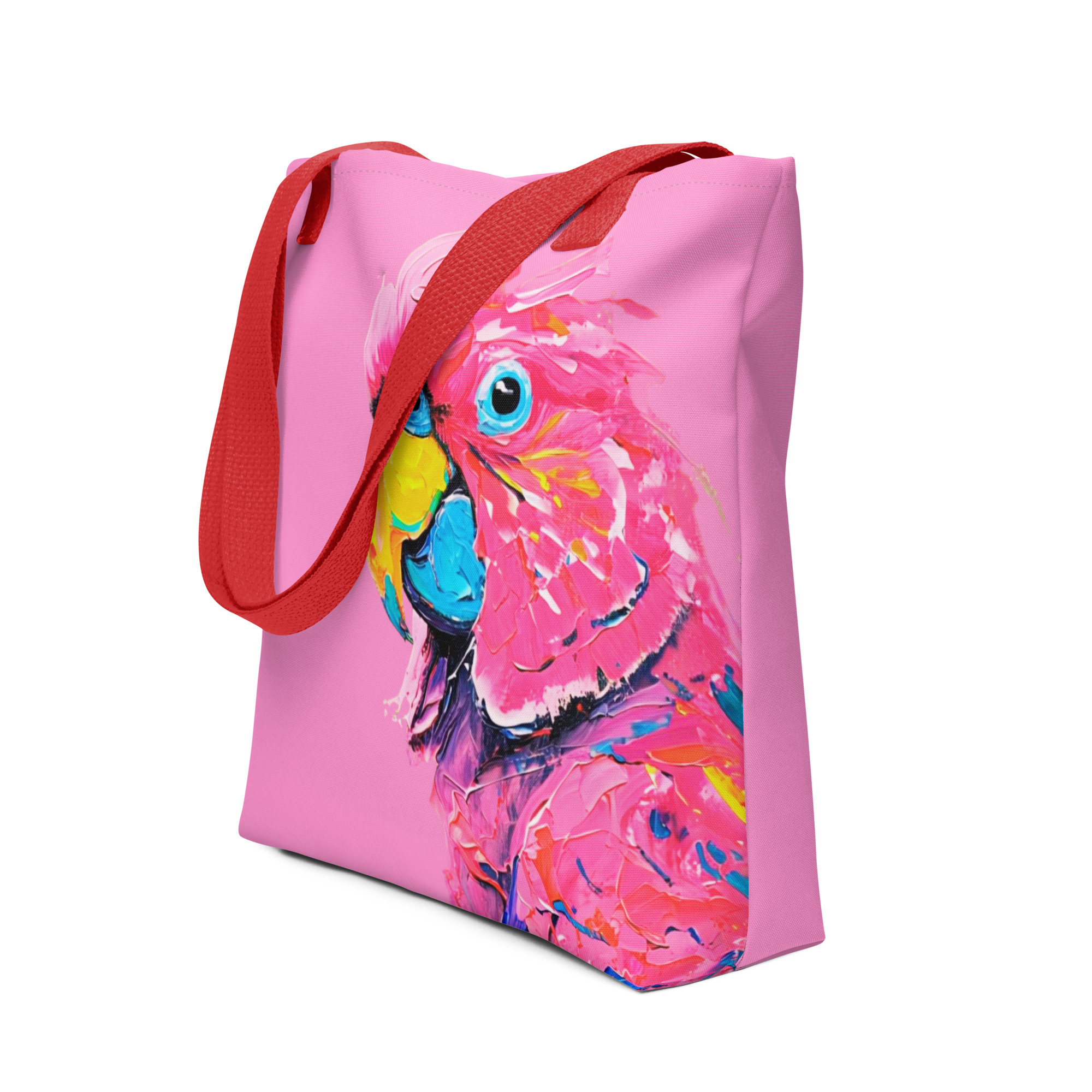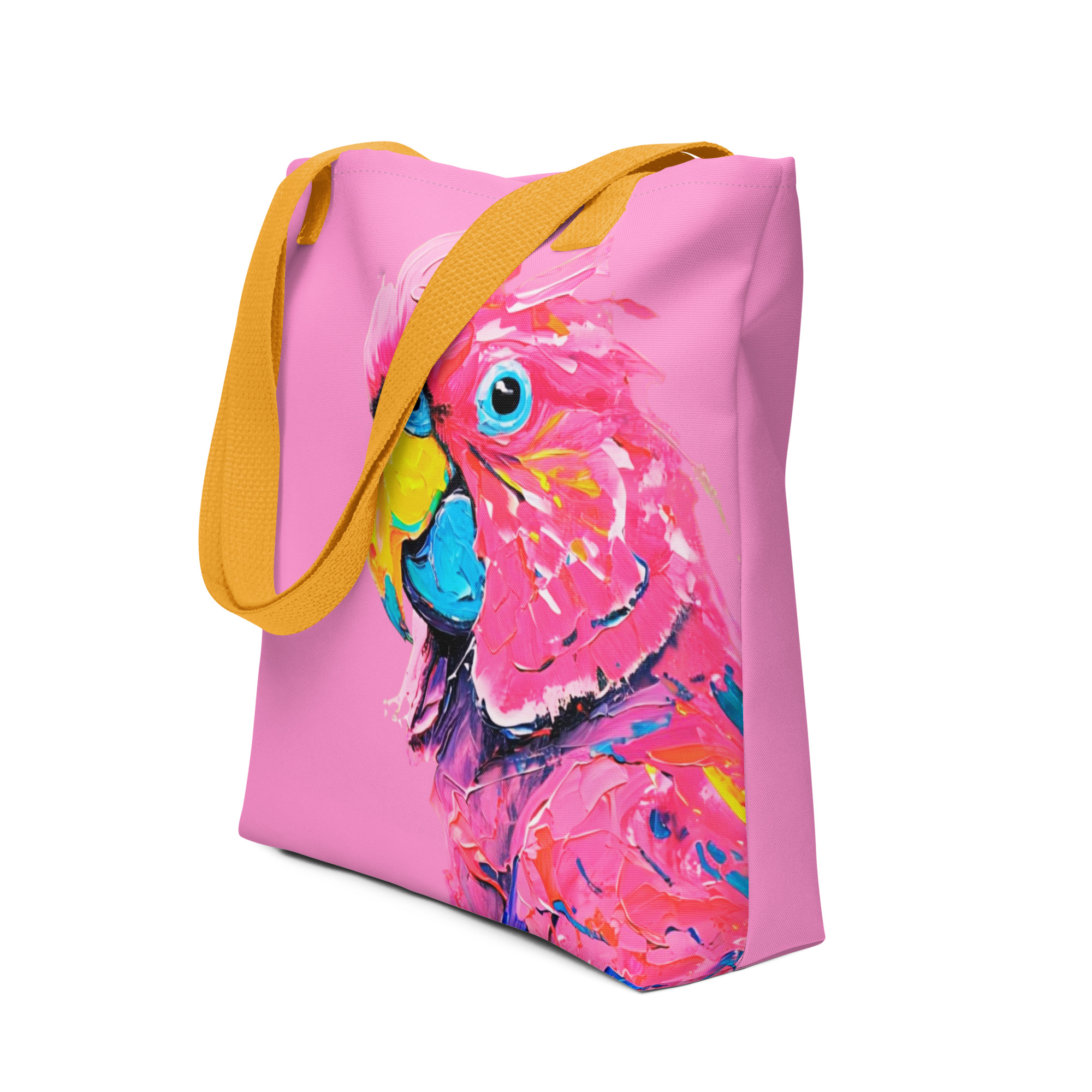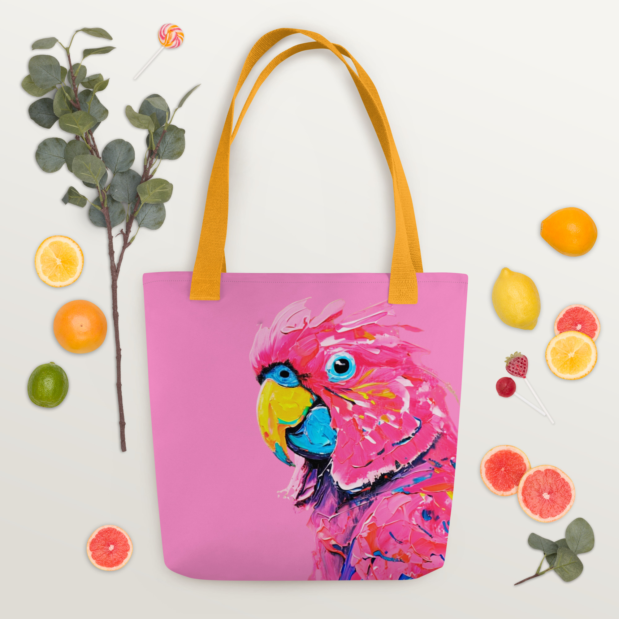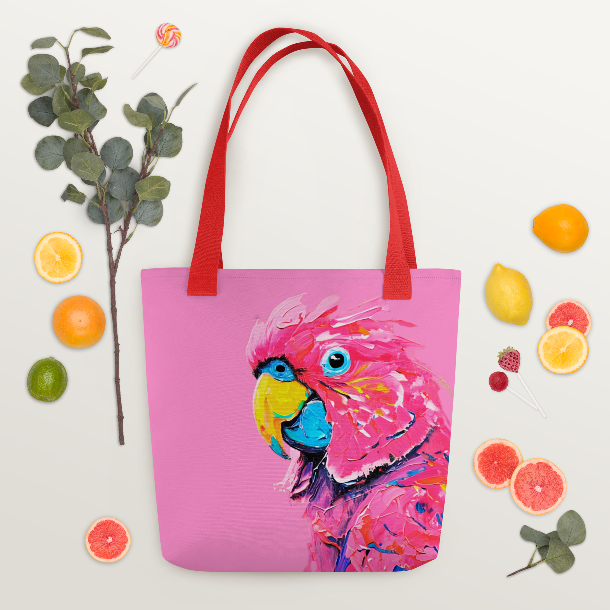 The Pink Parrot Tote Bag is a stylish and roomy tote that can carry all your essentials. Its generous interior easily accommodates groceries, beach gear, or luggage for a weekend trip. Plus, the reinforced handles provide a secure and comfortable grip all day long.