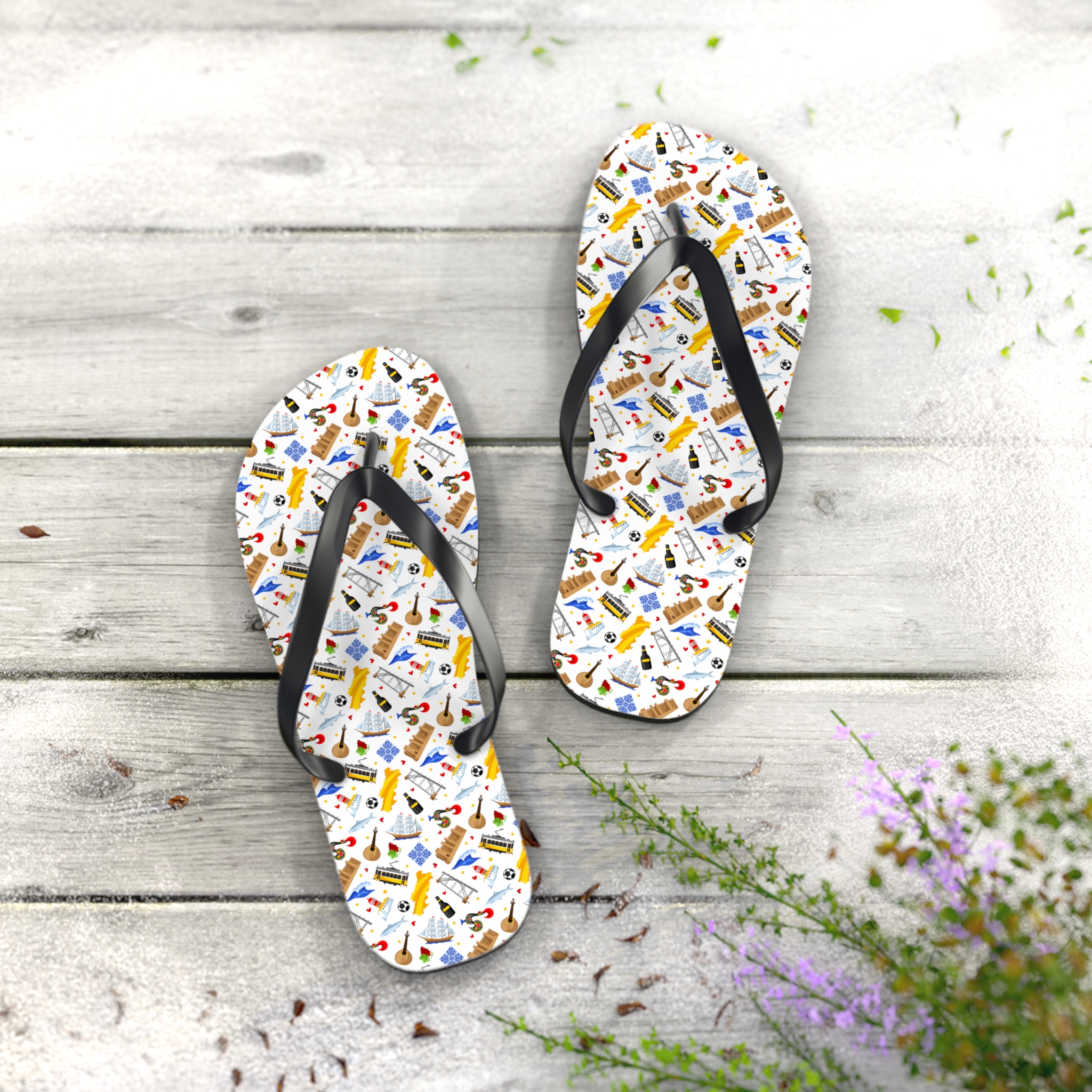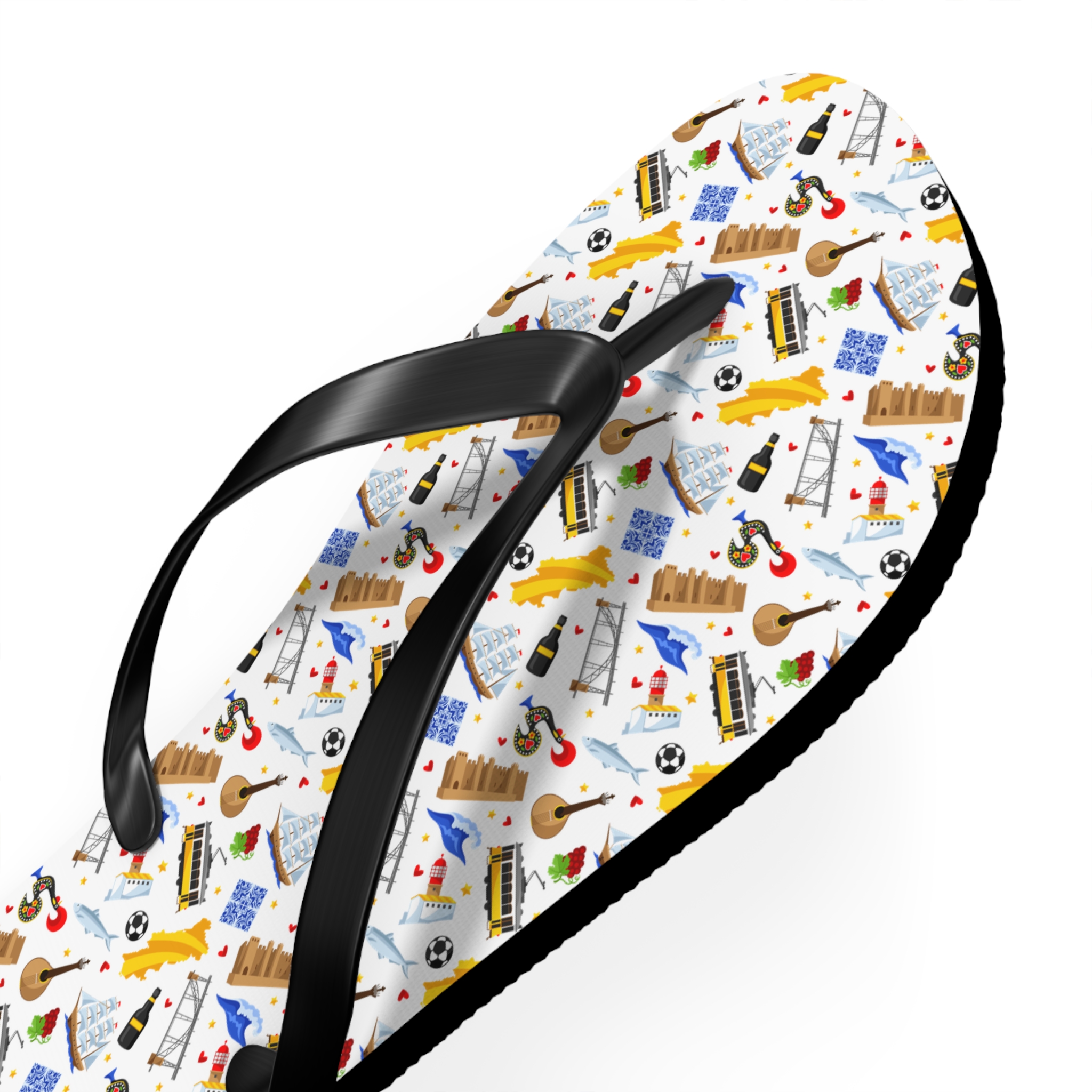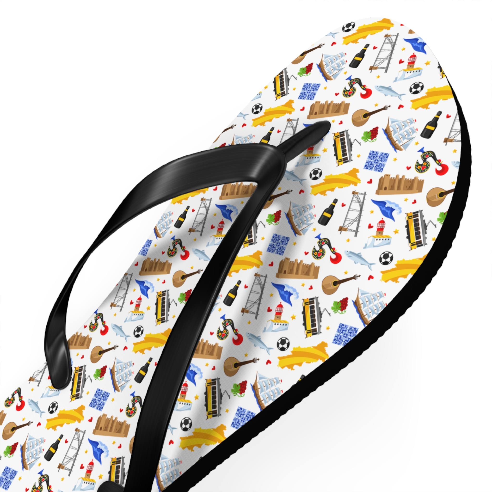 Experience the vibrant culture of Portugal with our Portuguese Symbols White Flip-Flops. Step into summer with style and comfort, and let your feet do the talking.