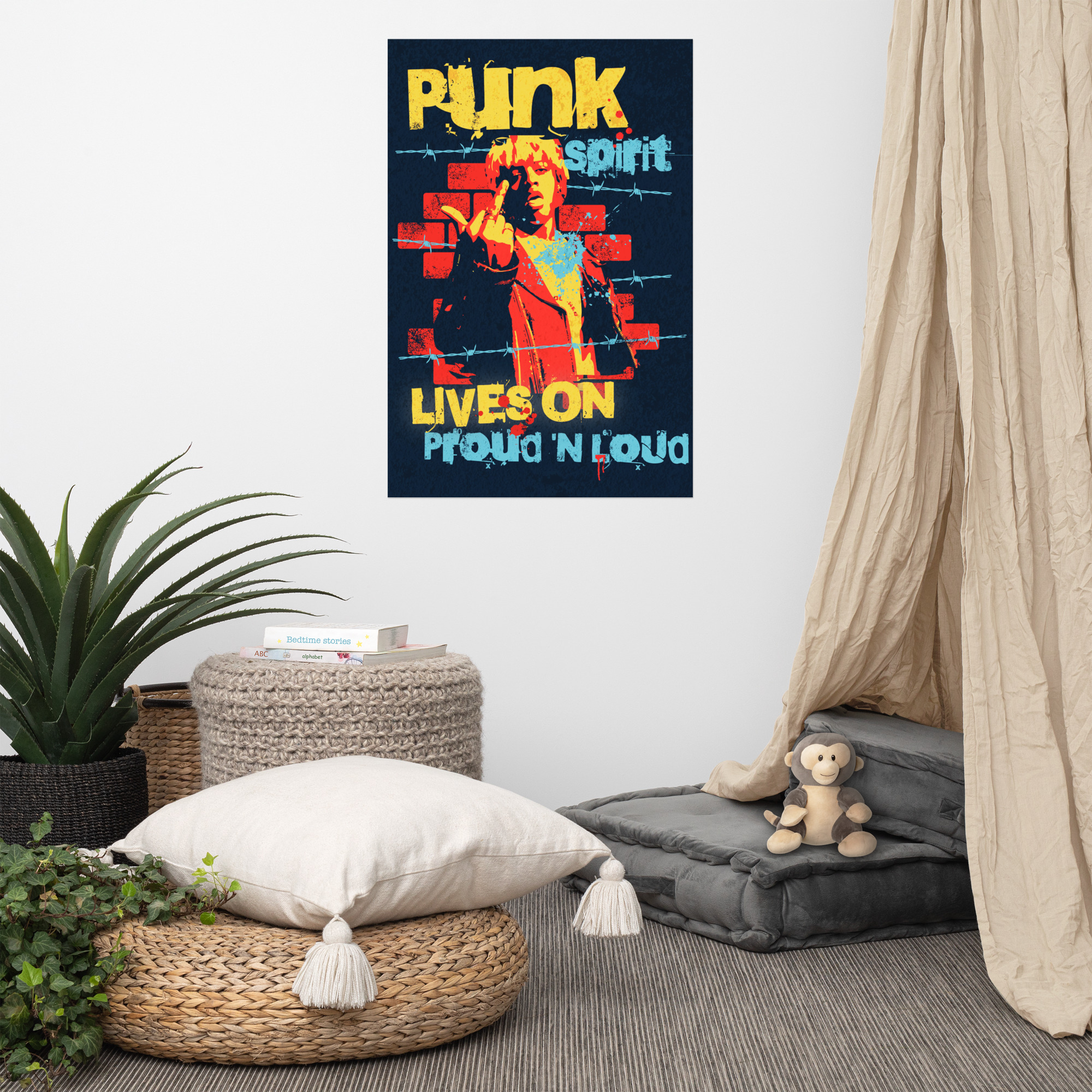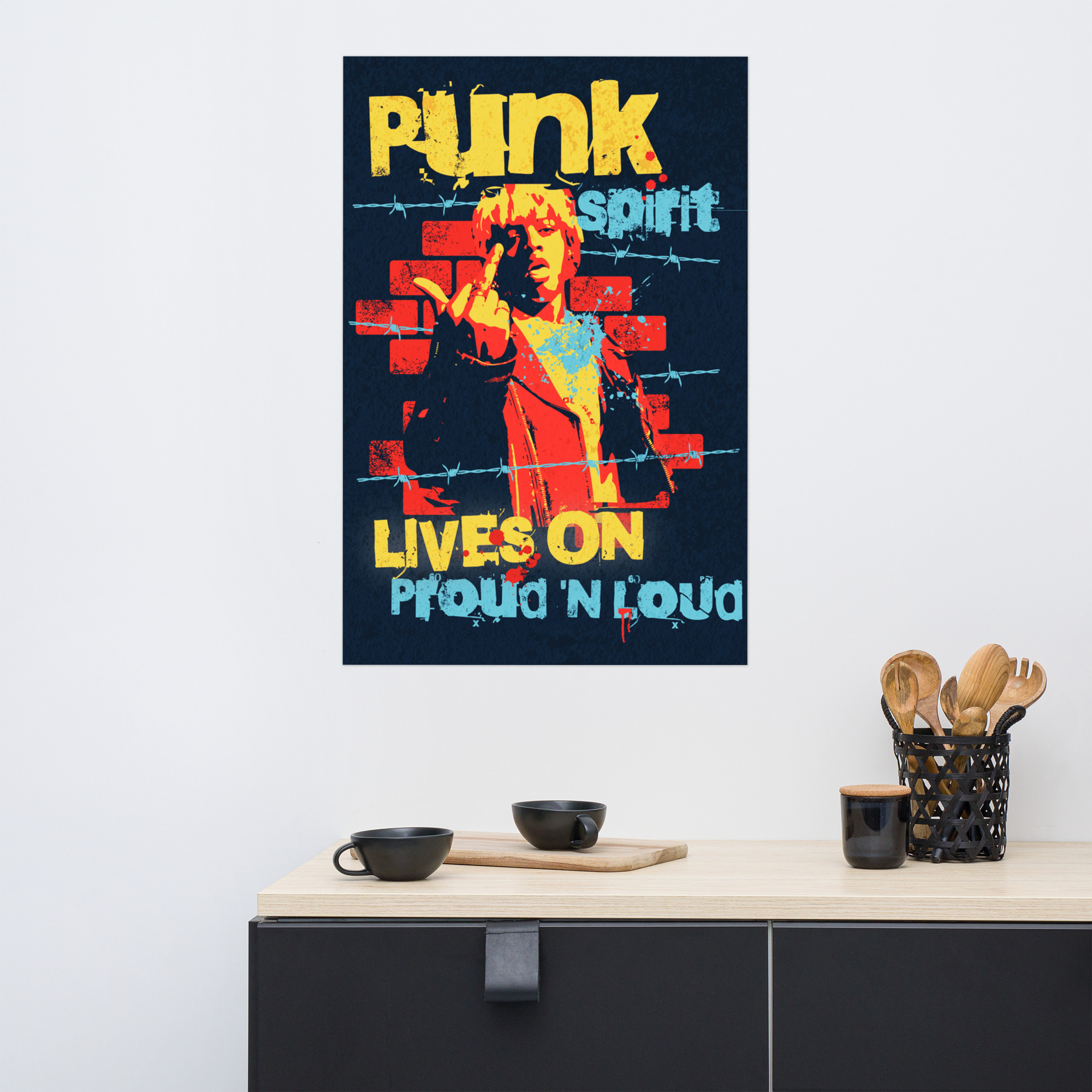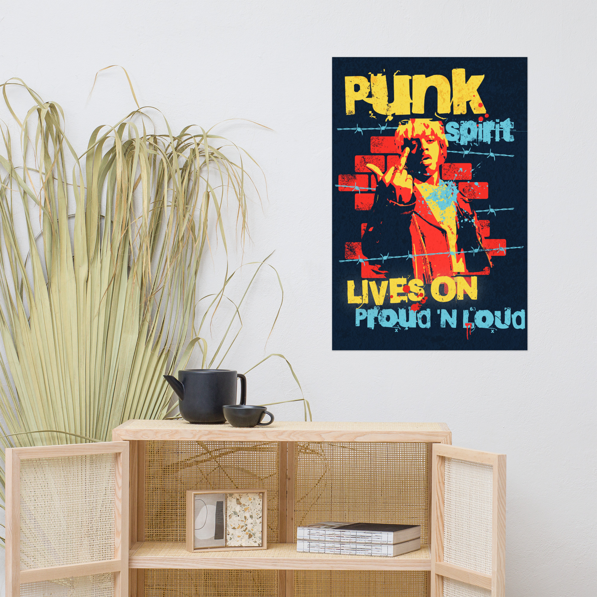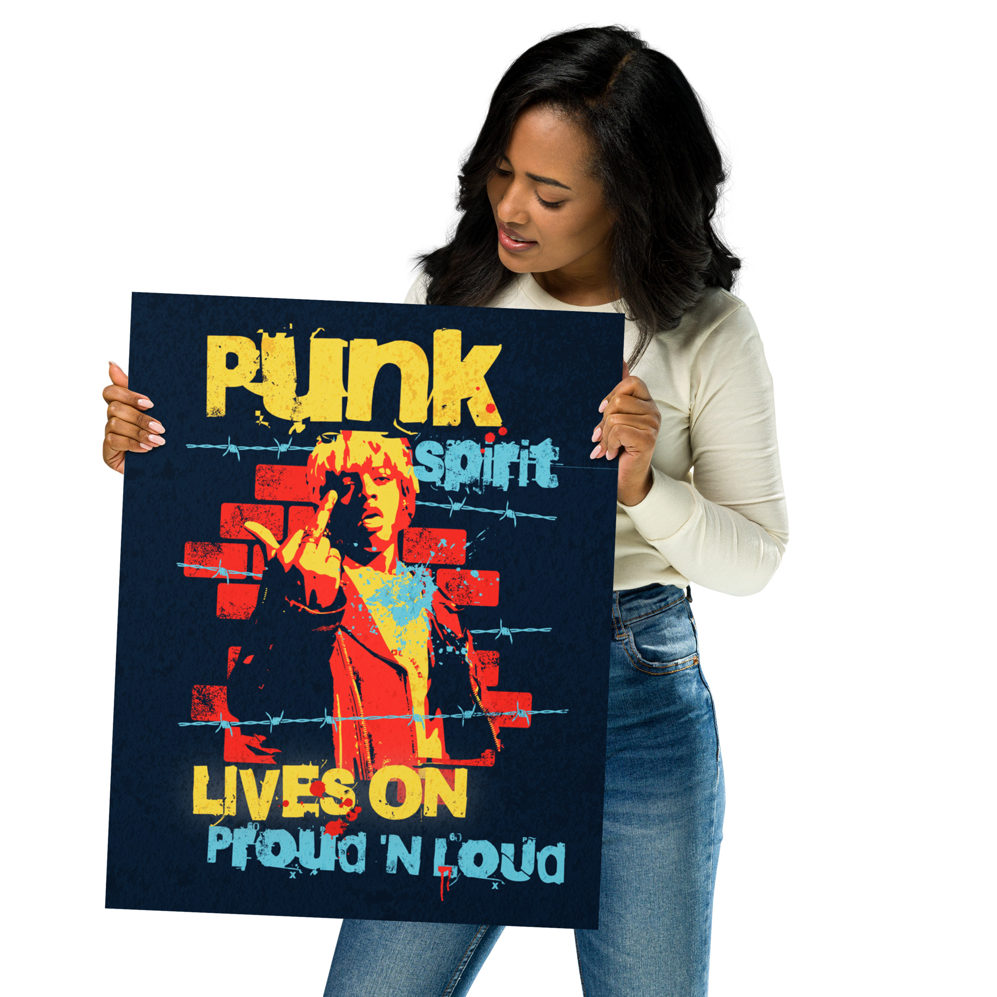 This “Powerful Punk Spirit” poster is printed on museum-quality, thick matte paper. It boasts a substantial 10.3 mil thickness, a weight of 189 g/m², and high opacity, ensuring sharp visuals and a striking presence. The excellent brightness guarantees clean and vibrant color reproduction. These posters are perfect for adding a wonderful accent to any room or office, instantly brightening up your space.