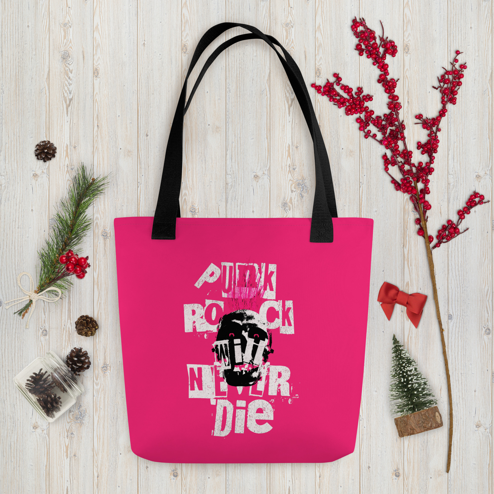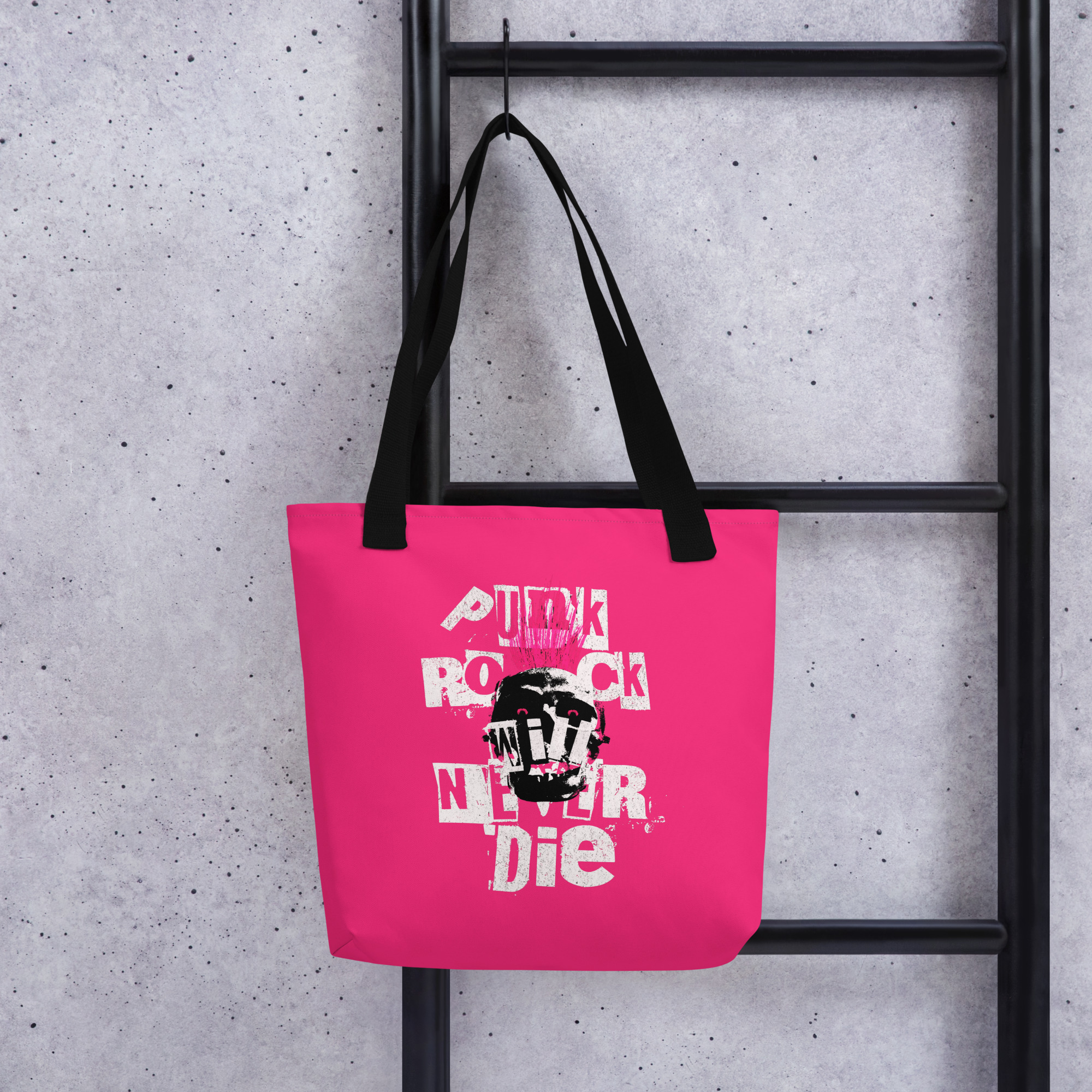 This stylish and roomy tote bag, the Pretty Pink Punk, is perfect for carrying all your essentials. It’s lightweight yet durable, so it’s built to last without weighing you down.