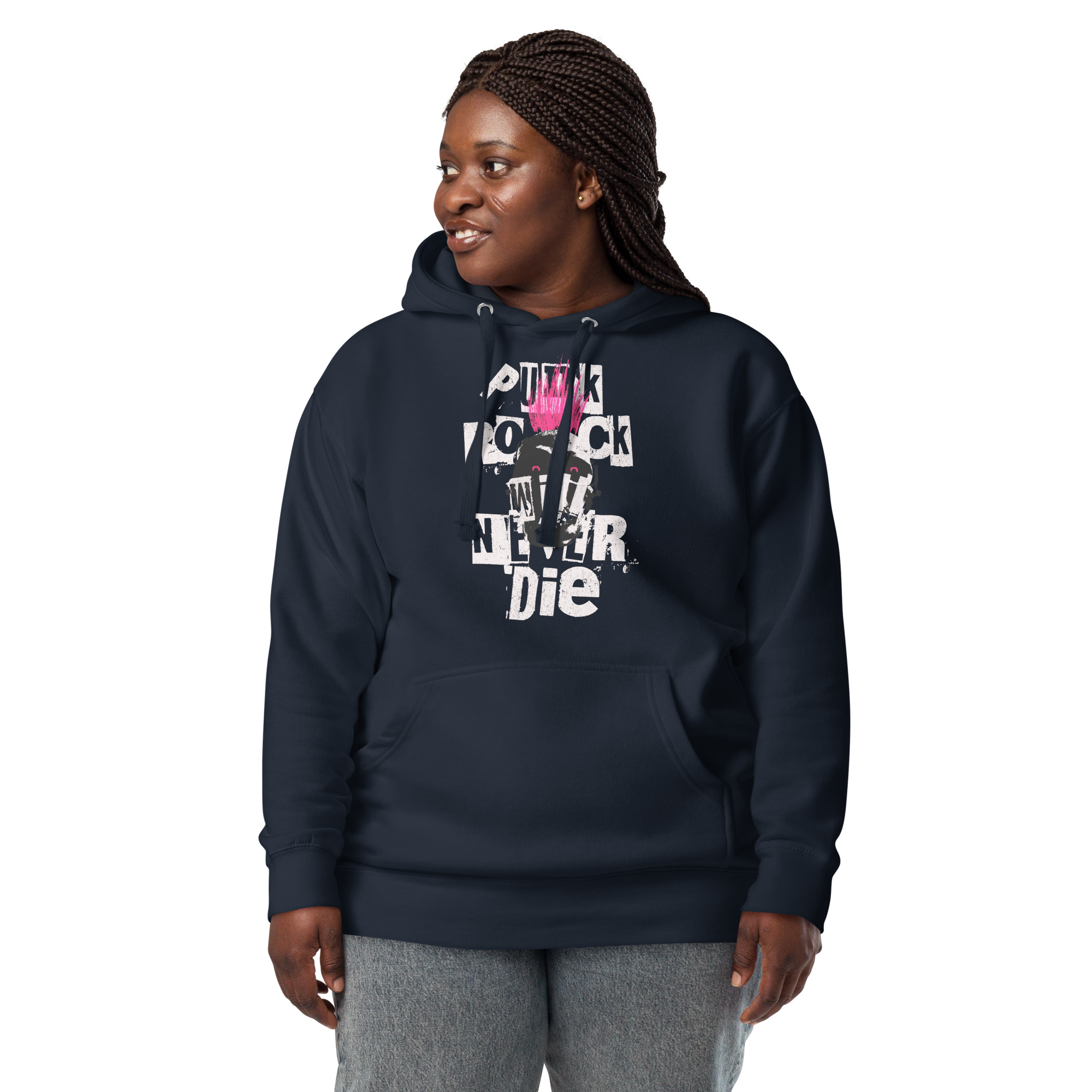This hoodie isn’t just soft; it’s got a killer design. The “Punk Never Dies” Hoodie is the perfect streetwear piece, with a handy pouch pocket and a cozy hood for those cool nights. Made with a smooth 100% cotton exterior and a sturdy cotton-poly blend interior, it feels soft and warm while keeping its shape and lasting a long time.