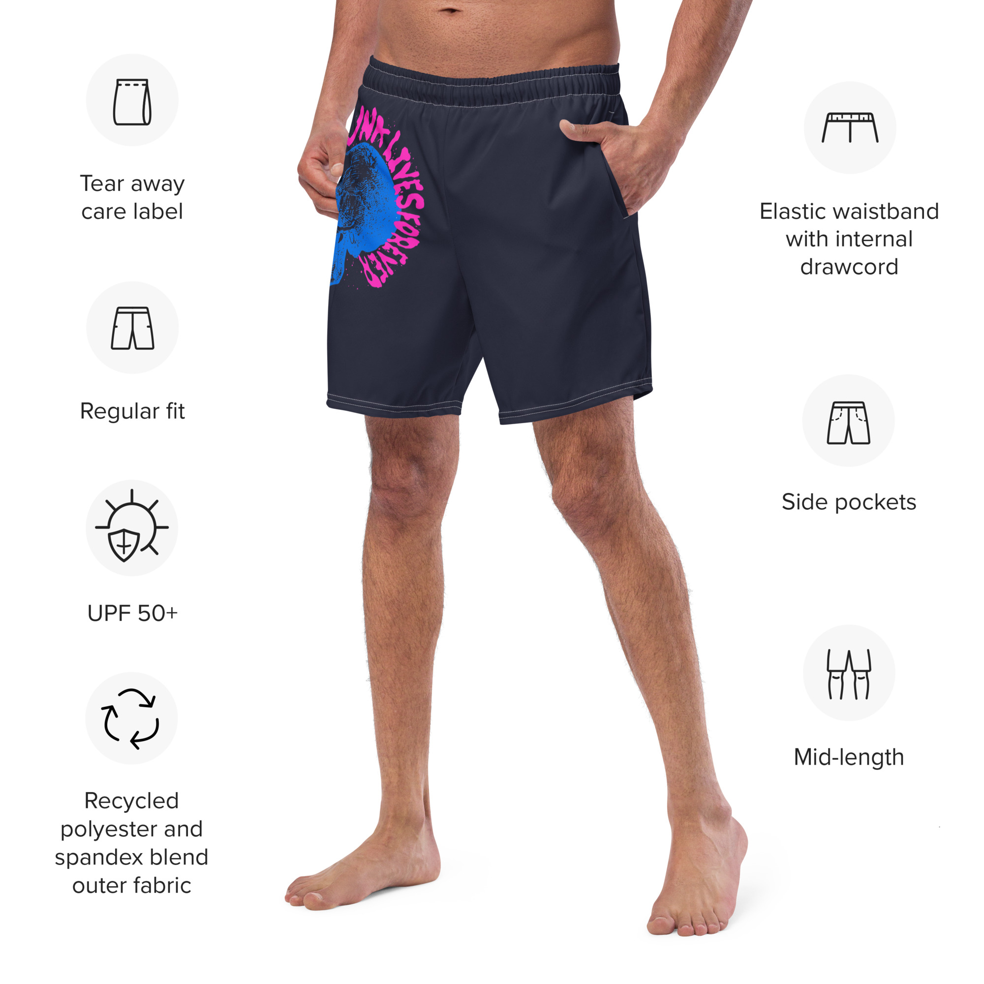 The Punk Rock Forever Swim Trunks are perfect for a hot summer day. They’re quick-drying and breathable, with multiple pockets to hold your essentials. Plus, they feature a silky, anti-chafe inner liner for maximum comfort. UPF 50+ protection keeps your skin safe from the sun, and the elastic waistband with an adjustable drawcord guarantees a secure, comfortable fit. Get yours today!