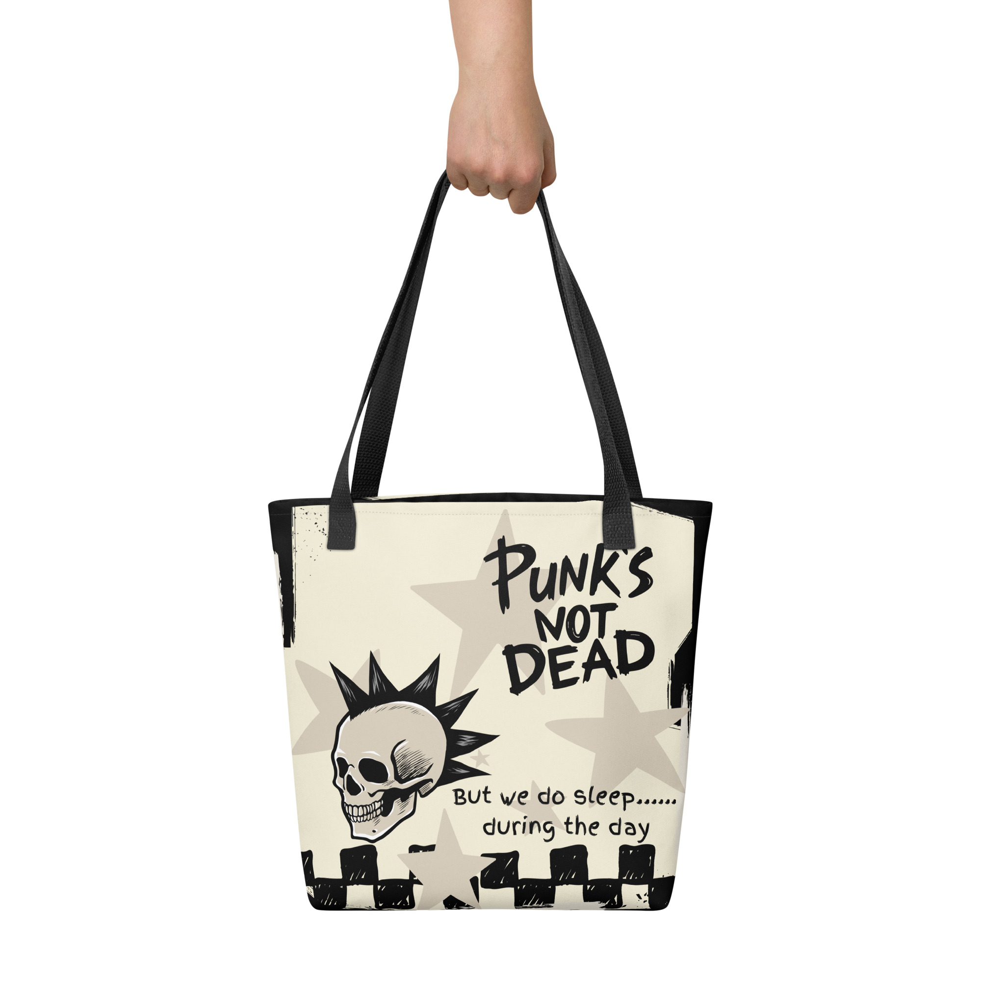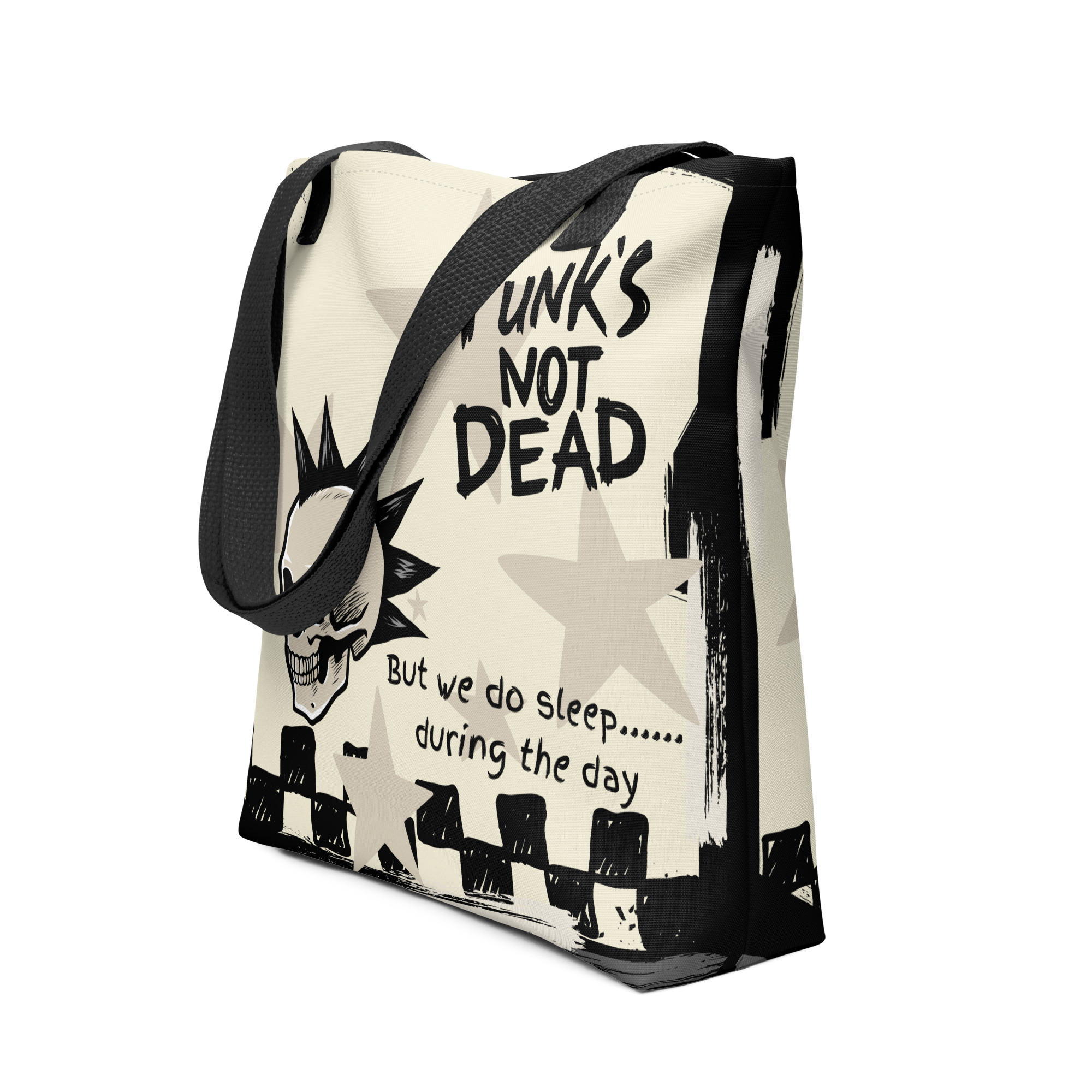 The Punk Skull Tote Bag is spacious and trendy. It helps you carry everything you need. It’s lightweight but sturdy. This ensures reliable performance without adding bulk.