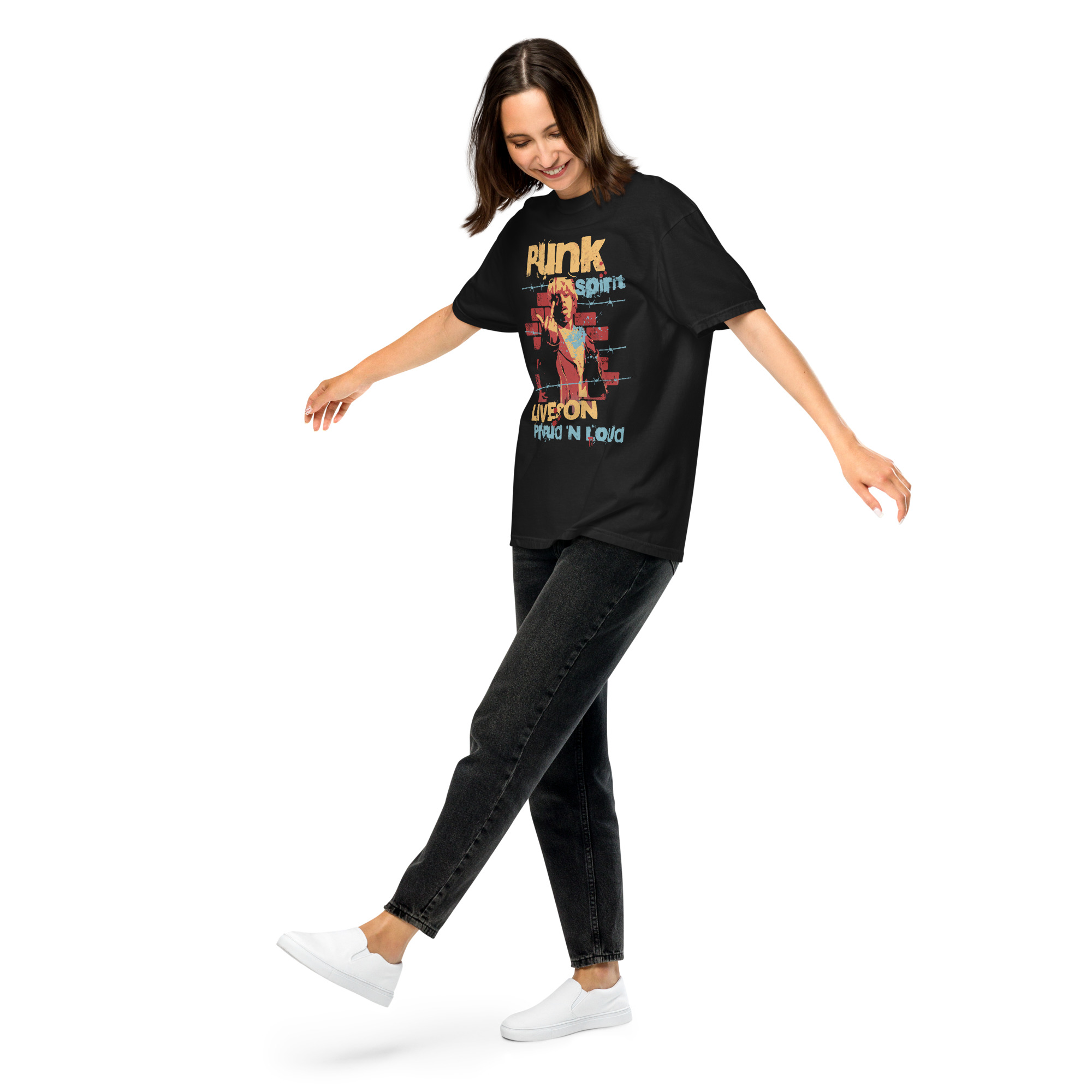 The Punk Spirit Heavyweight T-shirt feels substantial, soft cotton against the skin, a thick 6.1 oz/yd² fabric that breathes. The garment-dyed tee offers a premium feel. Double-needle stitching is seen and felt at armholes, sleeves, and hem. It’s ready for the concert, a weekend, or streetwear, bringing dependable comfort and cool.