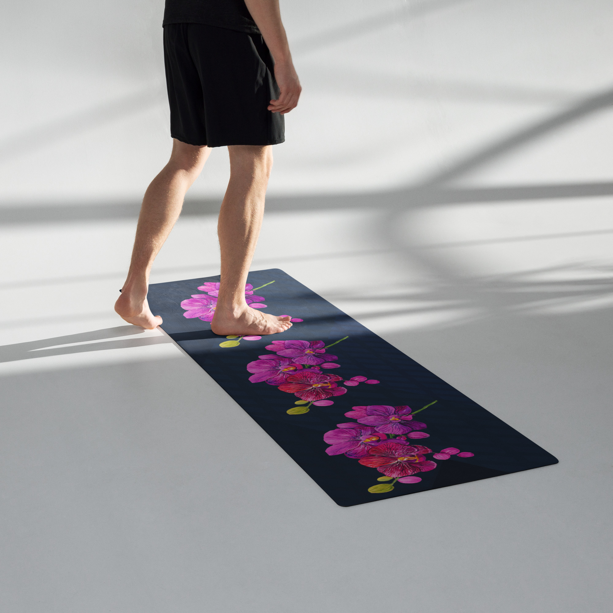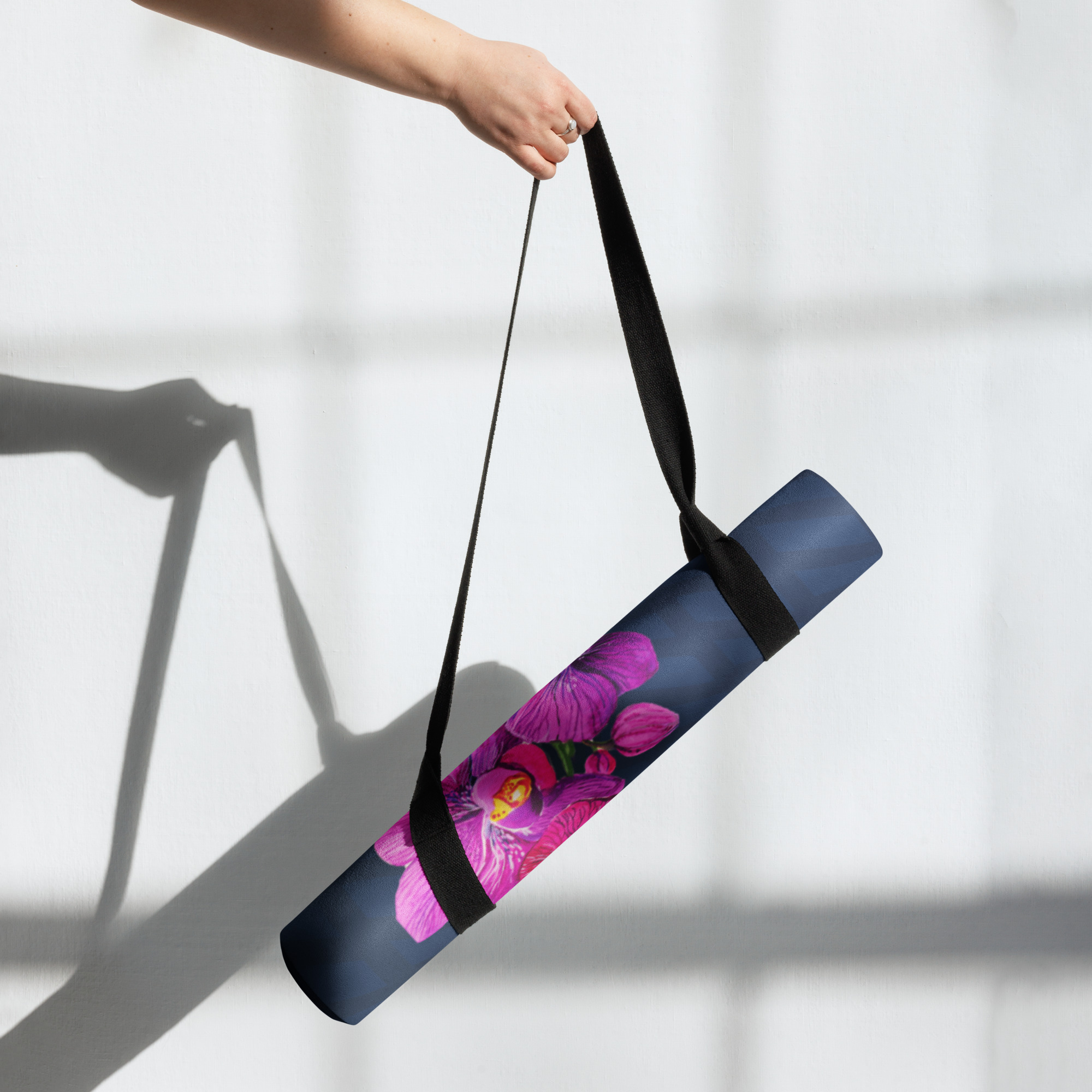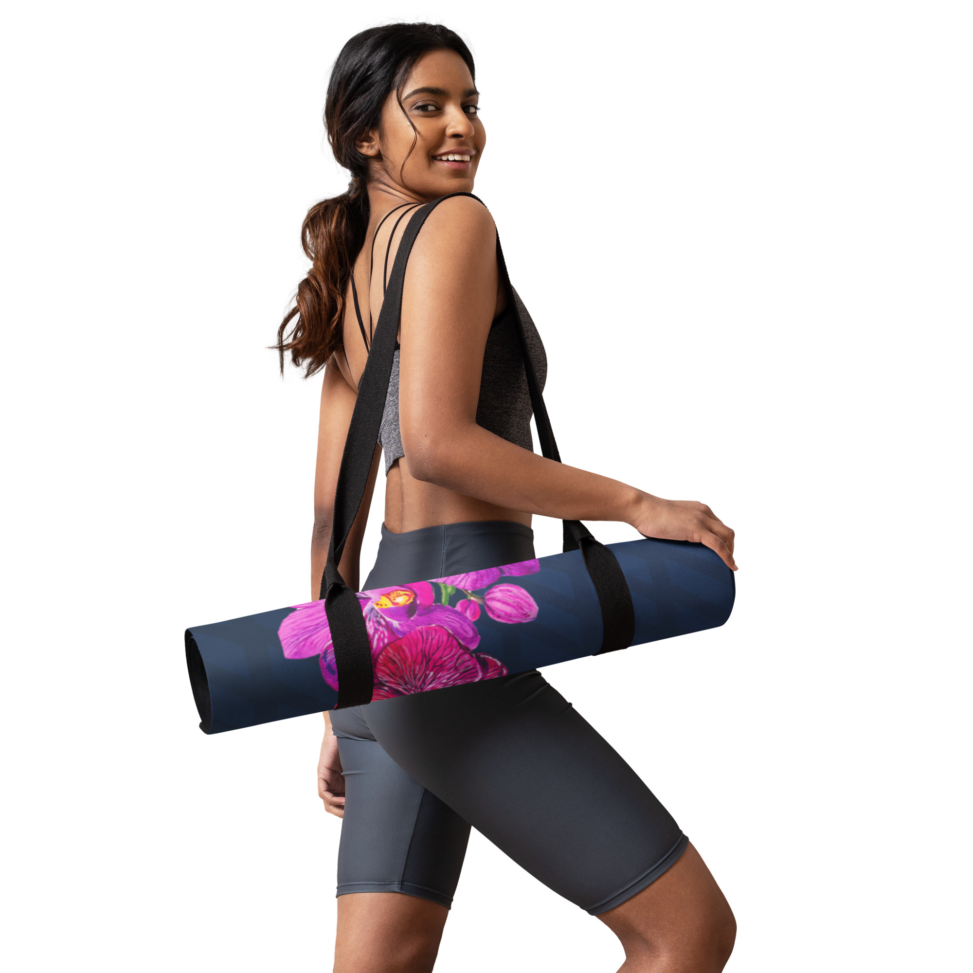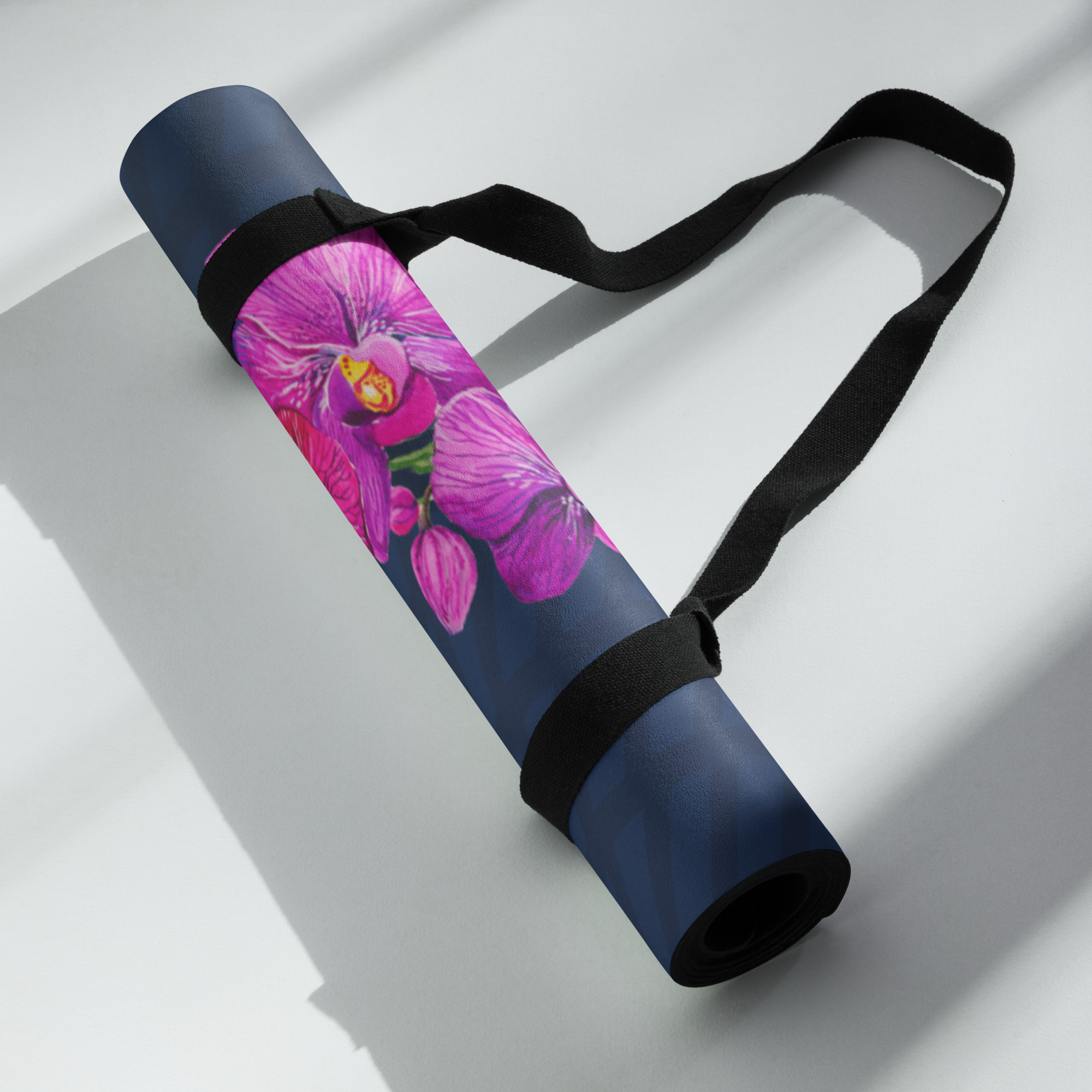 Unfurl the Purple Orchid Flower Yoga Mat, and let serenity bloom. The eye catches the vibrant floral print against a cool, soft surface, a calming backdrop for your practice. Feel the gentle give beneath your hands and feet as you stretch, flow, or meditate. The mat’s subtle, earthy scent hints at its durable materials, ready for daily use. Lightweight and easily carried, it offers a stylish companion to elevate your fitness, mindfulness, or relaxation.