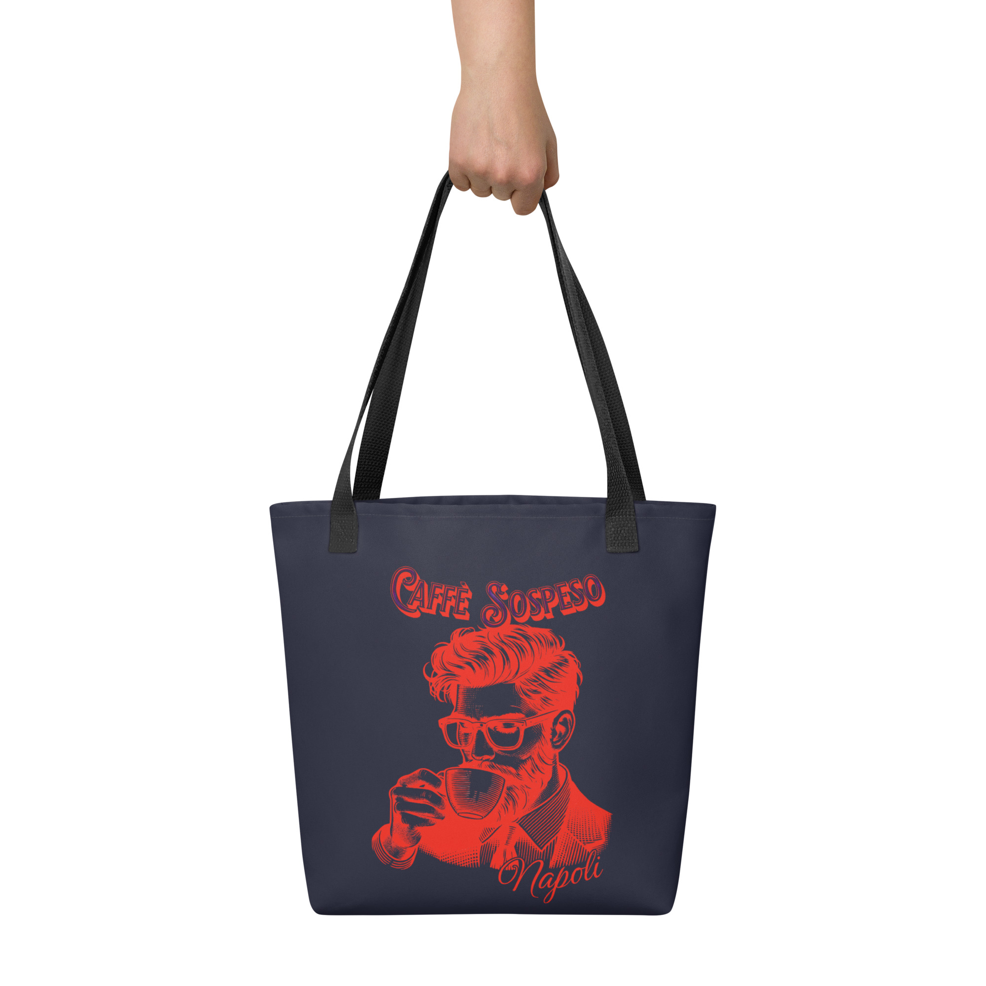 This spacious and trendy Red Cafe Sospeso Tote Bag is perfect for carrying all your essentials. Its 2.6-gallon capacity and reinforced structure can hold up to 44 lbs, offering reliable strength with a sleek, modern look.