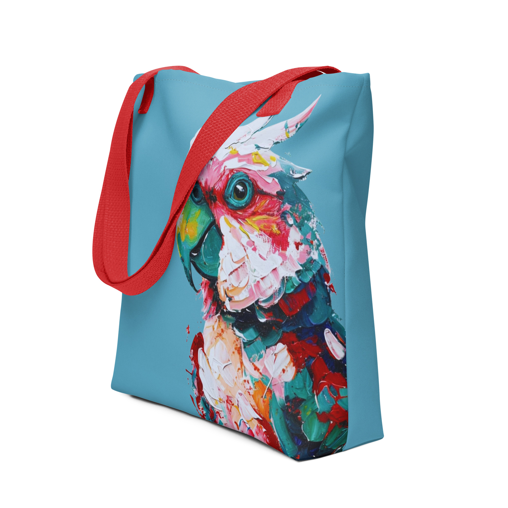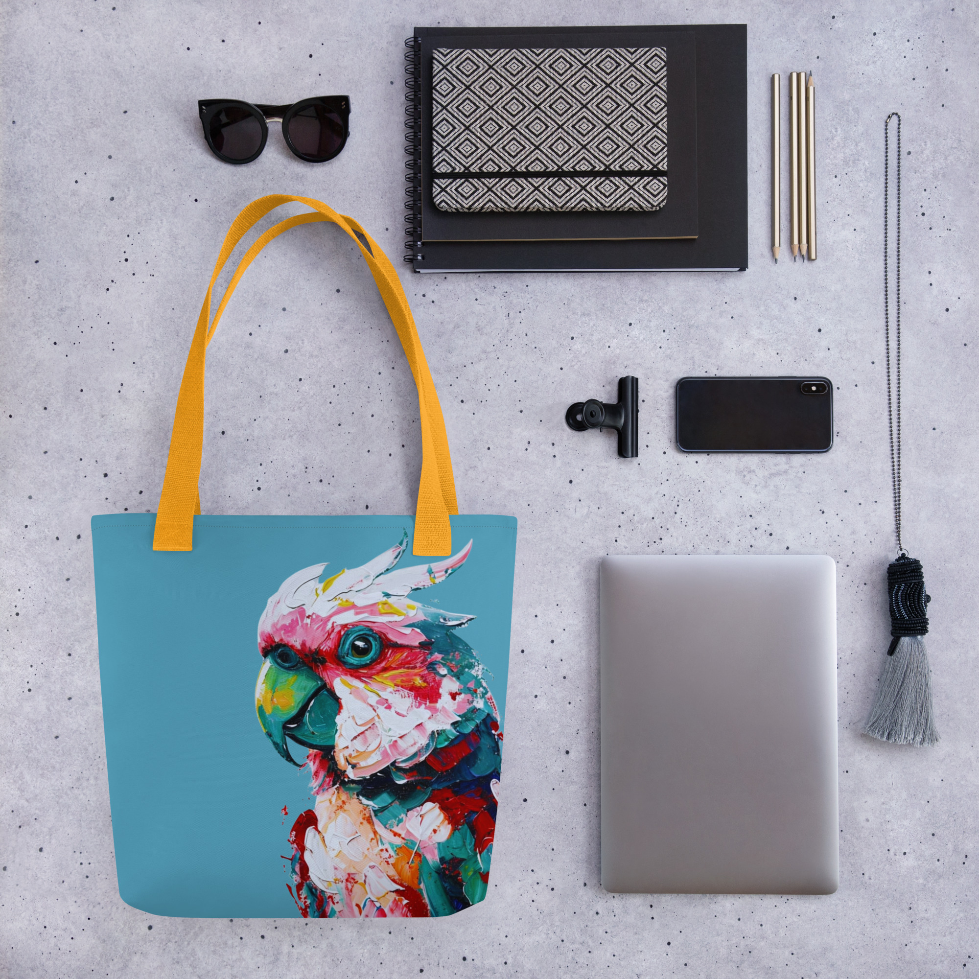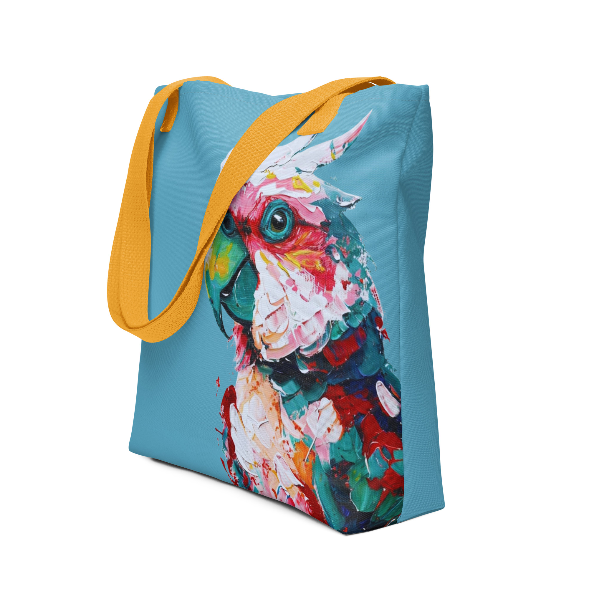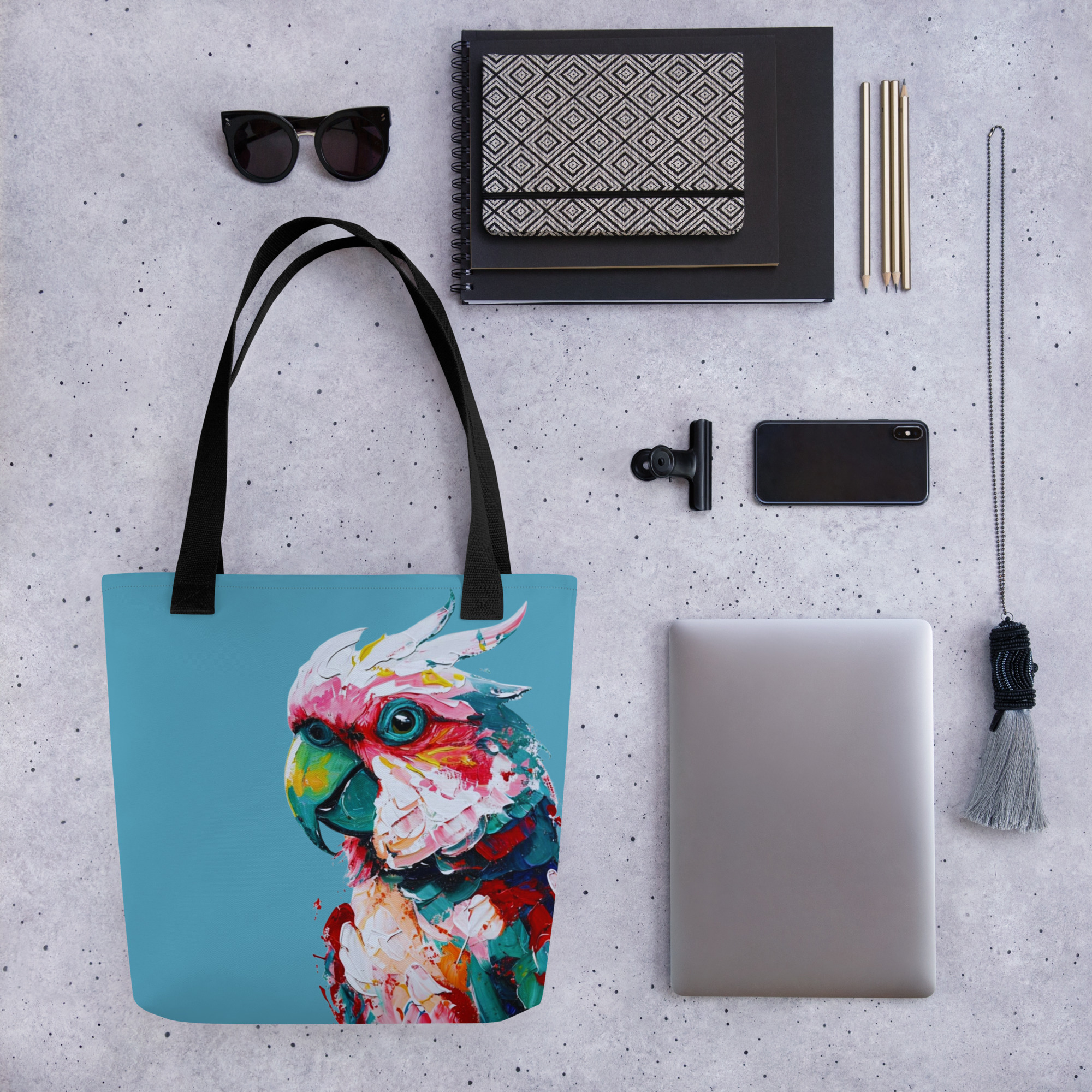 The Steel Blue Parrot Tote Bag is spacious and trendy. It helps you carry your essentials. It’s made from durable, high-quality material. This bag is strong, yet lightweight and comfortable. Reinforced handles offer reliable support. It’s perfect for errands and outings.