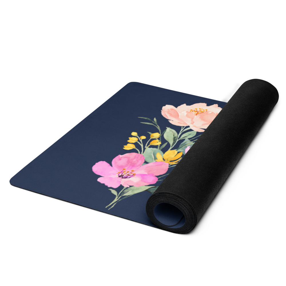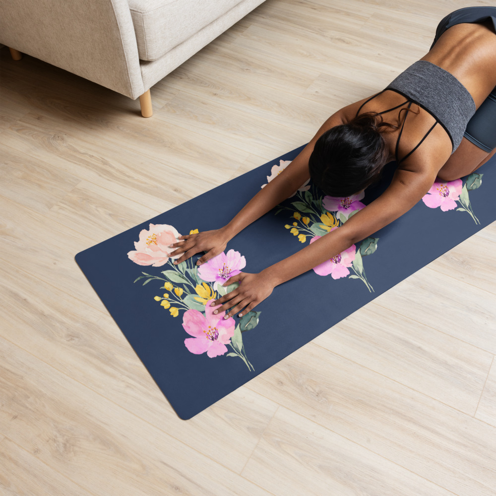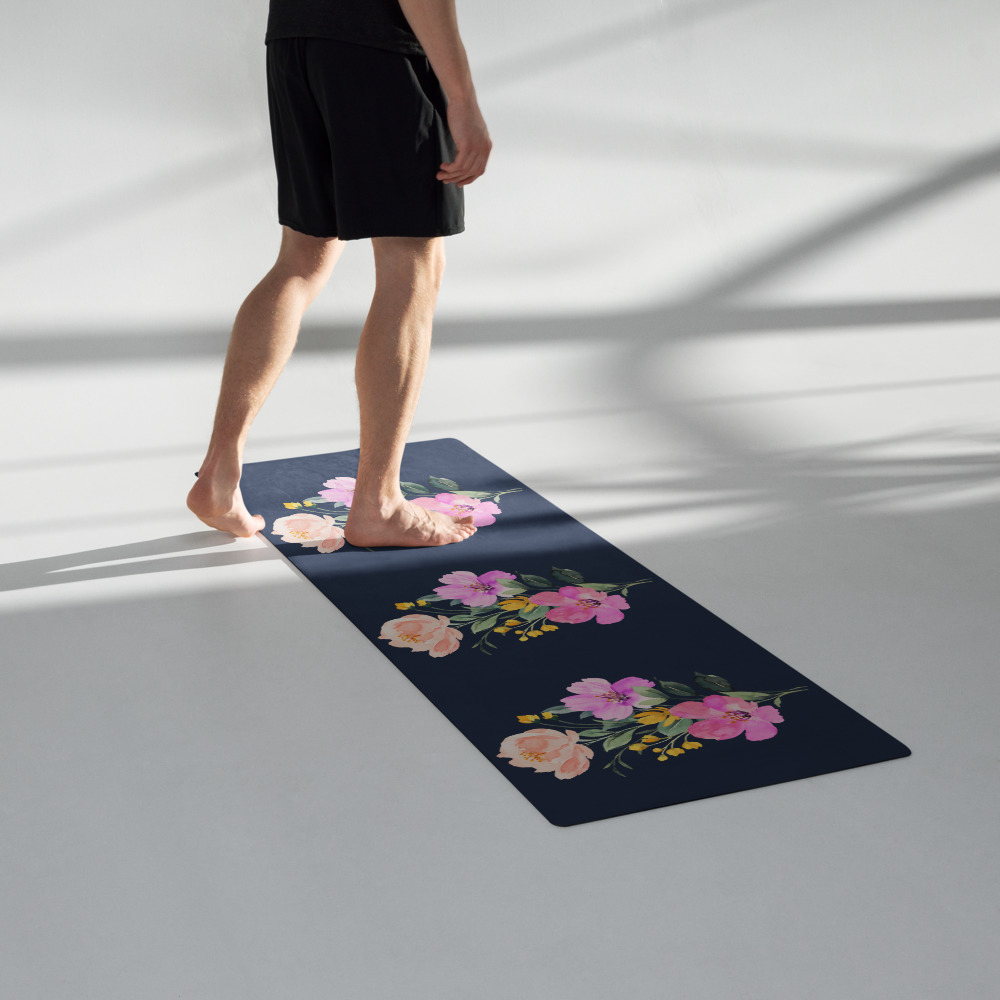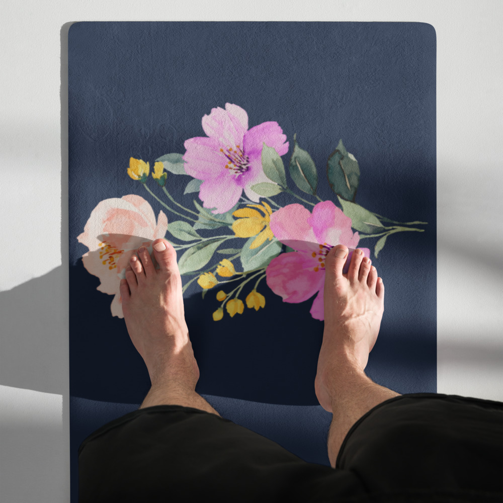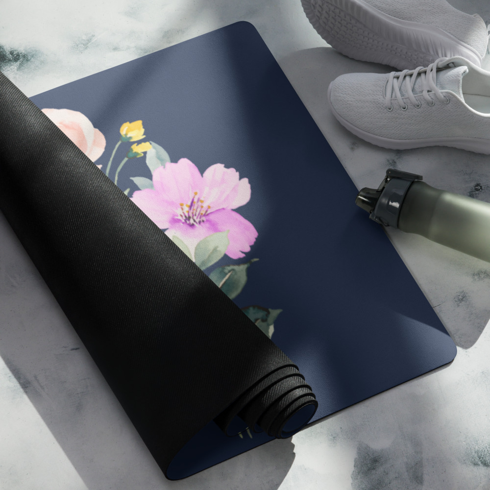 The Summer Flowers Blue Yoga Mat is a fantastic addition to your wellness routine. Perfect for exercise, stretching, or meditation, it’s designed to bring you joy while complementing your style. Weighing in at 62 oz (1.75 kg), it’s durable enough for daily use, yet light and easy to transport. The mat provides both stability and comfort, featuring anti-slip rubber on the bottom and soft microsuede on top.