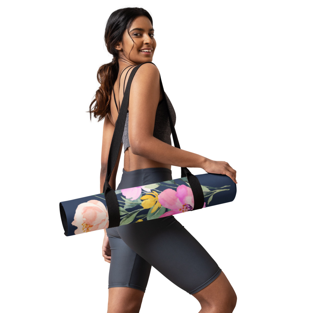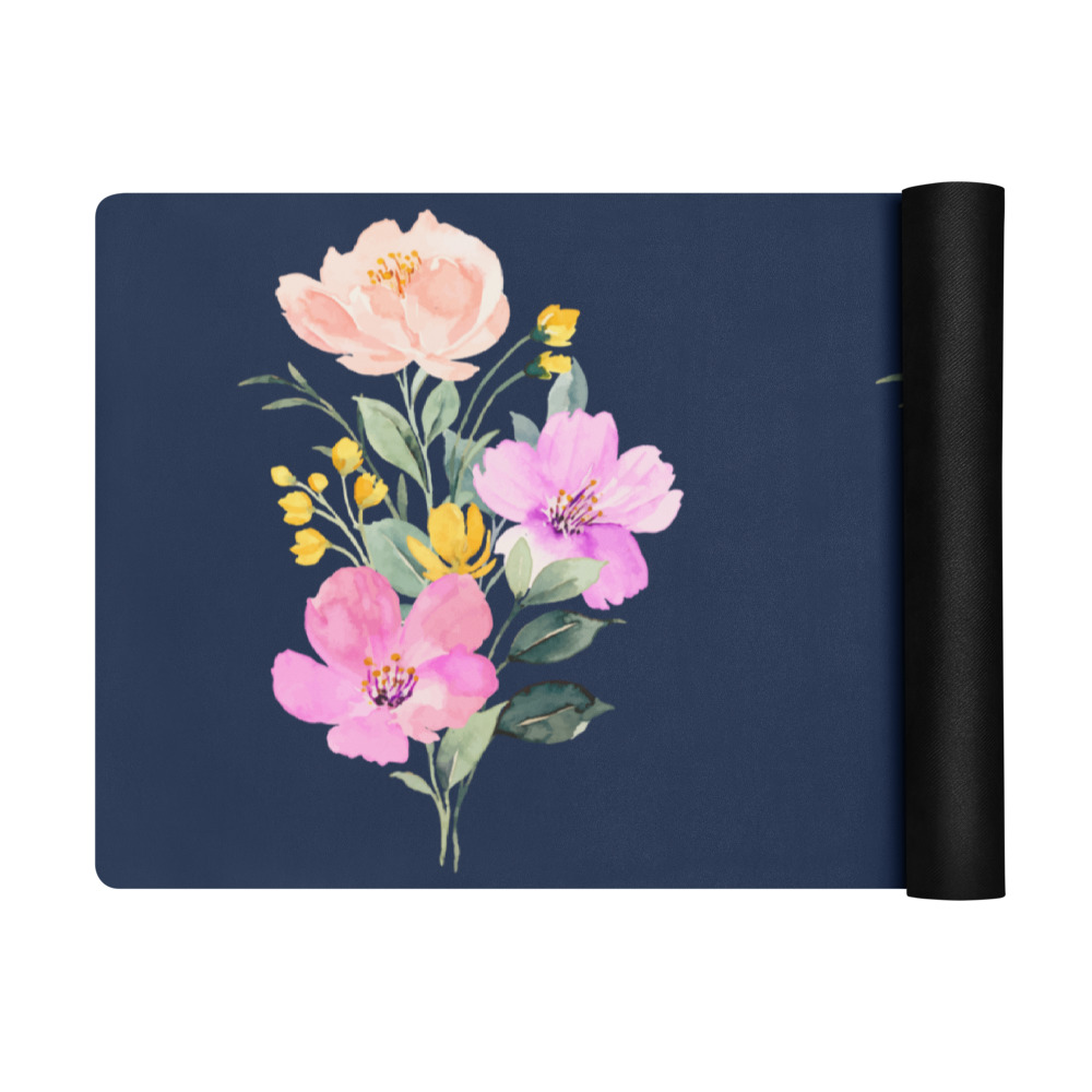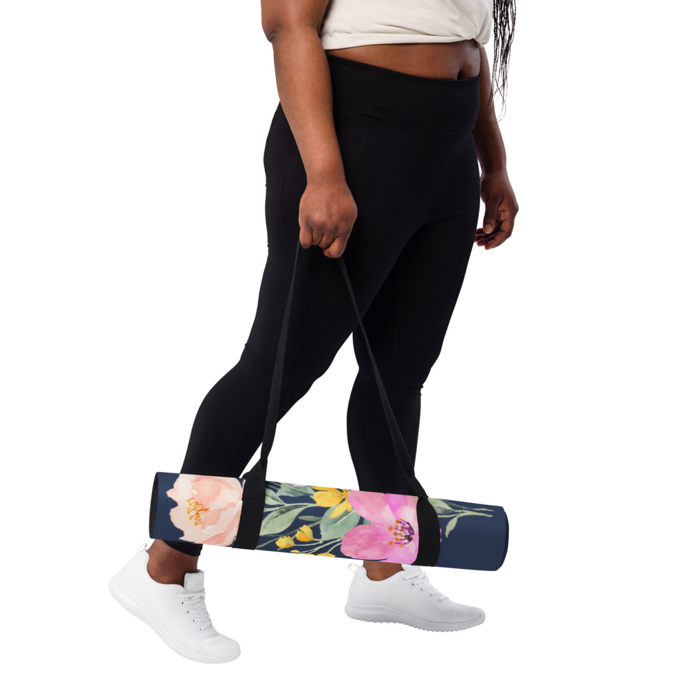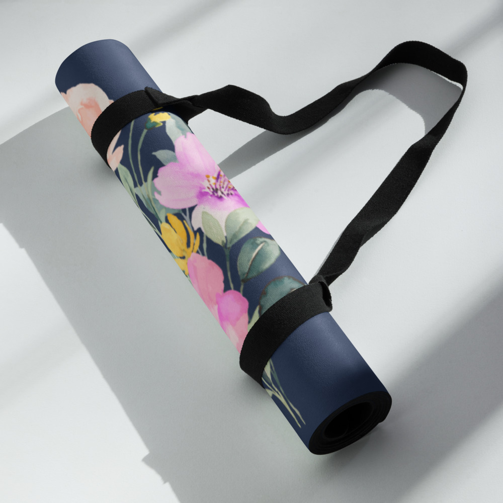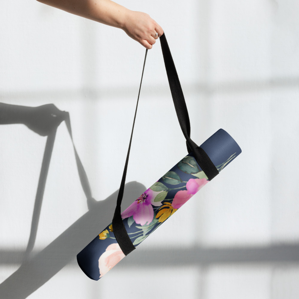 The Summer Flowers Blue Yoga Mat is a fantastic addition to your wellness routine. Perfect for exercise, stretching, or meditation, it’s designed to bring you joy while complementing your style. Weighing in at 62 oz (1.75 kg), it’s durable enough for daily use, yet light and easy to transport. The mat provides both stability and comfort, featuring anti-slip rubber on the bottom and soft microsuede on top.