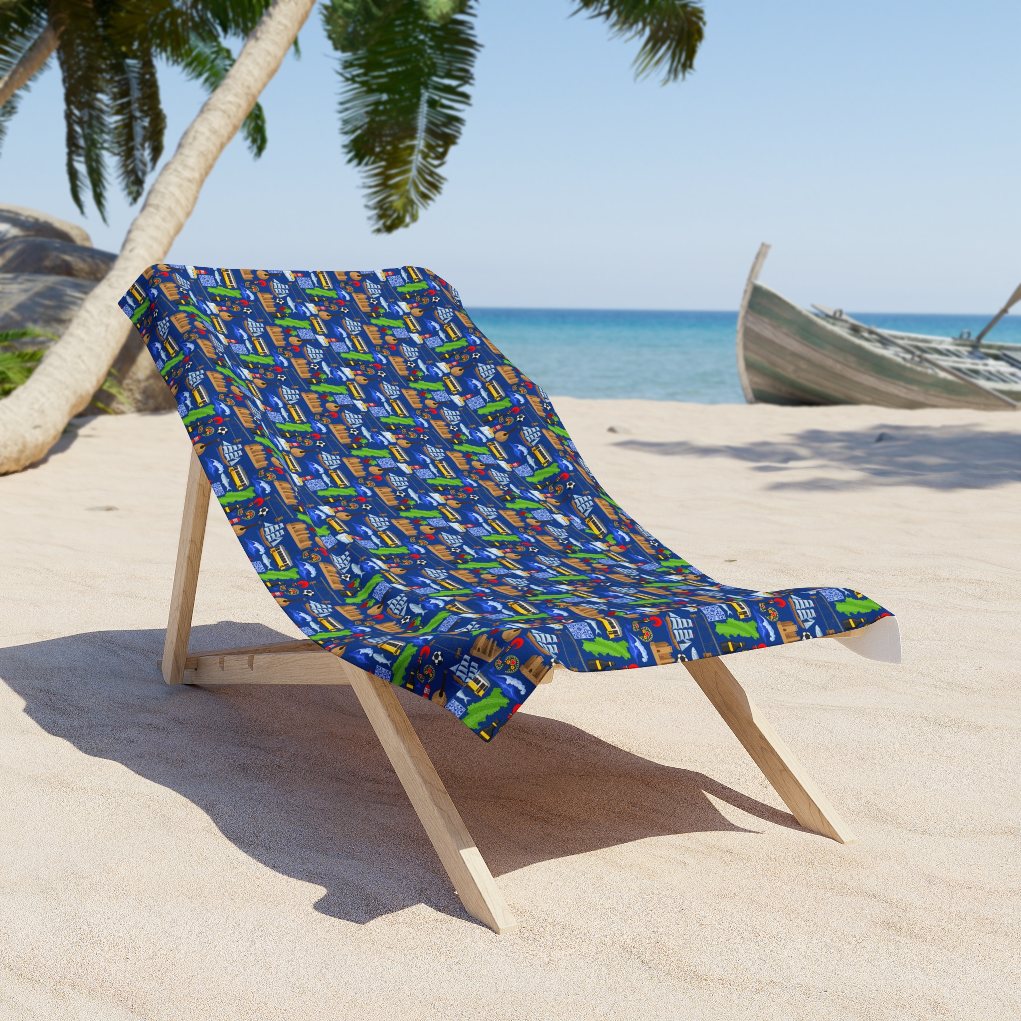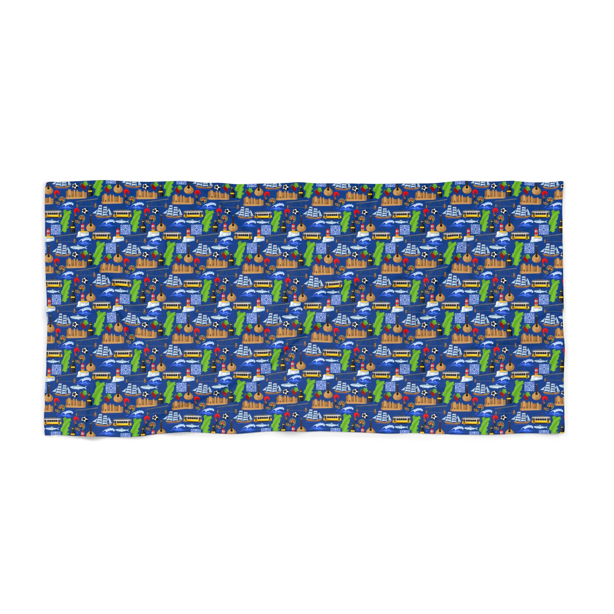 Bring style to your beach days with the Symbols of Portugal Dark Blue Beach Towel. You’ll love bringing this comfortable accessory with its colorful designs on your beach excursions.