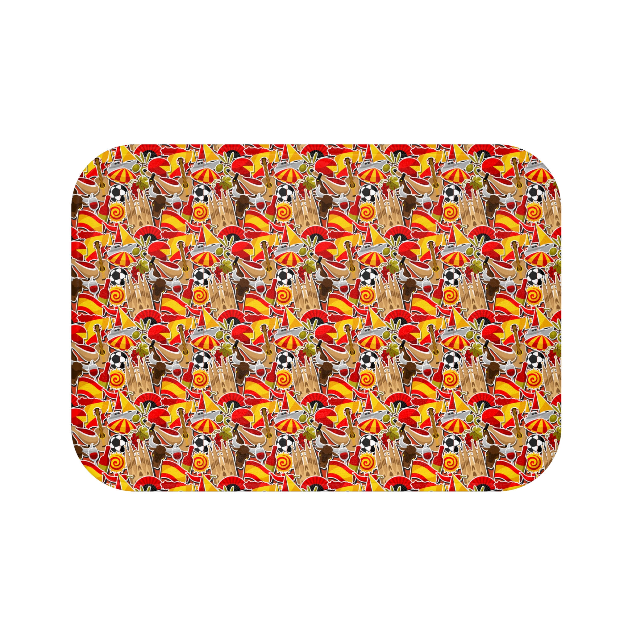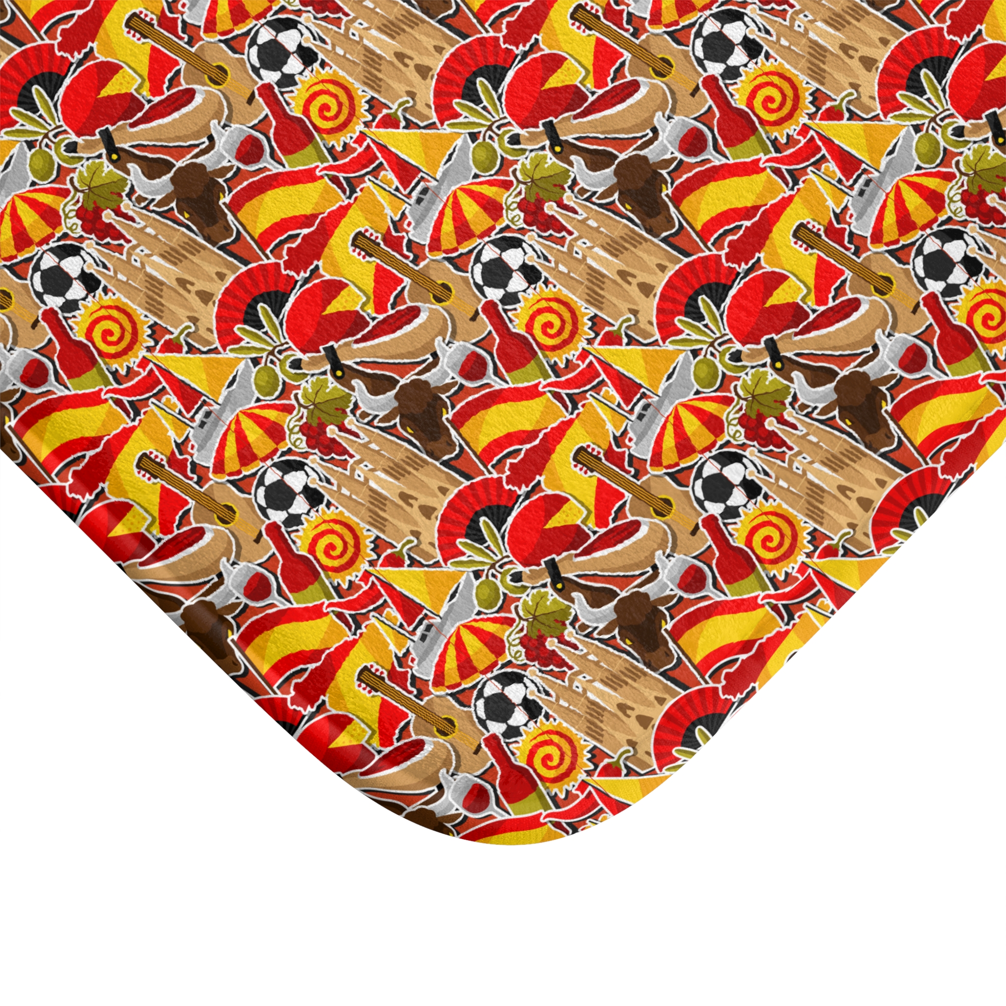 The Symbols of Spain Bathmat offers vibrant and durable bathroom decor, designed to impart a distinctive and original character to your restroom. Crafted from robust polyester, this bathmat offers enduring quality and resilience, maintaining its excellent condition throughout its lifespan. With its smooth finish, this surface is ideal for creating vibrant and distinctive artworks that infuse your home with Spanish charm.
