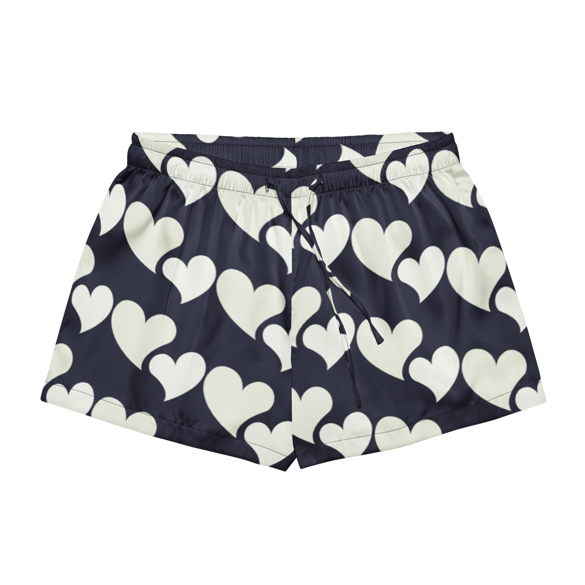 Relax in style with these incredibly soft White Hearts Pajama Shorts. Ideal for lazy mornings or cozy evenings, these shorts are designed for women who value both comfort and fashion. They double as chic loungewear, featuring elegant piping details for a touch of sophistication. With a relaxed fit and an adjustable drawstring waist, they offer a comfortable and flexible fit that holds its shape. Perfect for a day of binge-watching or simply unwinding, these shorts are a must-have!