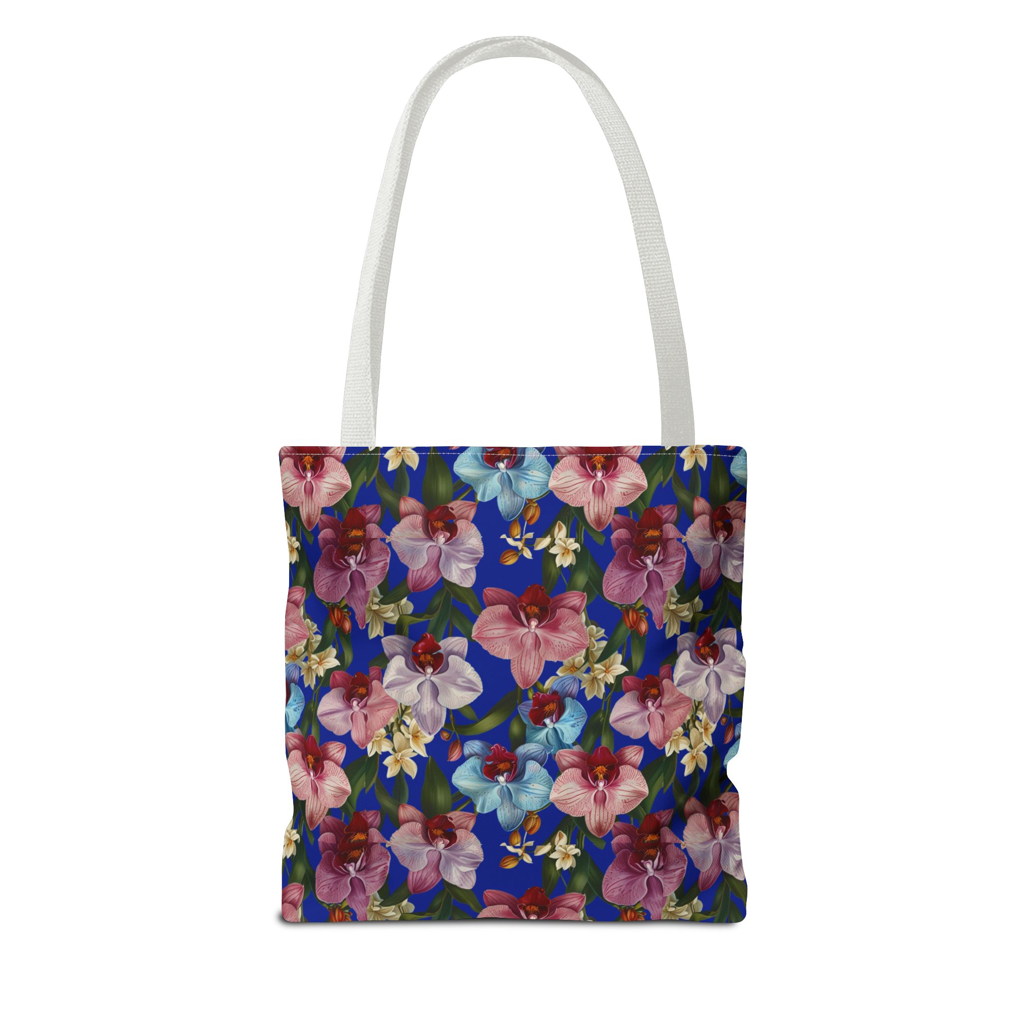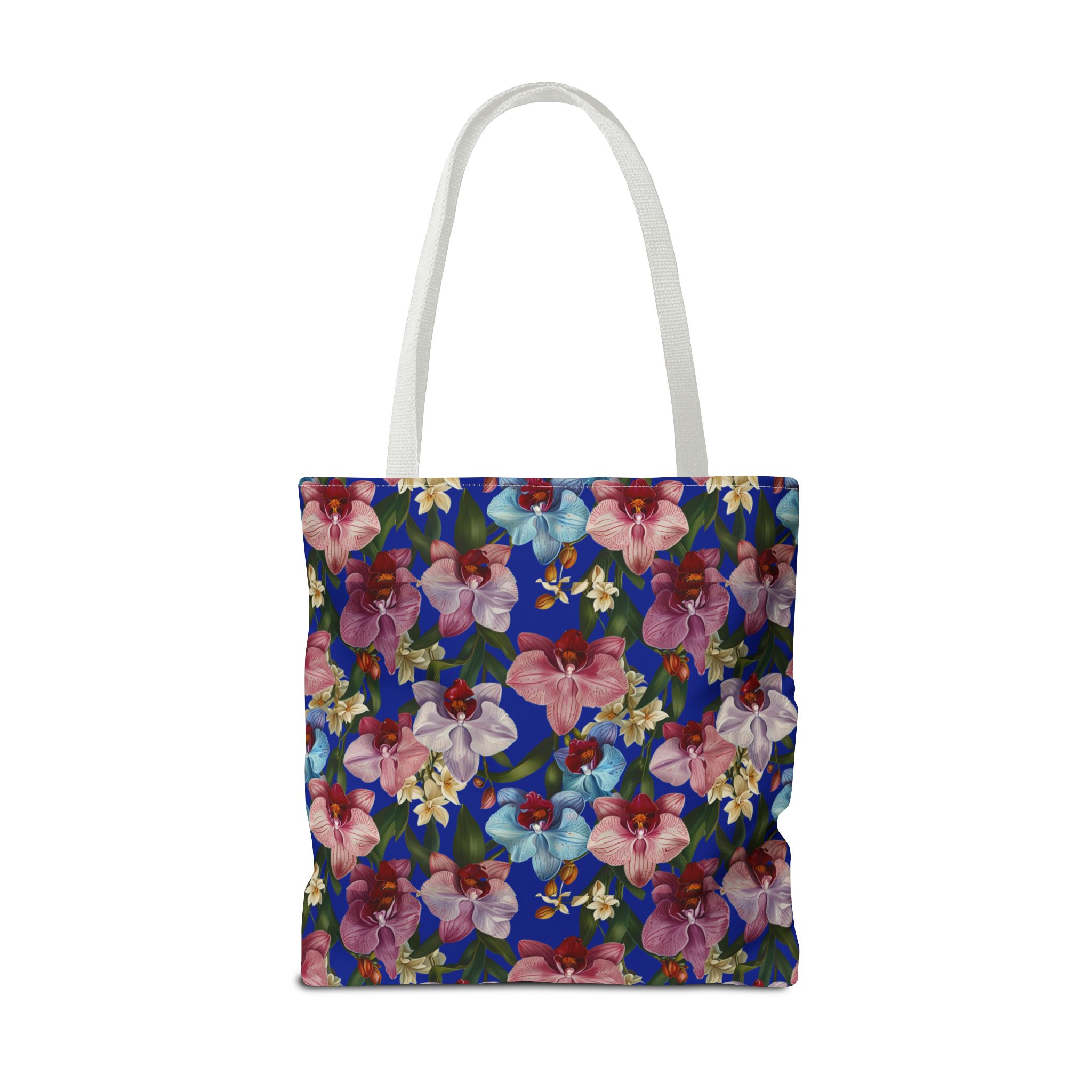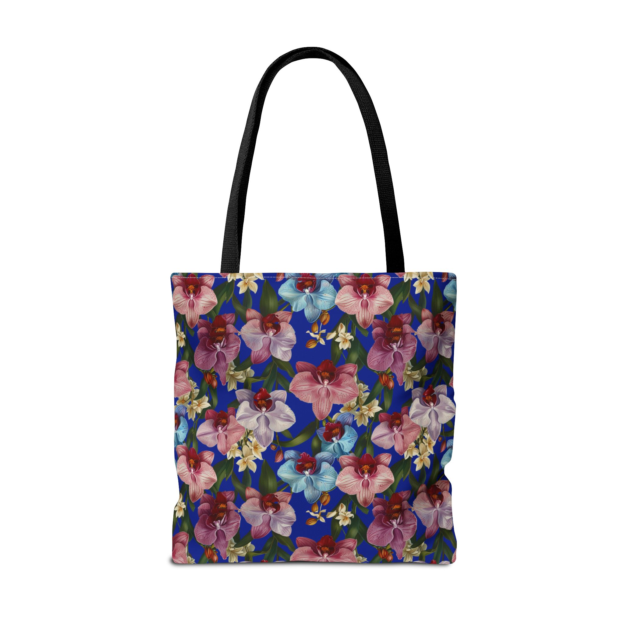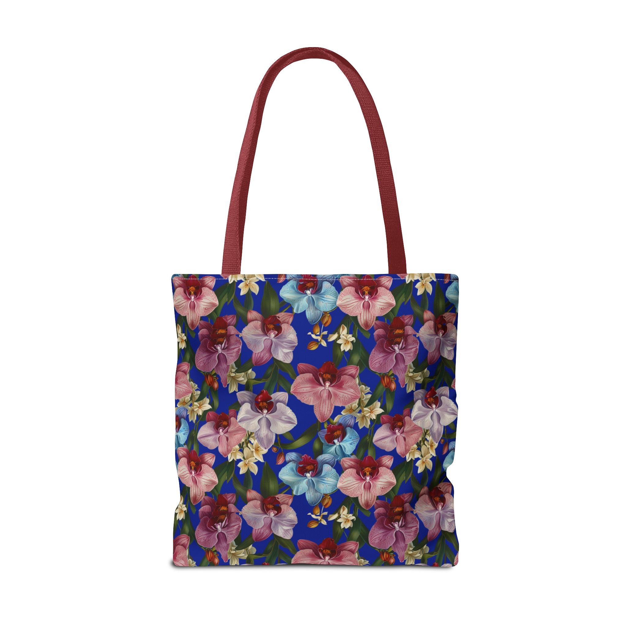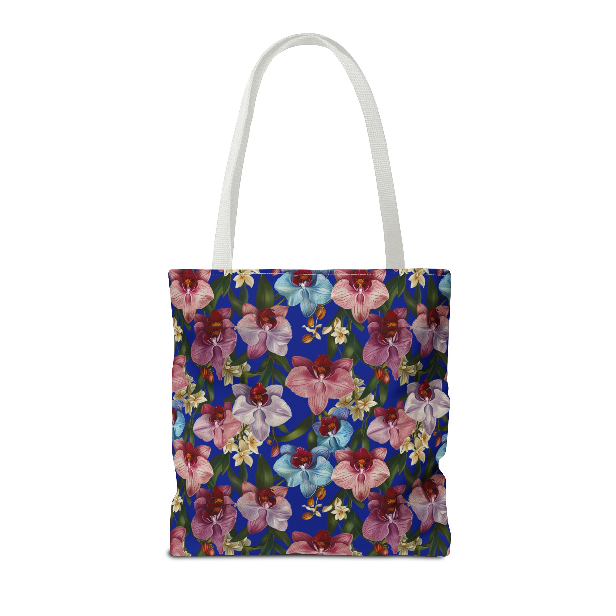 Crafted for both comfort and durability, the cotton webbing straps make carrying effortless all day long. Reinforced double-stitched seams on the Wild Orchids Tote Bag ensure it stands up to consistent use. The eye-catching orchid print on an electric blue background offers a bold, contemporary aesthetic, with a choice of handle colors to add your personal touch. Perfect for daily errands or a sunny getaway, this tote infuses your lifestyle with a vibrant, expressive style.