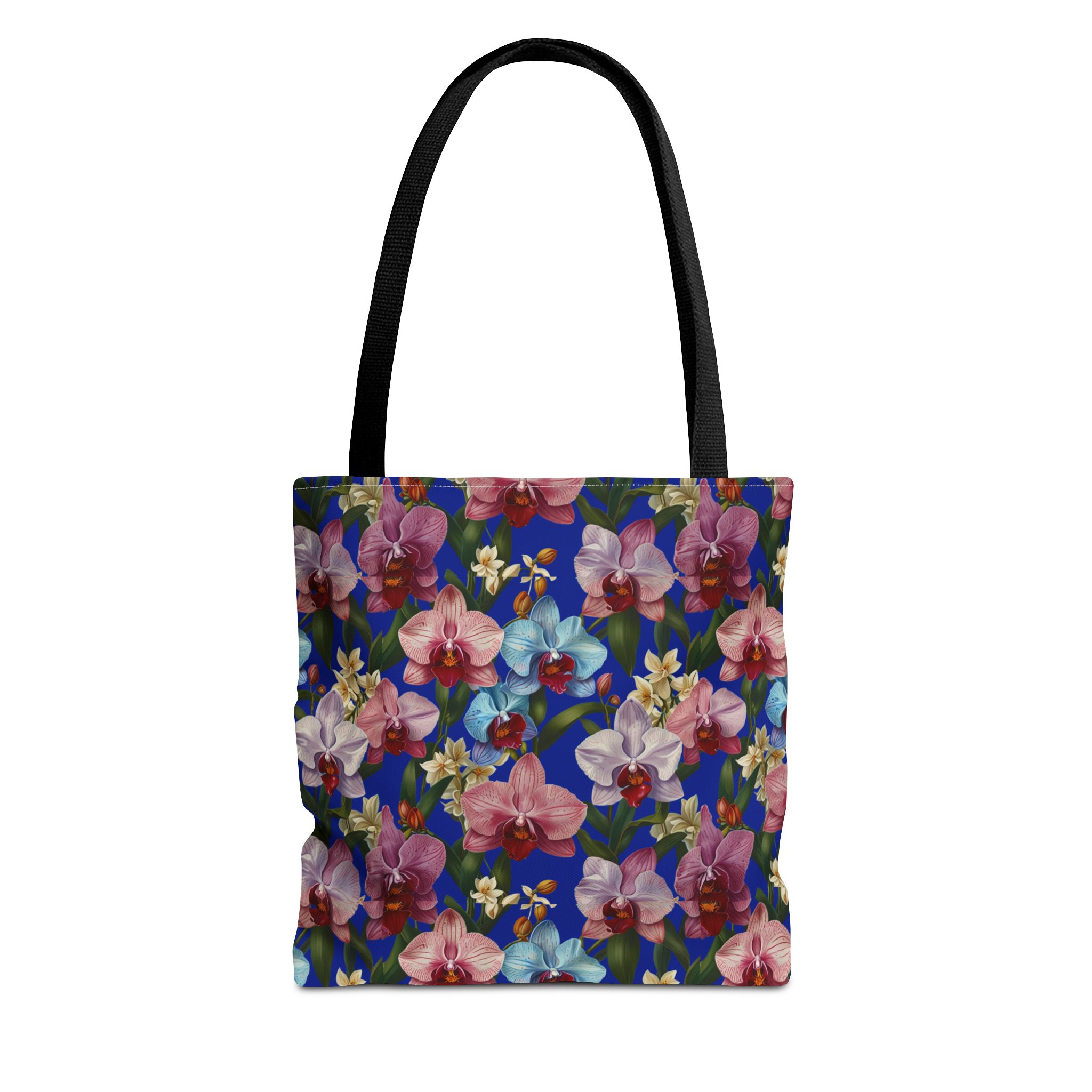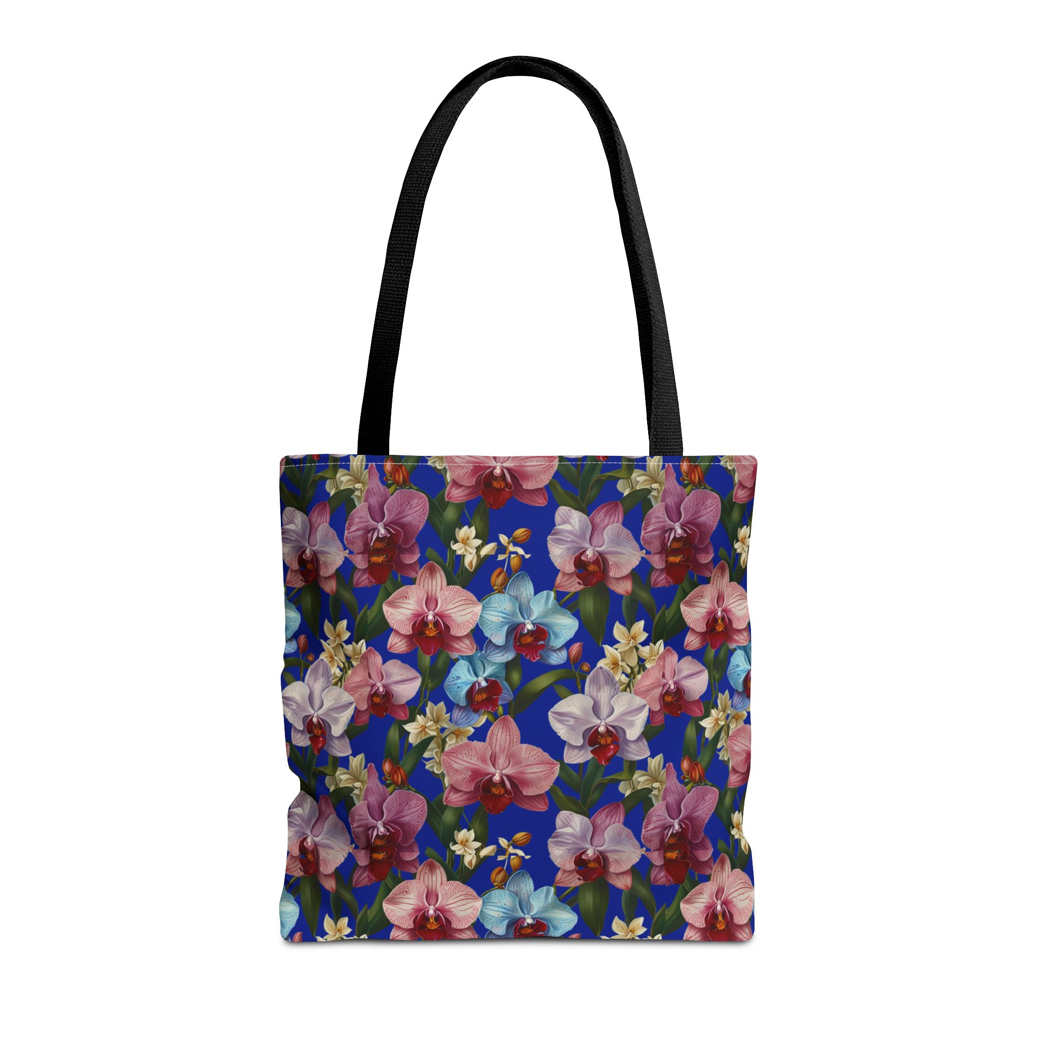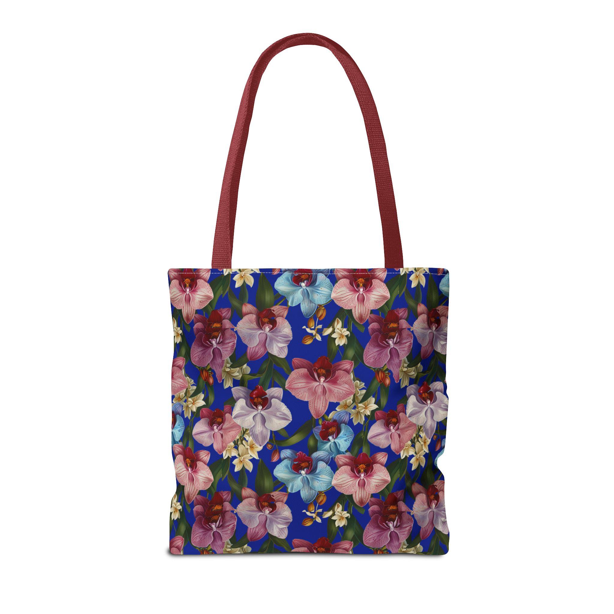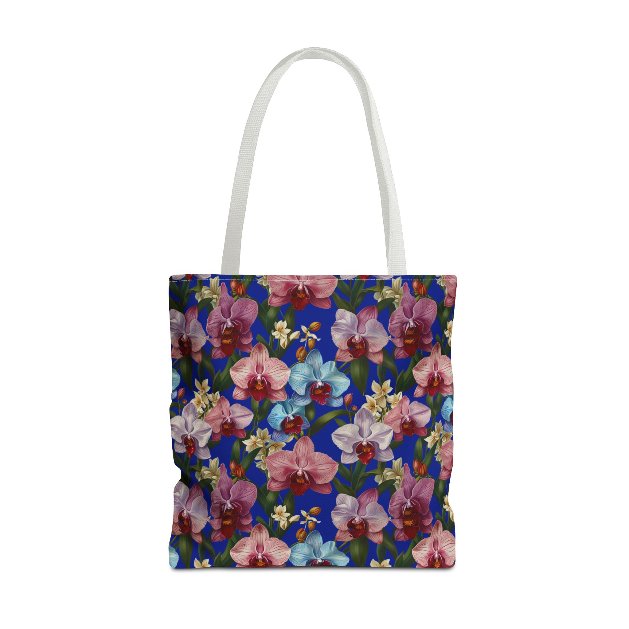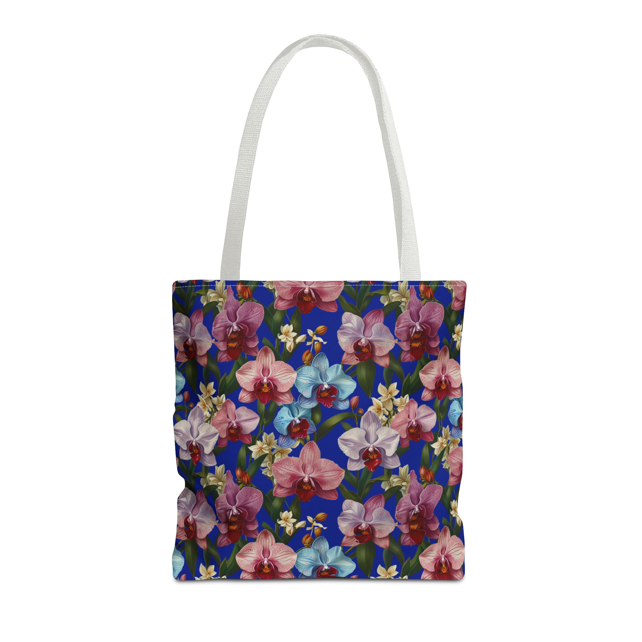 Crafted for both comfort and durability, the cotton webbing straps make carrying effortless all day long. Reinforced double-stitched seams on the Wild Orchids Tote Bag ensure it stands up to consistent use. The eye-catching orchid print on an electric blue background offers a bold, contemporary aesthetic, with a choice of handle colors to add your personal touch. Perfect for daily errands or a sunny getaway, this tote infuses your lifestyle with a vibrant, expressive style.