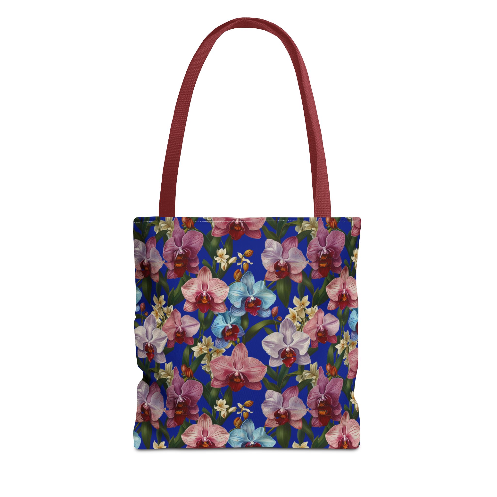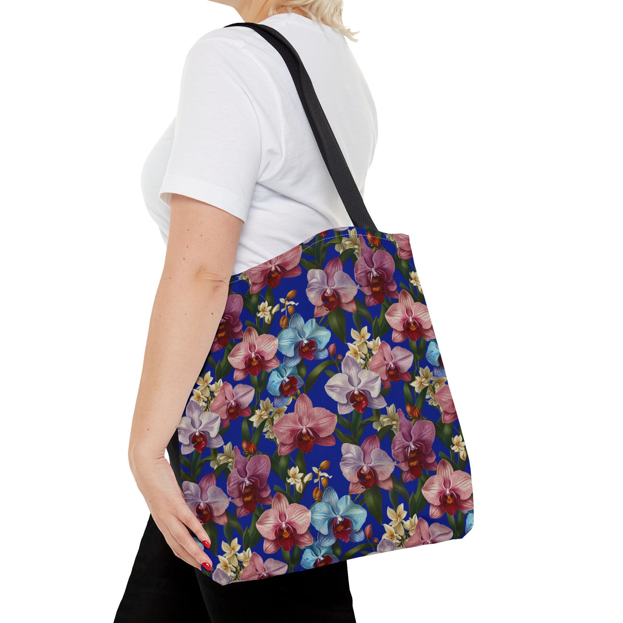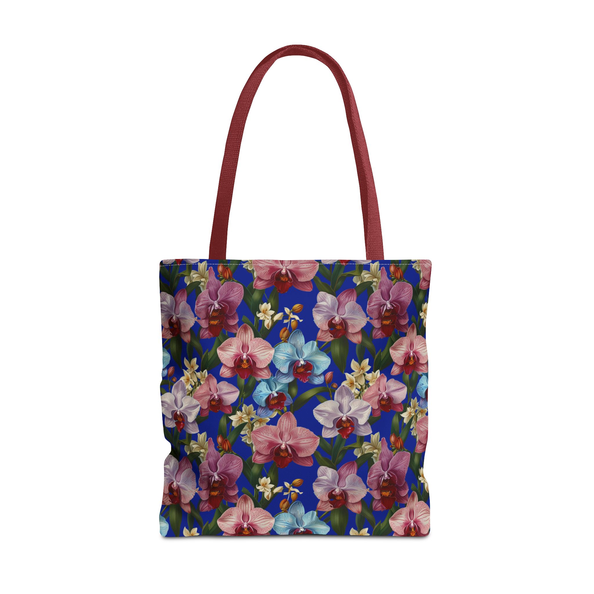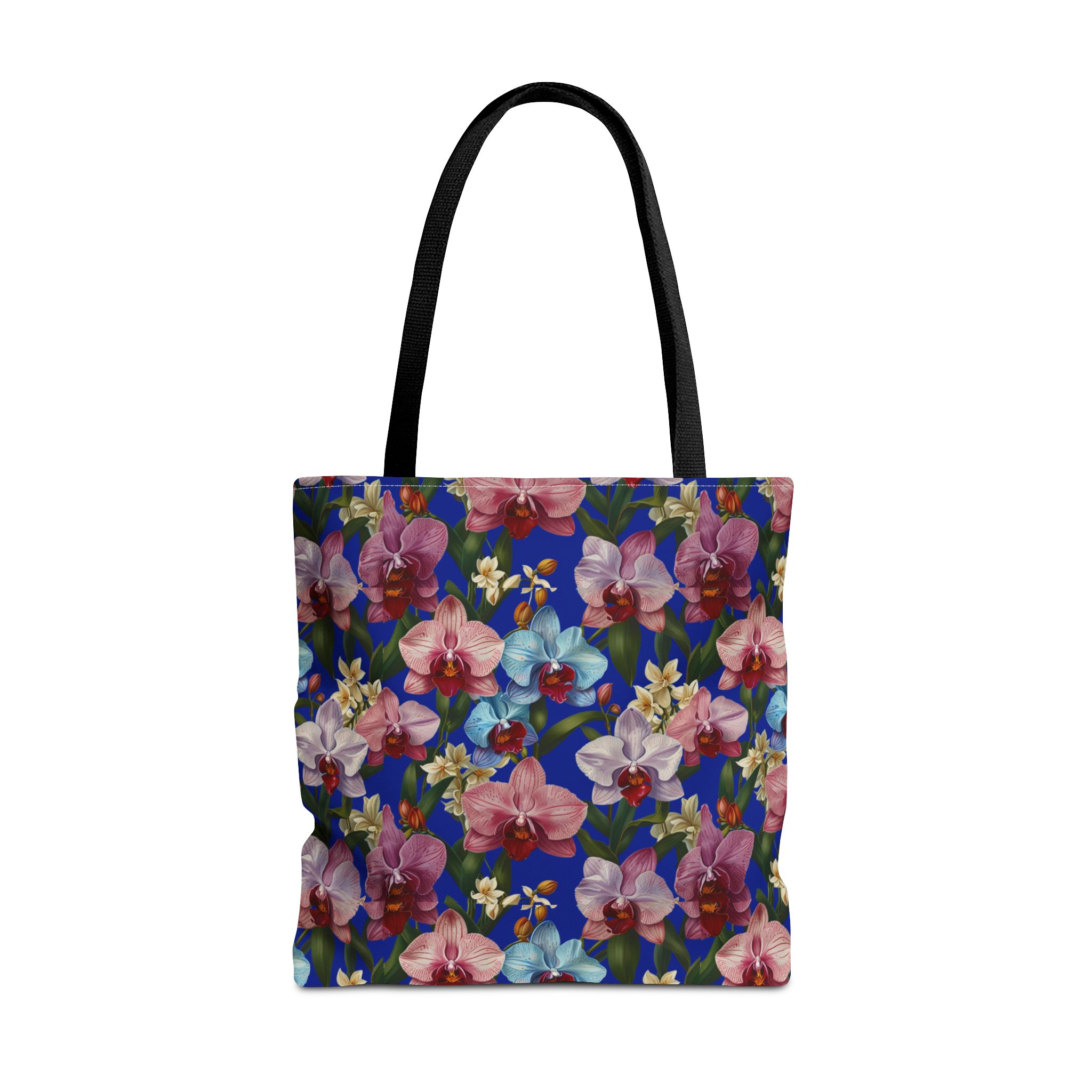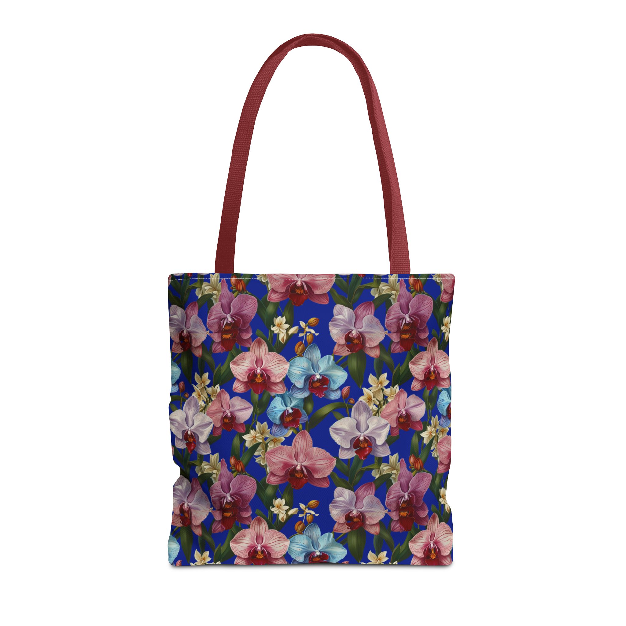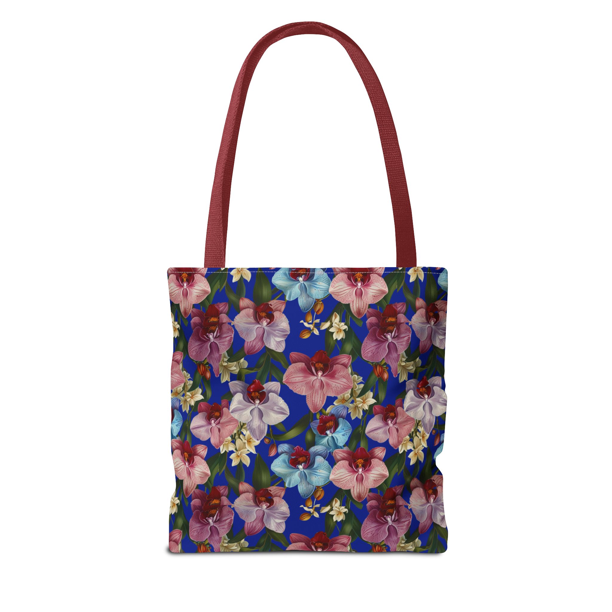 Crafted for both comfort and durability, the cotton webbing straps make carrying effortless all day long. Reinforced double-stitched seams on the Wild Orchids Tote Bag ensure it stands up to consistent use. The eye-catching orchid print on an electric blue background offers a bold, contemporary aesthetic, with a choice of handle colors to add your personal touch. Perfect for daily errands or a sunny getaway, this tote infuses your lifestyle with a vibrant, expressive style.