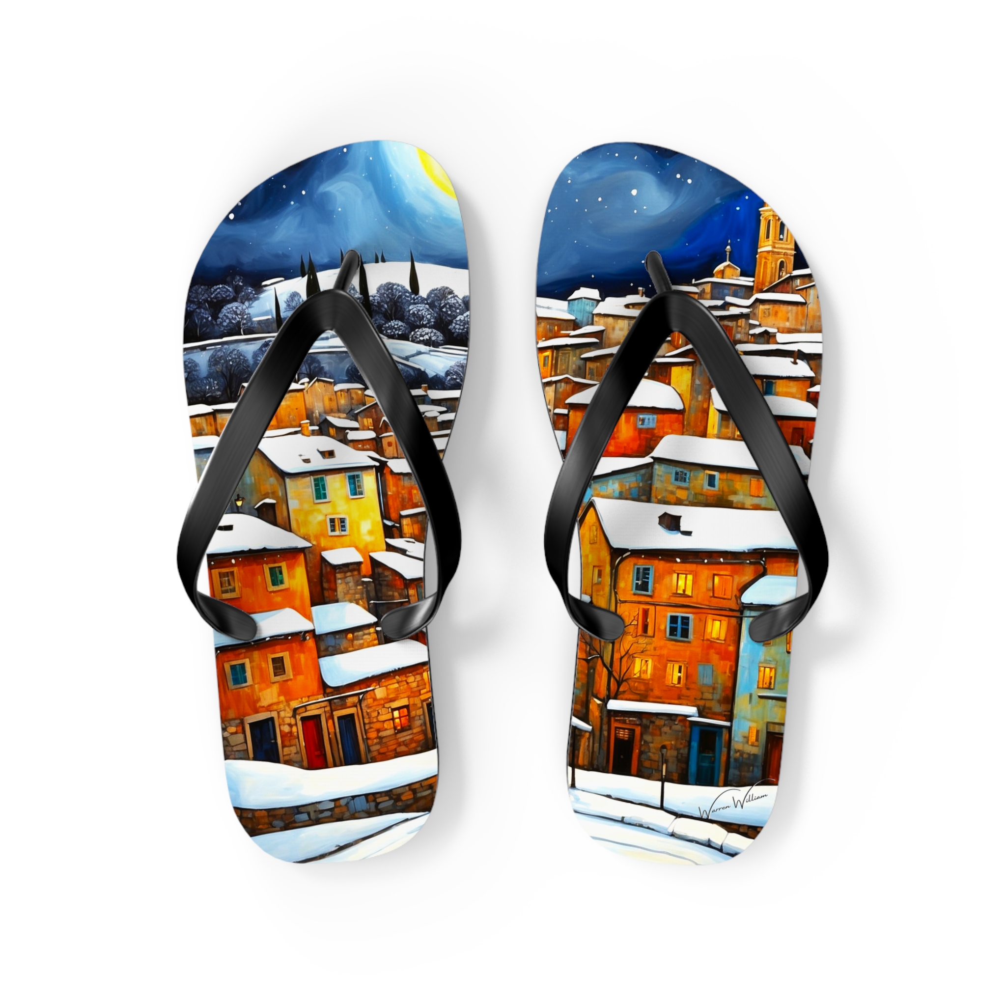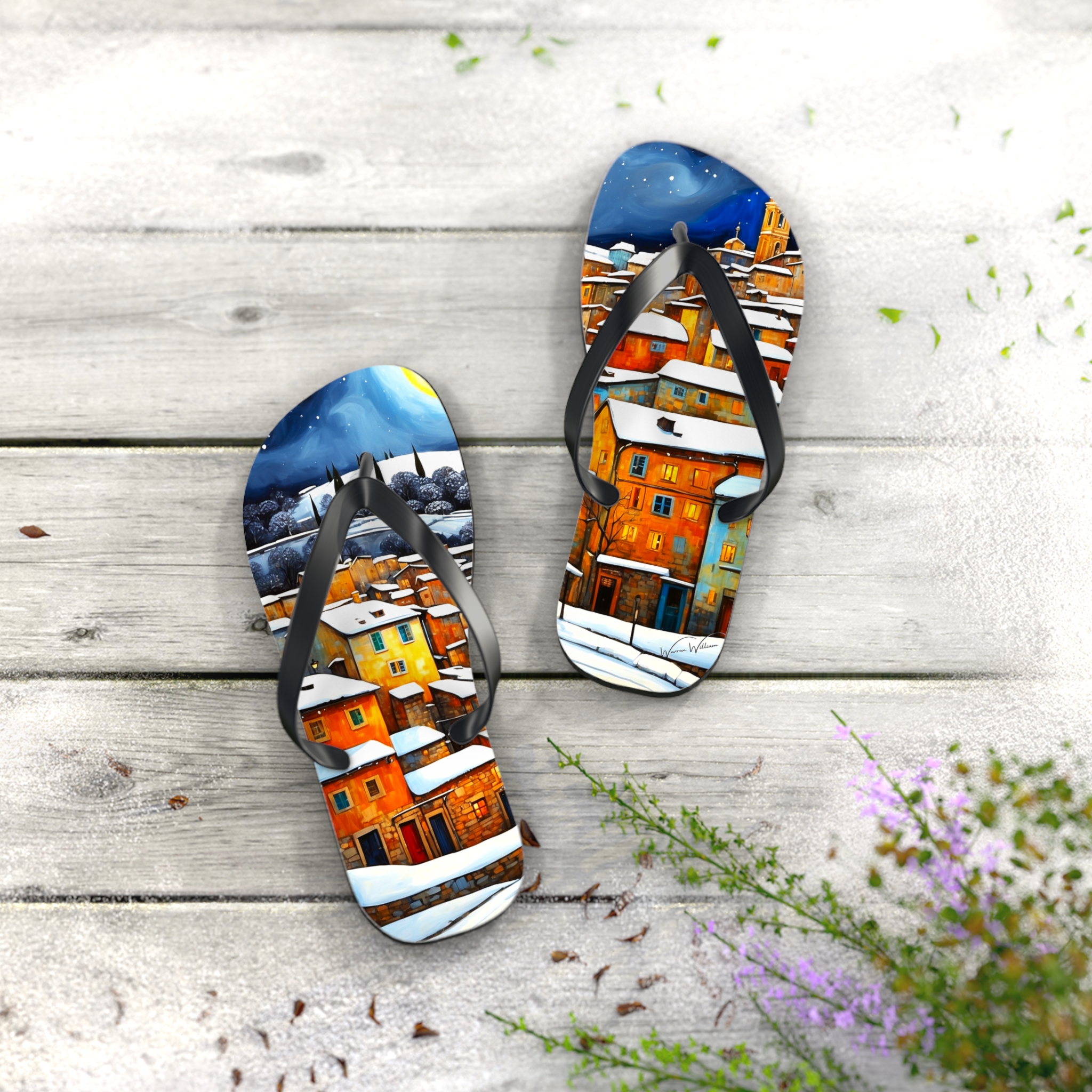 Winter in the Village Flip Flops