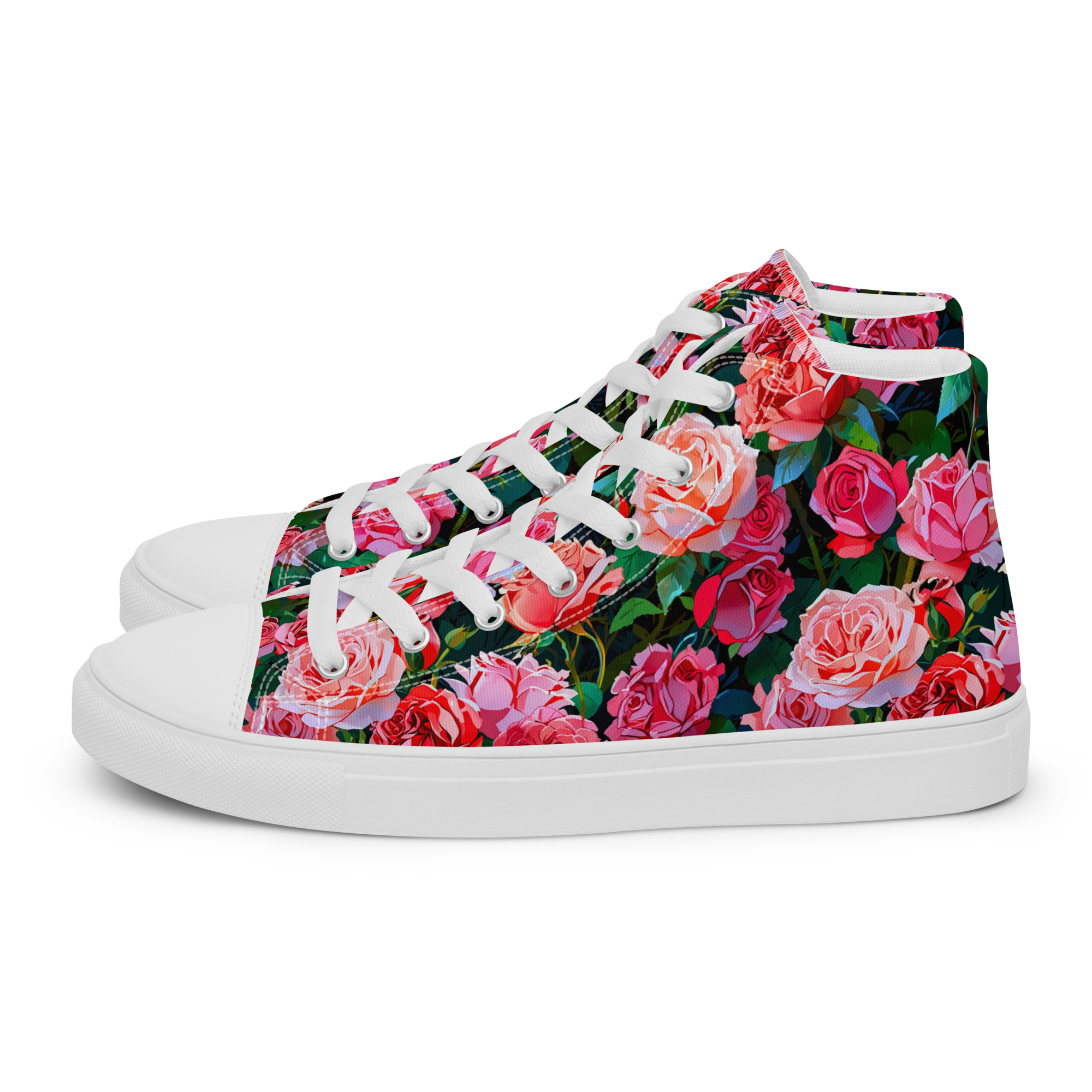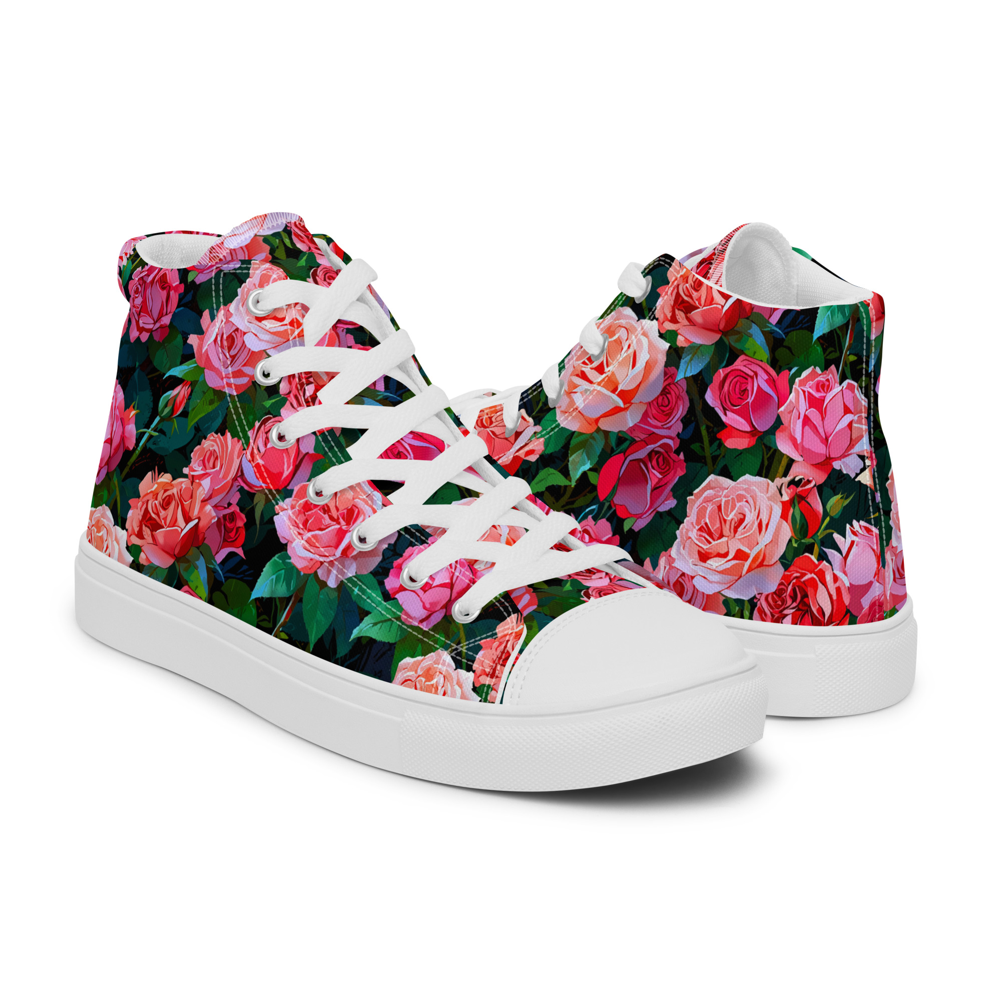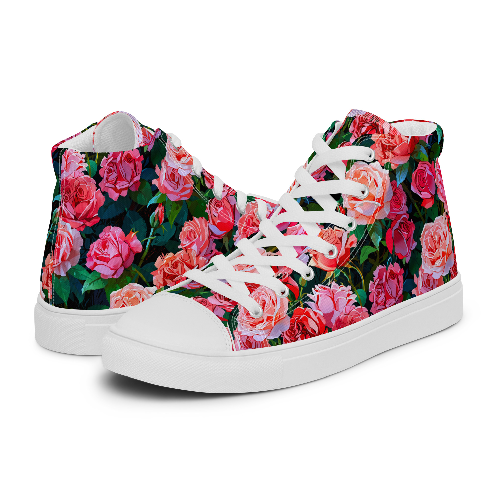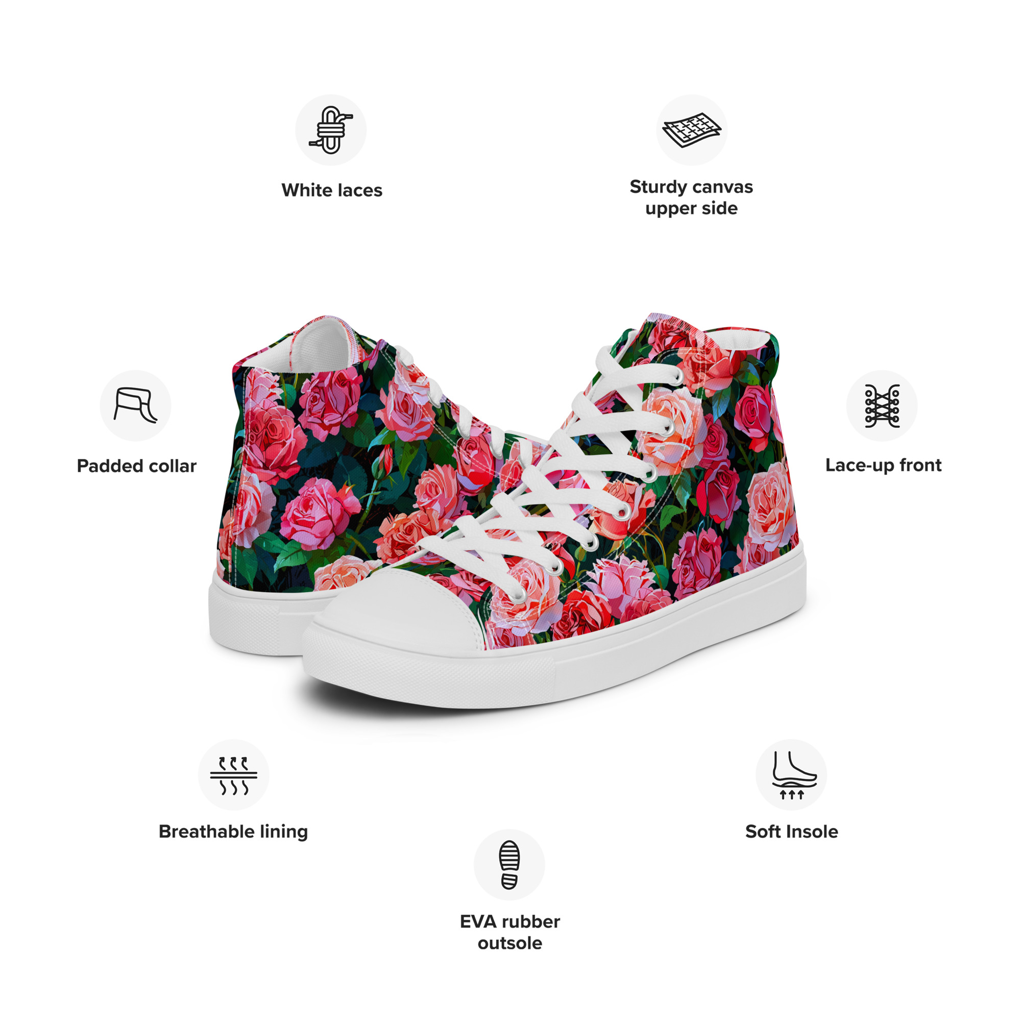 Remember to pamper your feet! The timeless and fashionable Wonderful Roses Canvas Shoes are a perfect addition to your collection. Crafted with a 100% polyester canvas upper and a light EVA rubber sole, they offer dependable comfort. Plus, the faux leather toe cap and reinforced construction ensure they maintain their shape and last longer.