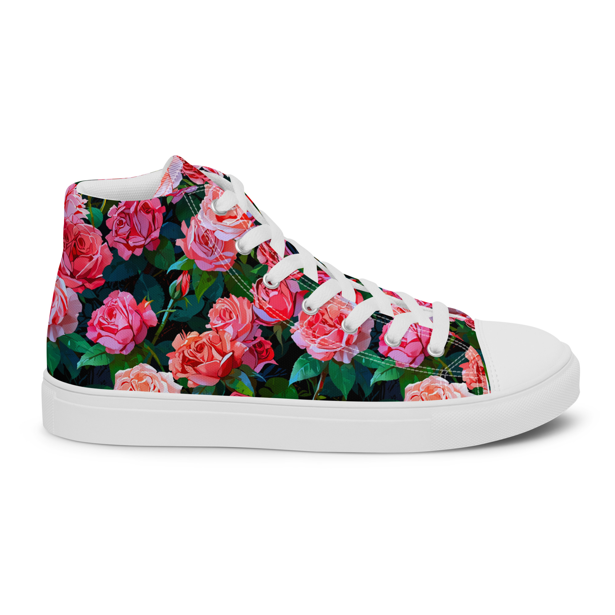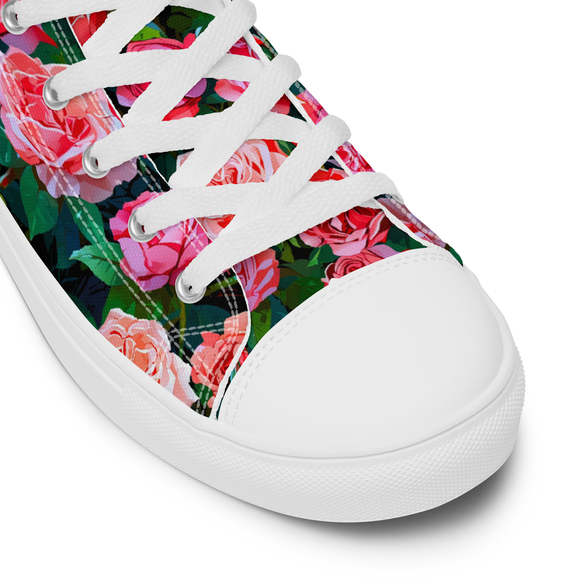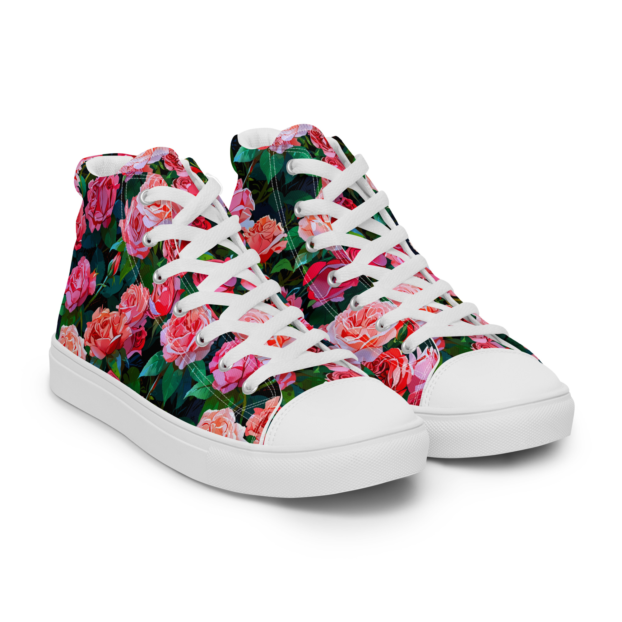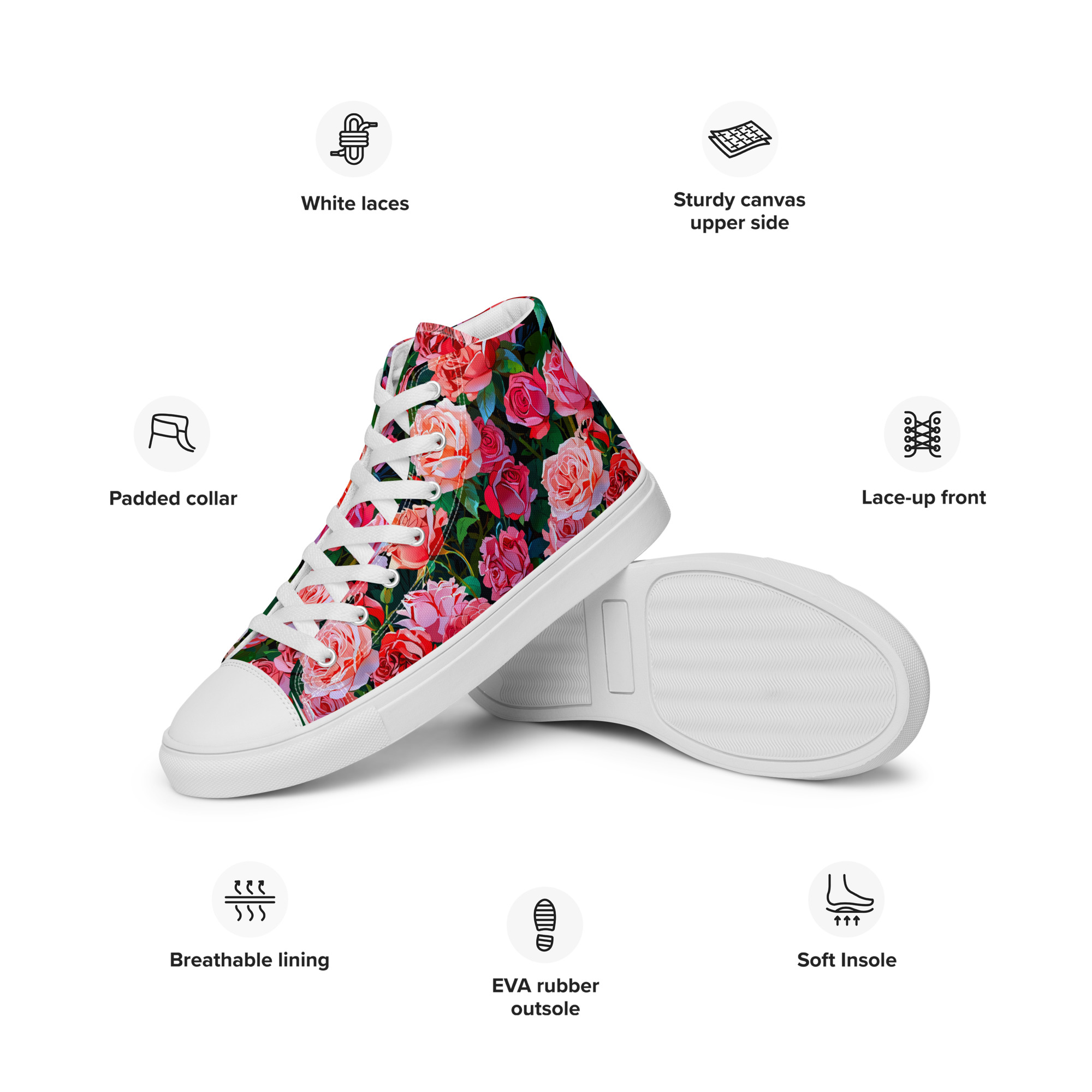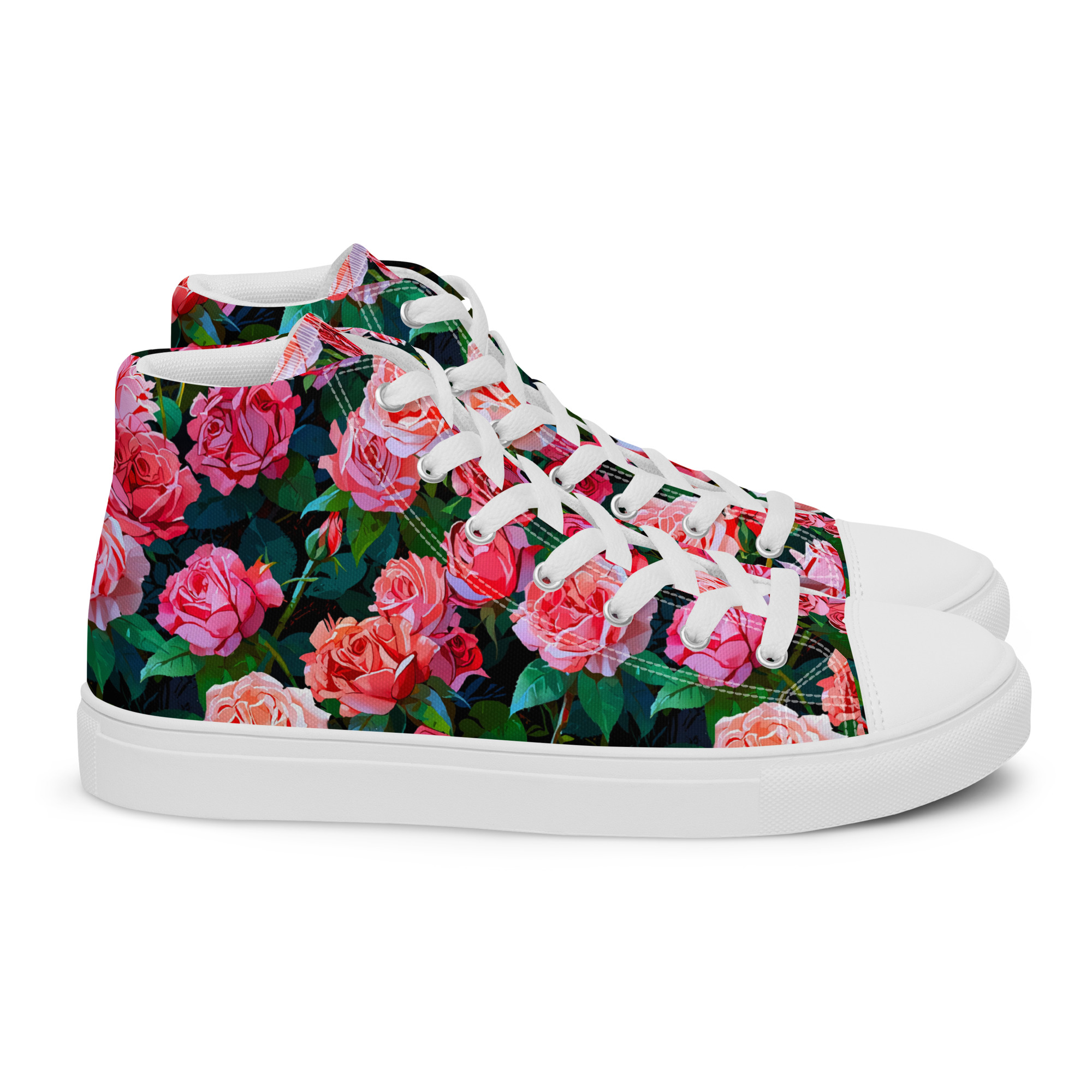 Remember to pamper your feet! The timeless and fashionable Wonderful Roses Canvas Shoes are a perfect addition to your collection. Crafted with a 100% polyester canvas upper and a light EVA rubber sole, they offer dependable comfort. Plus, the faux leather toe cap and reinforced construction ensure they maintain their shape and last longer.